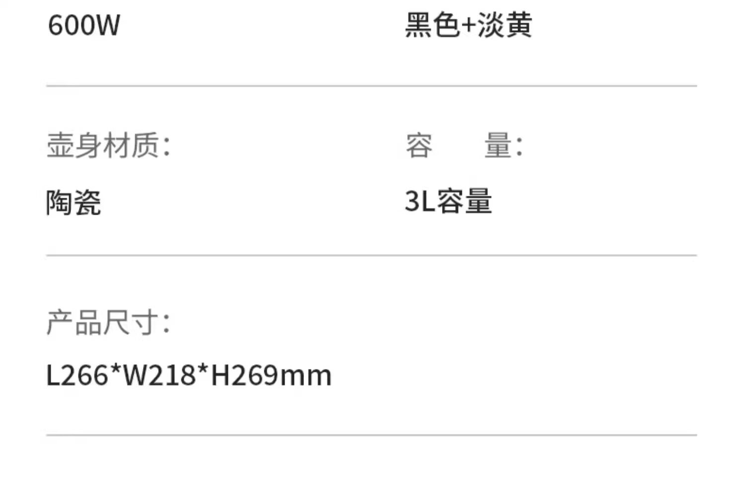 Capacity 3 L