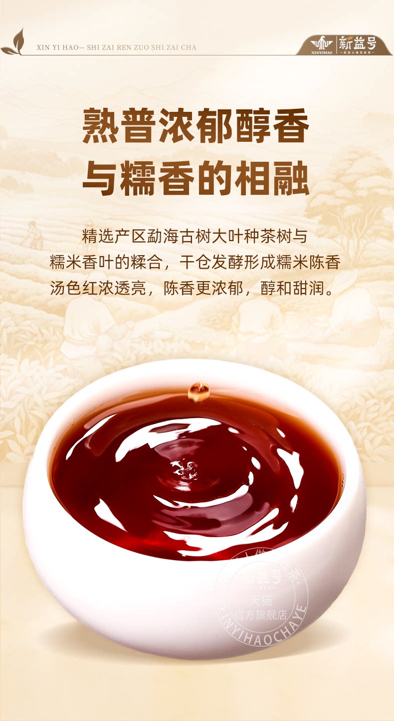 Xinyihao glutinous rice fragrant Pu'er tea cooked tea small gold brick