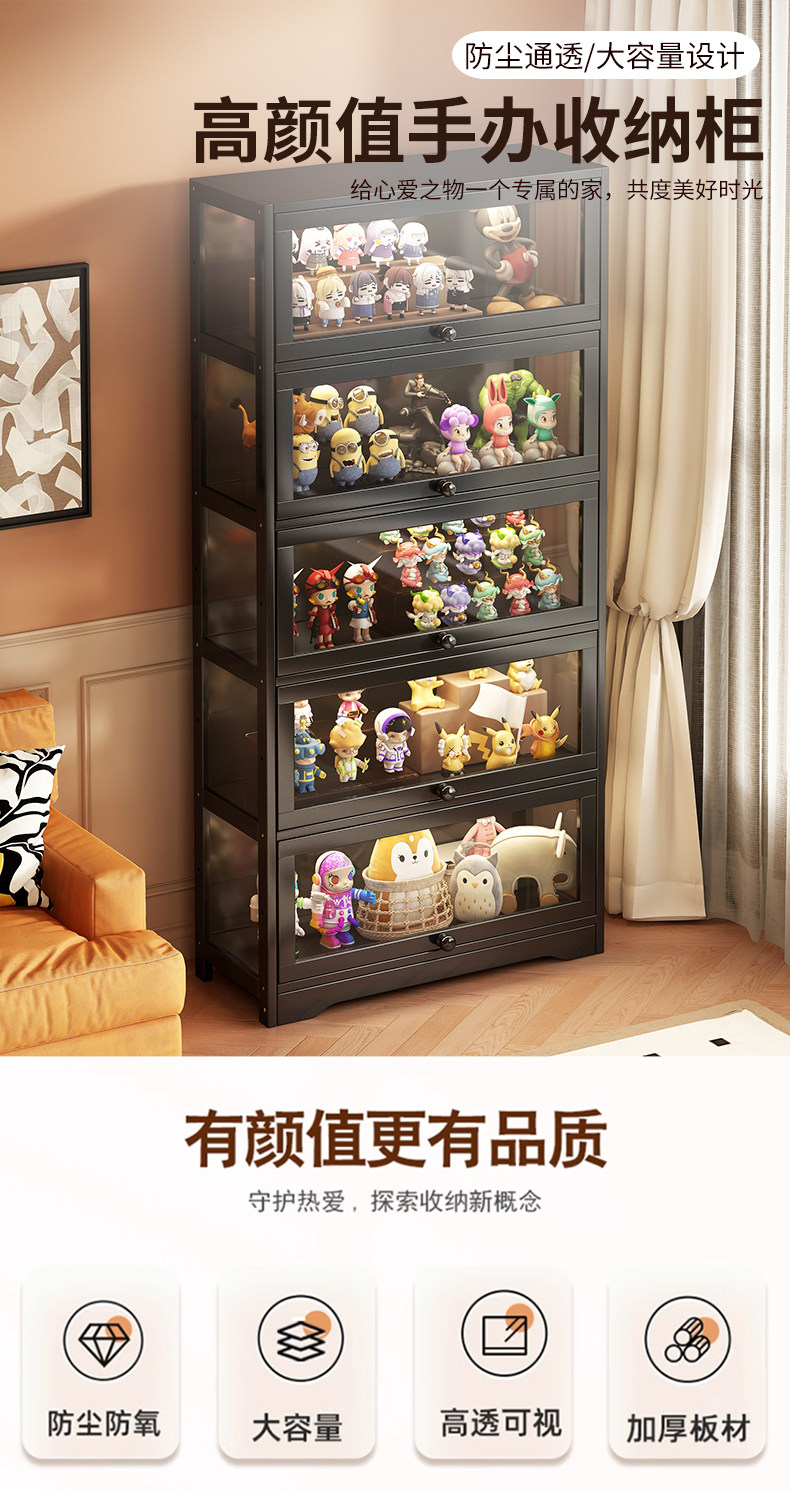 Acrylic Display Cabinet, Household Floor-Standing Display Cabinet, Doll and Figurine Display Rack, Multi-Layer Integrated Bookcase and Bookshelf