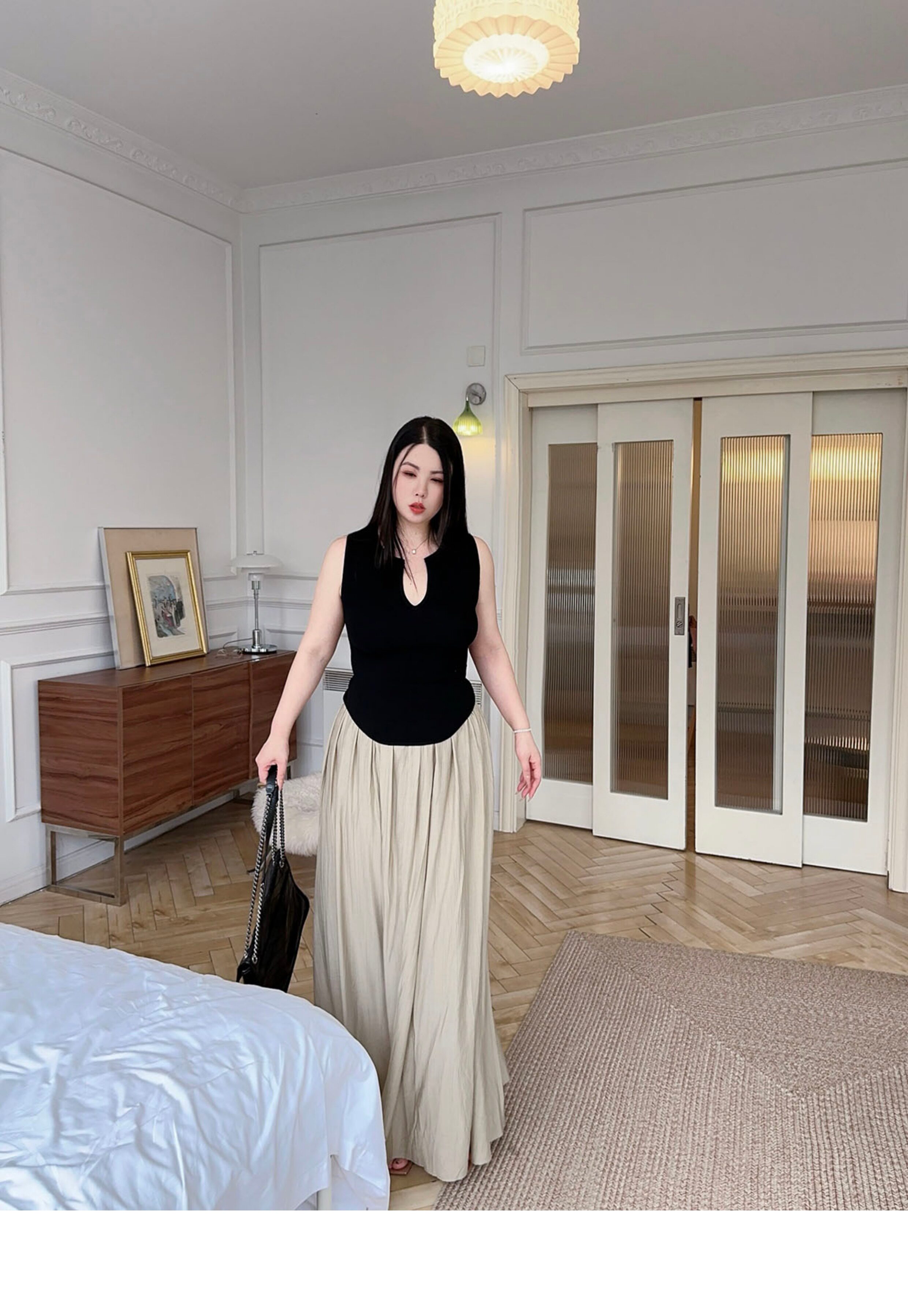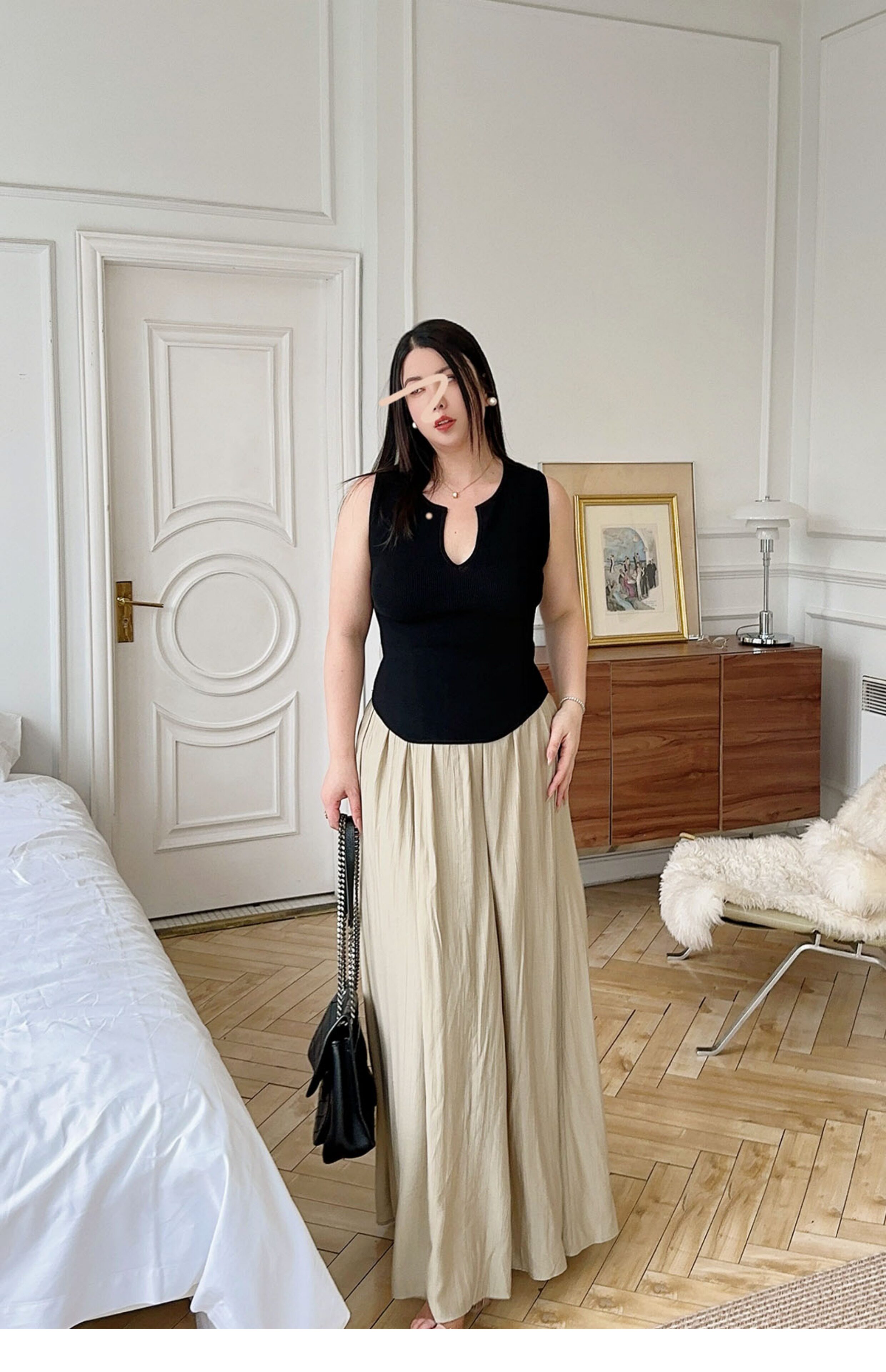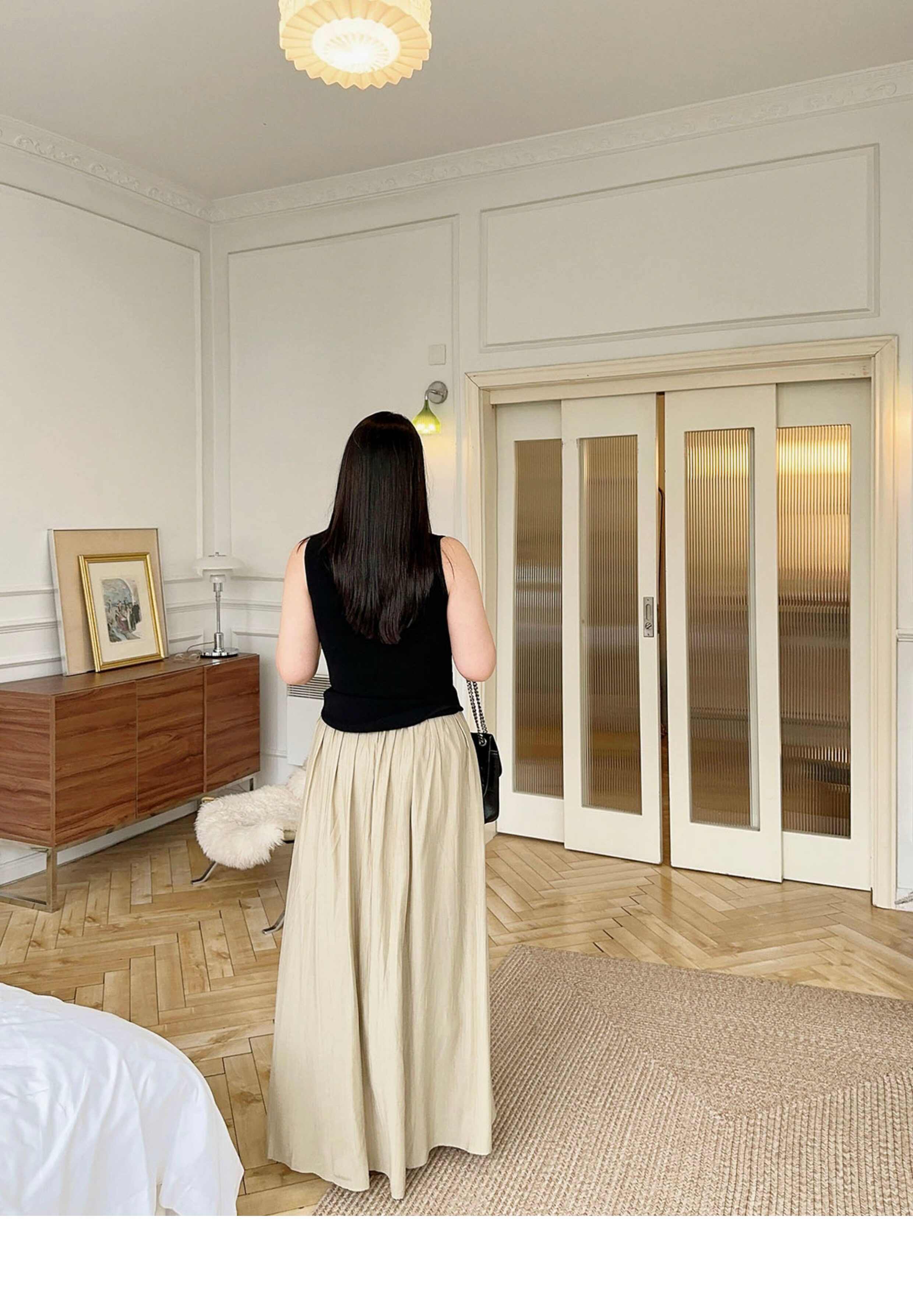 New Chinoiserie] Apricot Linen Pleated Retro Slimming Look High-End Lazy Style Skirt High Waist Covering Crotch Large Size Slimming Look