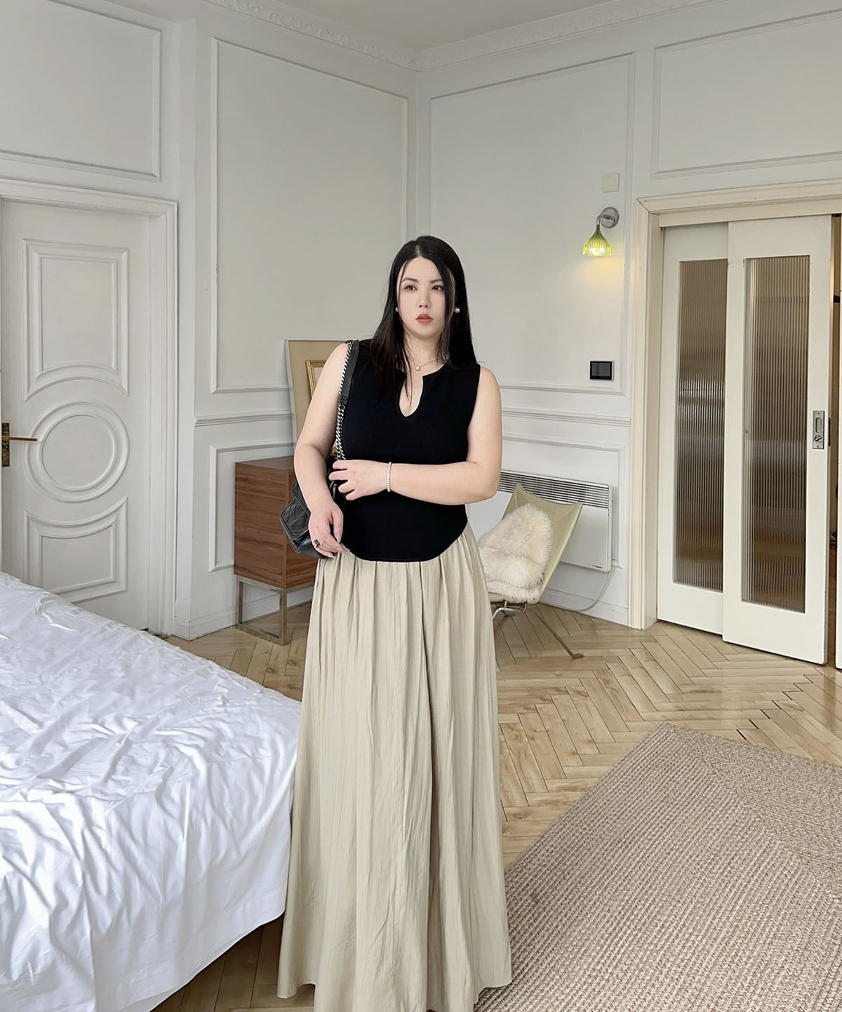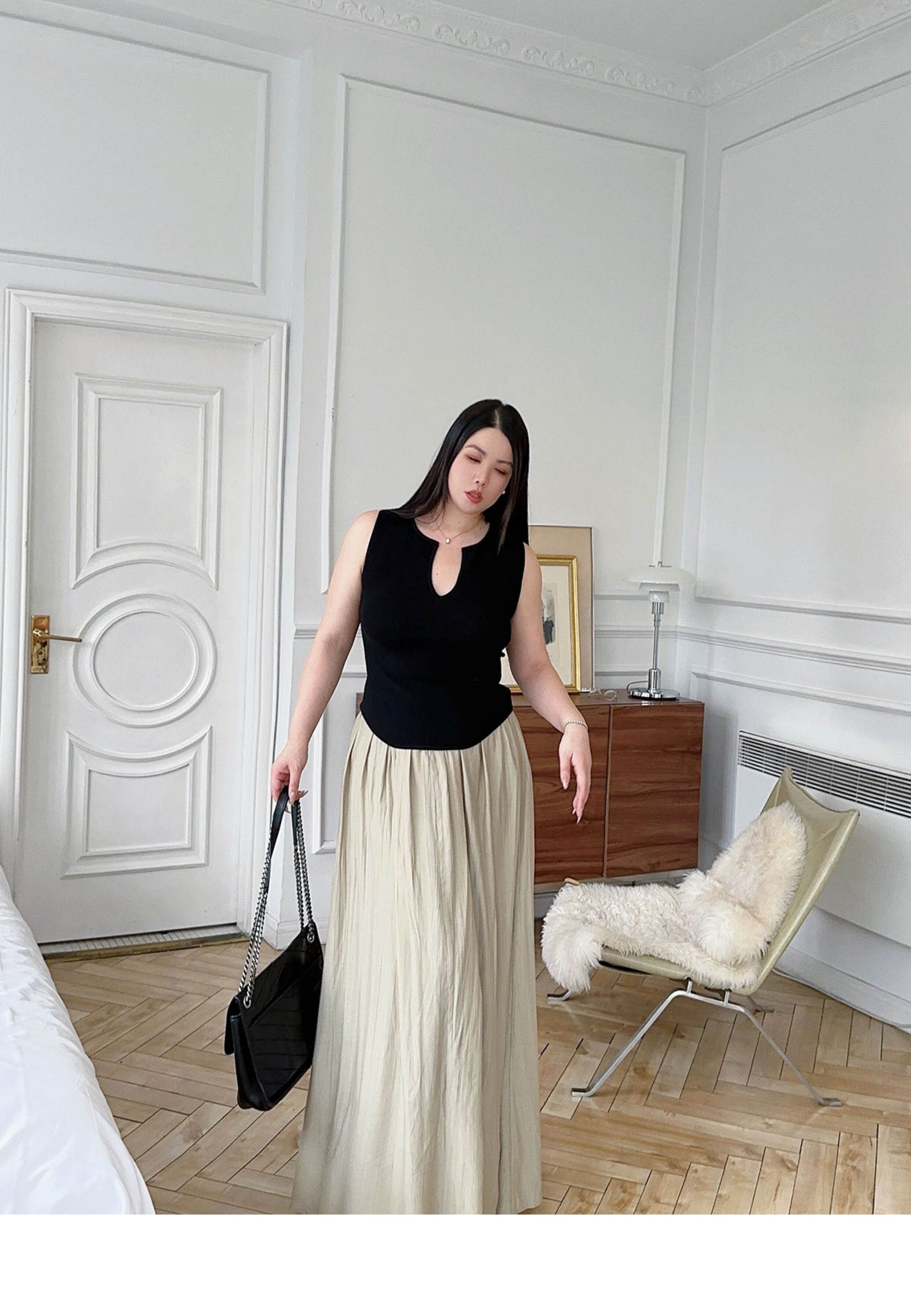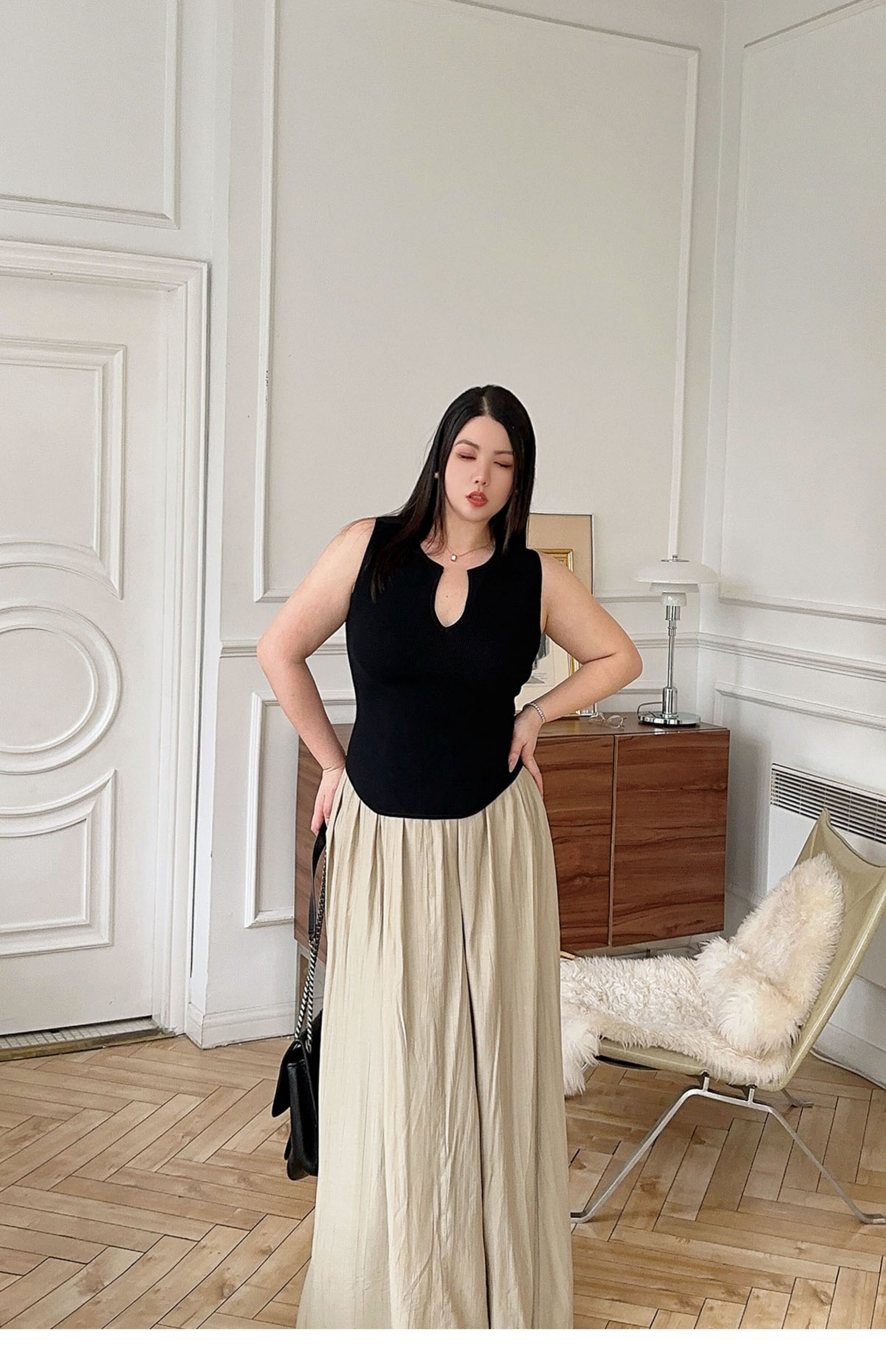 New Chinoiserie] Apricot Linen Pleated Retro Slimming Look High-End Lazy Style Skirt High Waist Covering Crotch Large Size Slimming Look