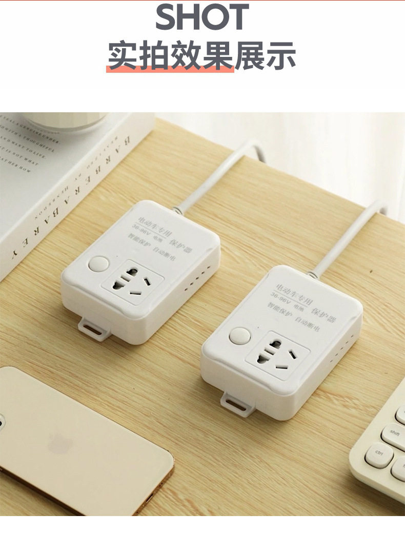 Electric Vehicle Charging Protector with Automatic Power-Off Socket, Smart Timer for Battery Charging, Power Strip Extension Cord, 96V Anti-Overcharge Socket, Smart Timed Power Saver
