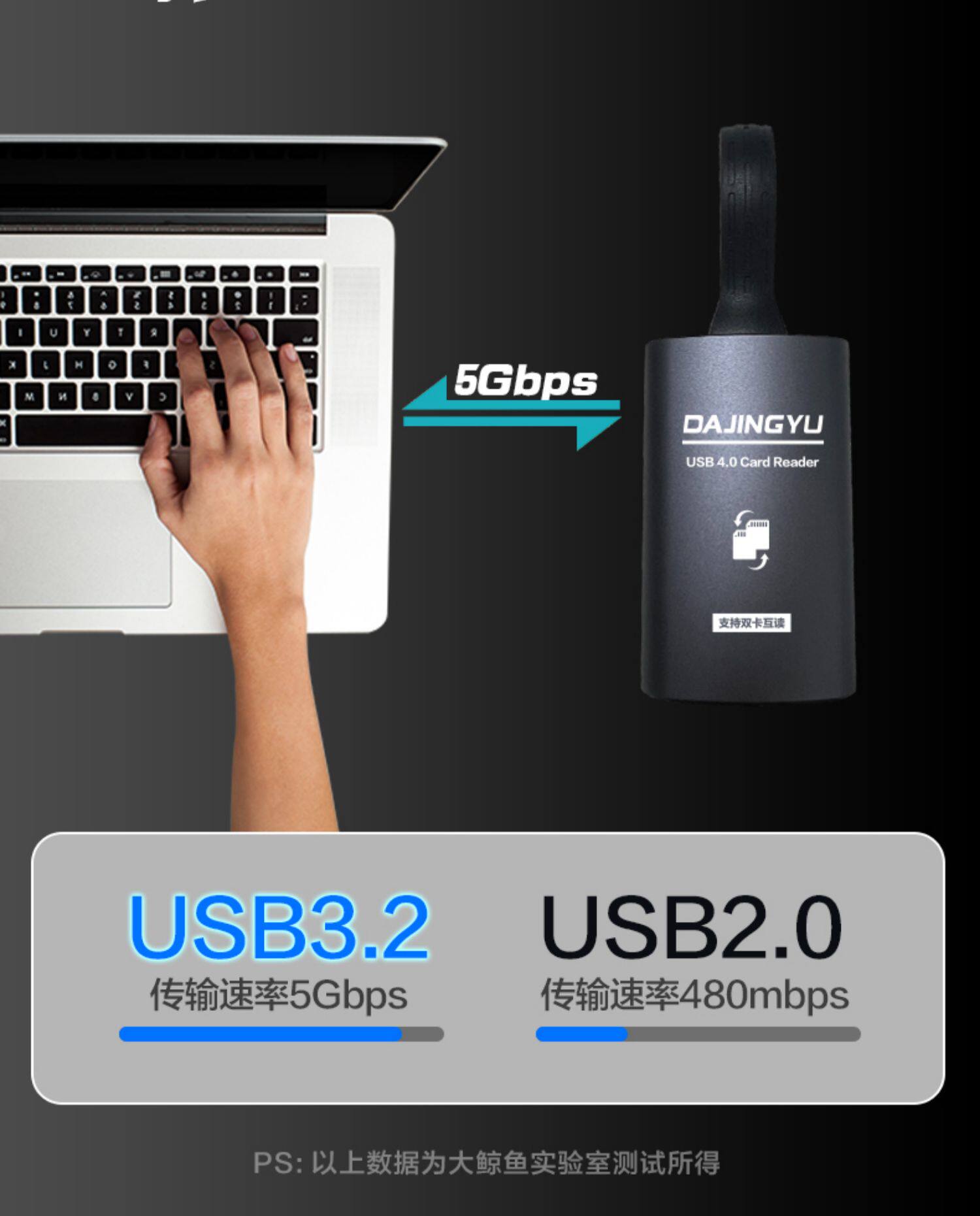 Dajingyu High-Speed Sd4.0 Card Reader Typec/Usb3.2 Gen1 Two-In-One Tf Storage Card/Sd Memory Card Dual Card Transfer and Simultaneous Reading Camera Card Docking Station
