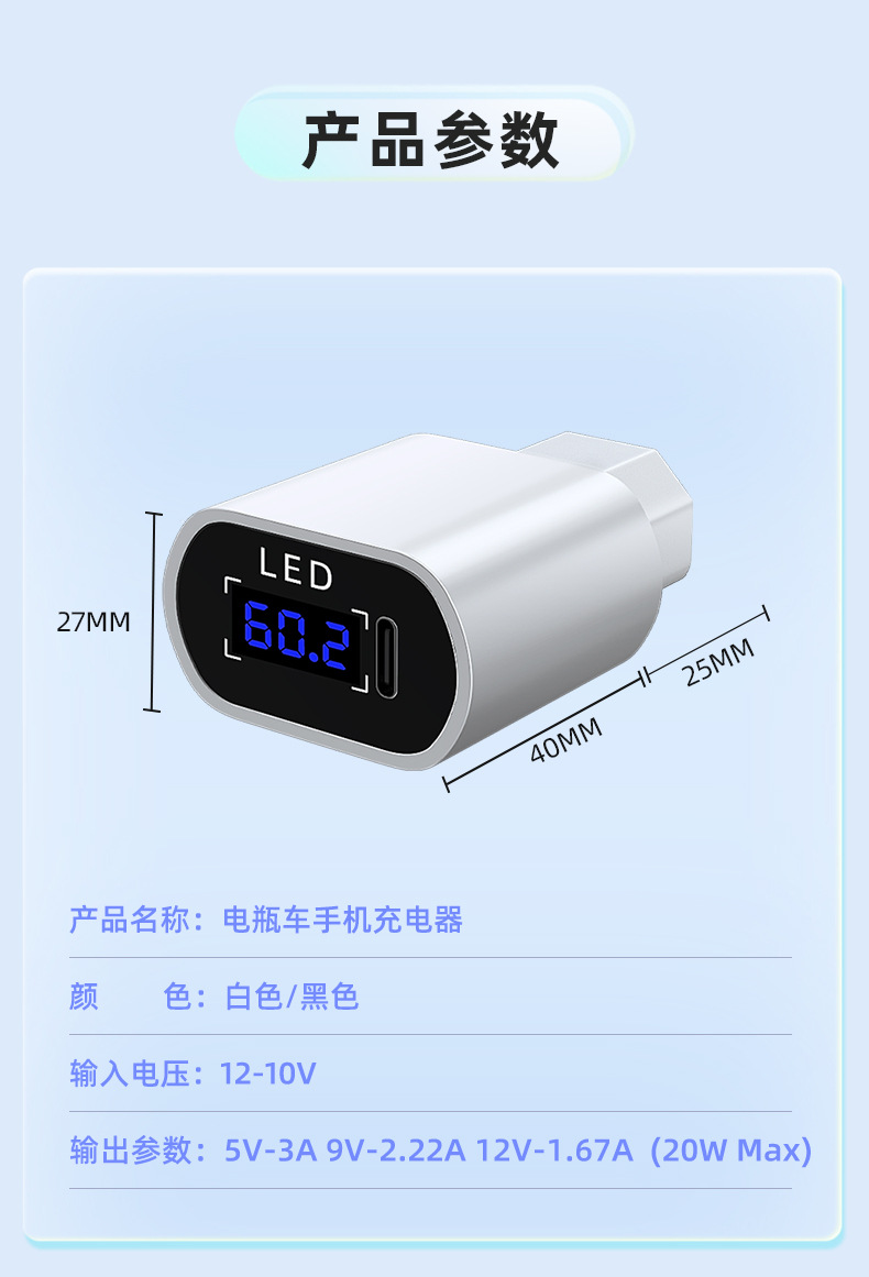 Color Classification Electric Vehicle Mobile Phone Charger Dual USB Interface 2A★Pin Socket-White Upgraded Model,Electric Vehicle Mobile Phone Charger Dual USB Interface 2A★Pin Socket-Black Upgraded Model,Electric Vehicle Mobile Phone Charger Single Type-C Interface Pd20W★Pin Socket-White,Electric Vehicle Mobile Phone Charger Single Type-C Interface Pd20W★Pin Socket-Black,Electric Vehicle Mobile Phone Charger Single Type-C Interface Pd20W★Pin Socket-White + 1m Pd Data Cable,Electric Vehicle Mobile Phone Charger Single Type-C Interface Pd20W★Pin Socket-Black + 1m Pd Data Cable