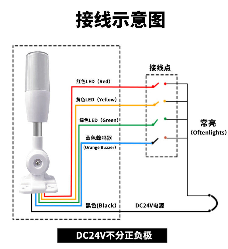Color Classification 24V Always on,Buzzer,24V Red Flash,Buzzer,12V Always on,Buzzer,12V Red Flash,Buzzer