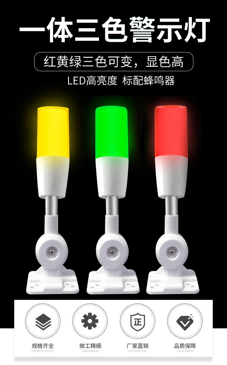 Integrated Three-Color Light Machine Tool Equipment Signal Light Led Warning Light Sound and Light Alarm Single Layer Indicator Light 24V12V