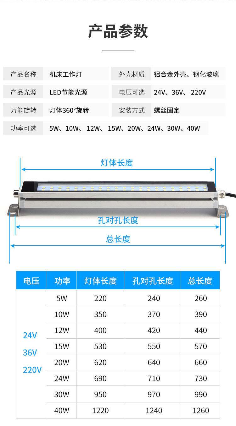 Led machine tool work light CNC lathe explosion-proof light 24v aluminum alloy three-proof lighting waterproof and oil-proof 220