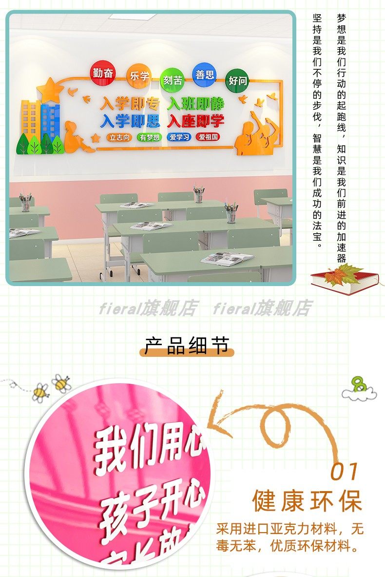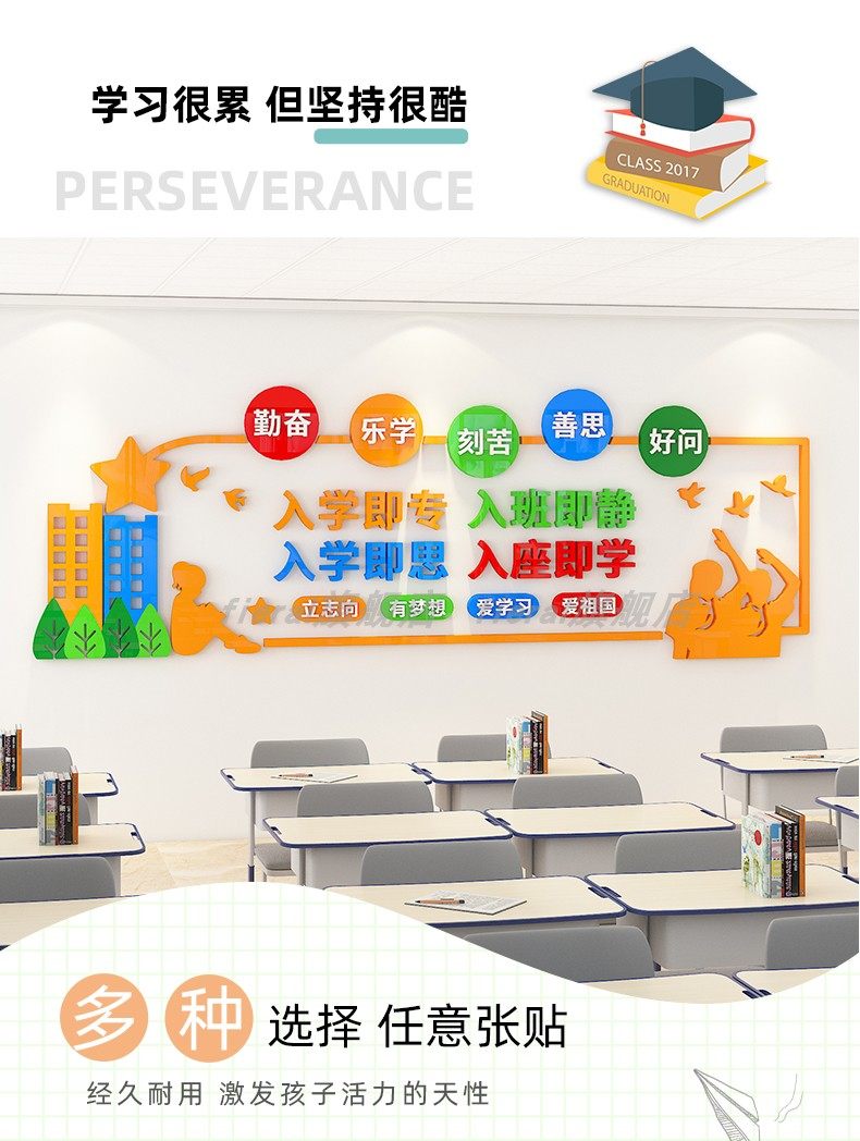 When Entering the Class, the Atmosphere Is Quiet. Classroom Decoration Artifacts, Inspirational Slogans, Elementary School Cultural Background Wall Stickers