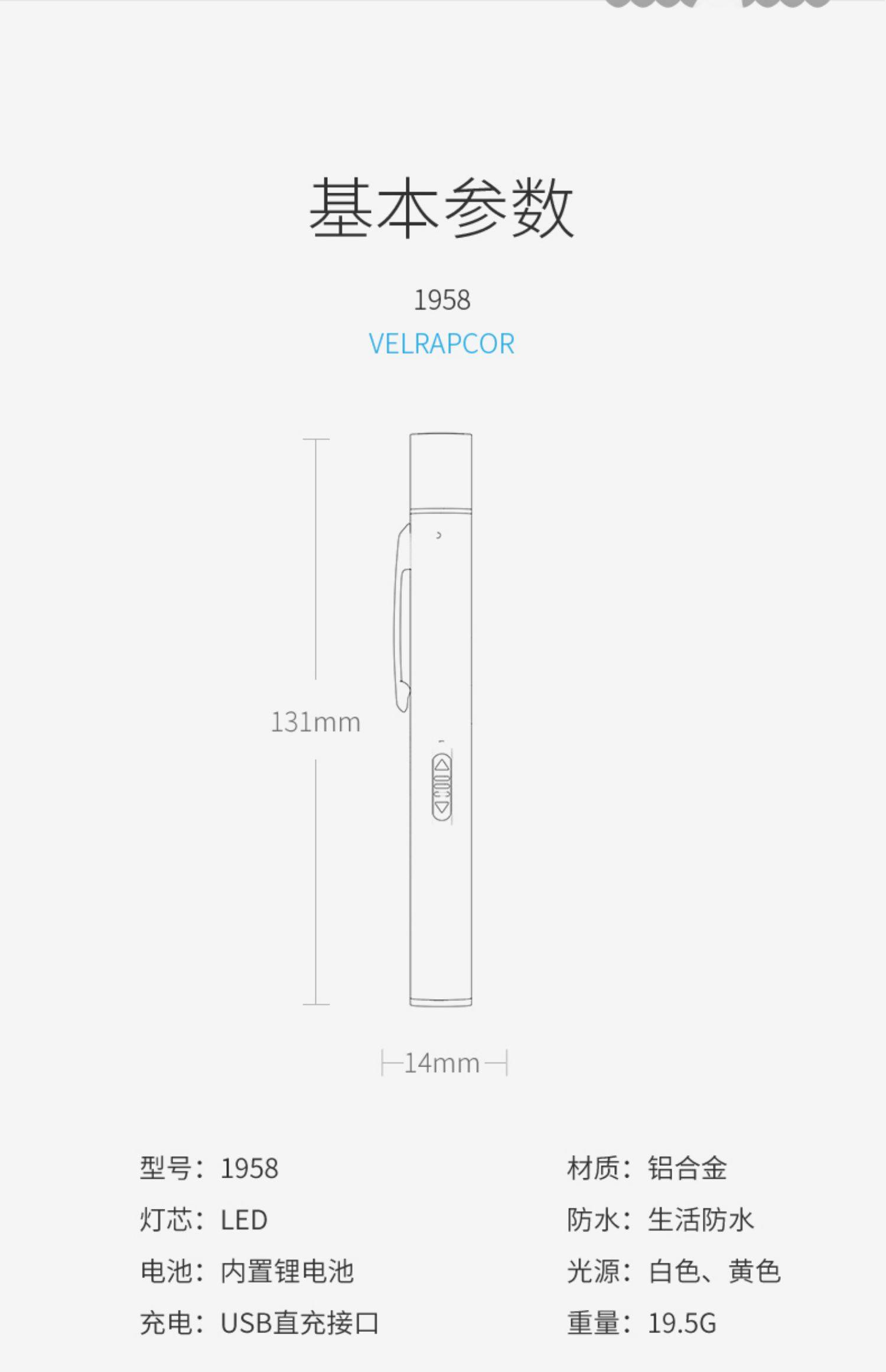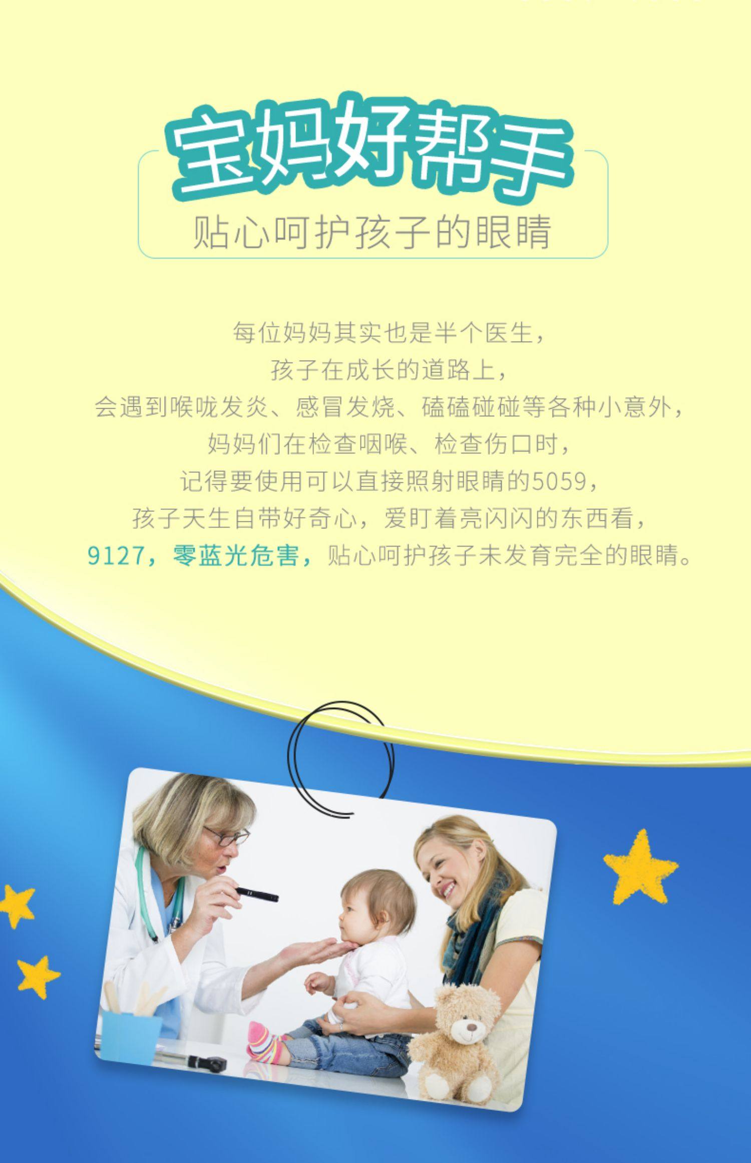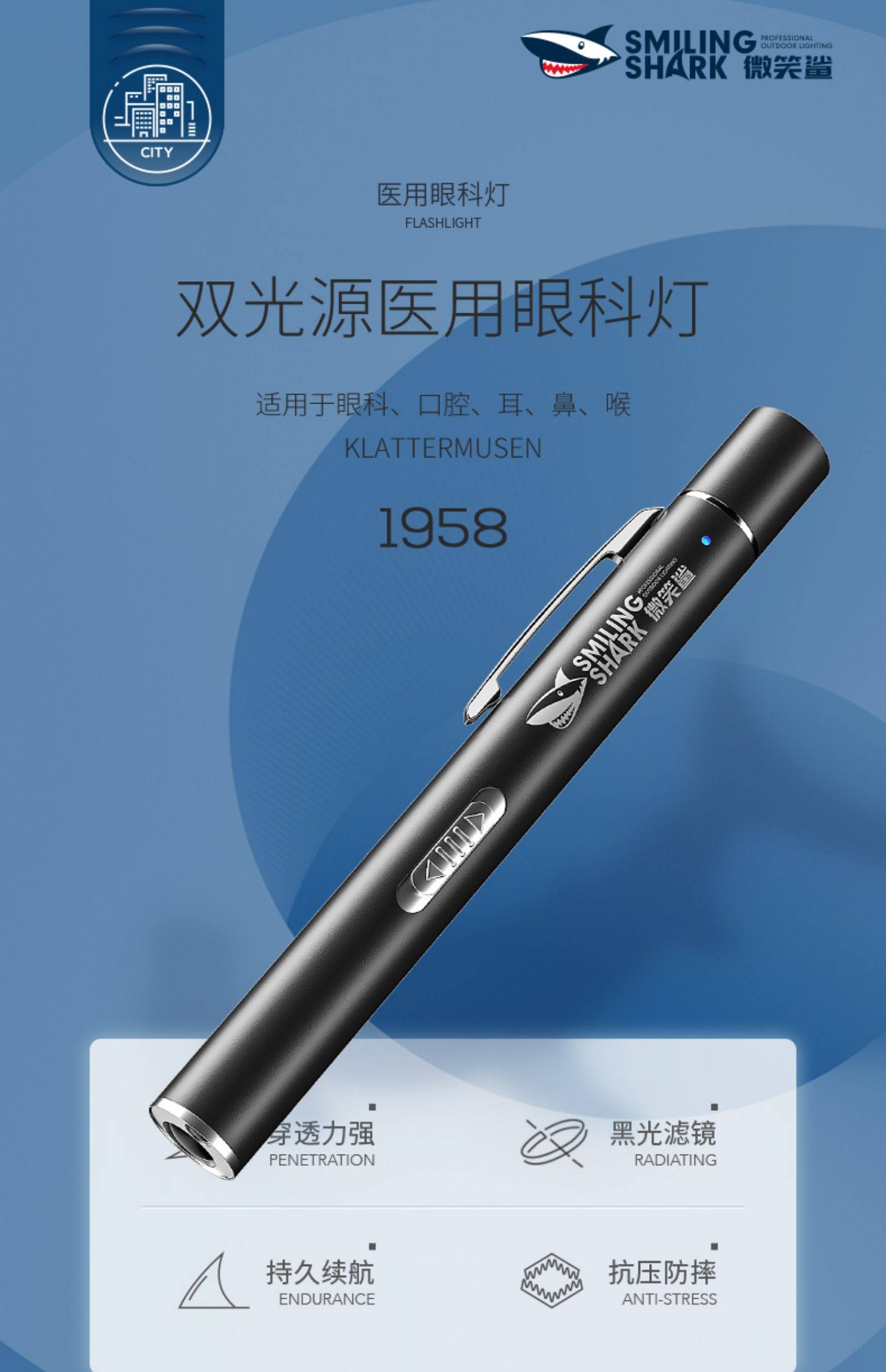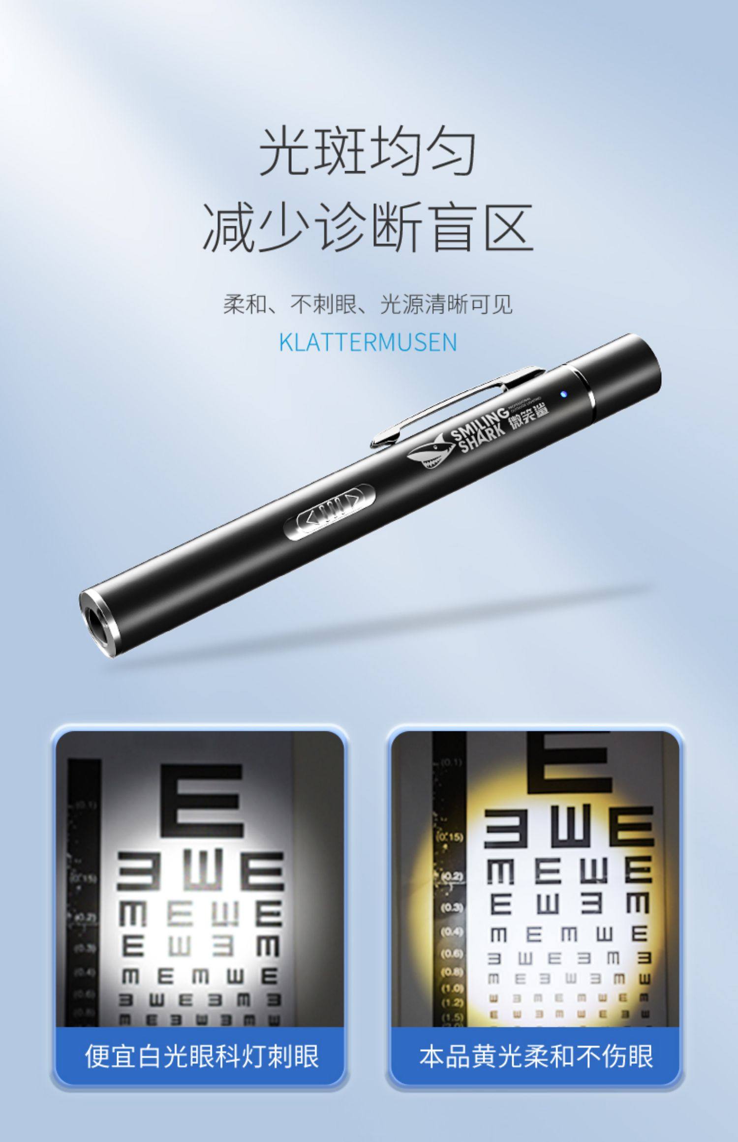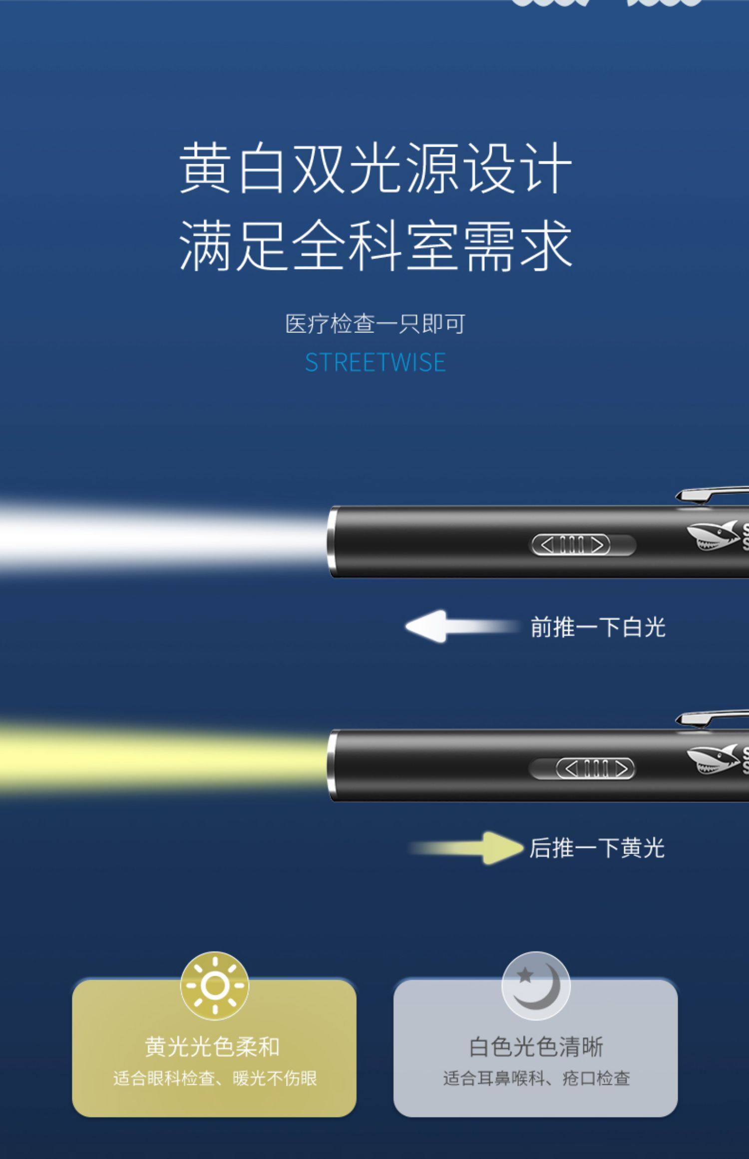 Smiling Shark Yellow and White Dual-Light Medical Pupil Pen Nurse Oral, Ear, Nose and Throat Ophthalmology Pen-Shaped Flashlight Doctor Morning Examination