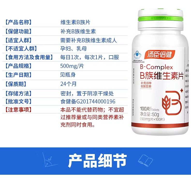Color Classification [Large Bottle] B Vitamins 100 Tablets*2 Bottles,[Large Bottle] B Vitamins 100 Tablets*1 Bottle,[Store Manager Recommended Gift Box] Byhealth B Complex Vitamins - 100 Tablets * 2,【Stock-Up Pack】B Vitamins 100 Tablets * 6 Bottles,Vitamin B+C [Package],[New Experience Pack] B Vitamins 50 Tablets,【Stock-Up Pack】B Vitamins 30 Tablets * 3 Bottles,[Discount Pack] B Vitamins 30 Tablets*2 Bottles,[Trial Pack] B Vitamins 30 Tablets*1 Bottle,[Trial Pack] Vitamin C 30 Tablets*1 Bottle,Vitamin B 30 Tablets*3,Vitamin B 30 Tablets*2