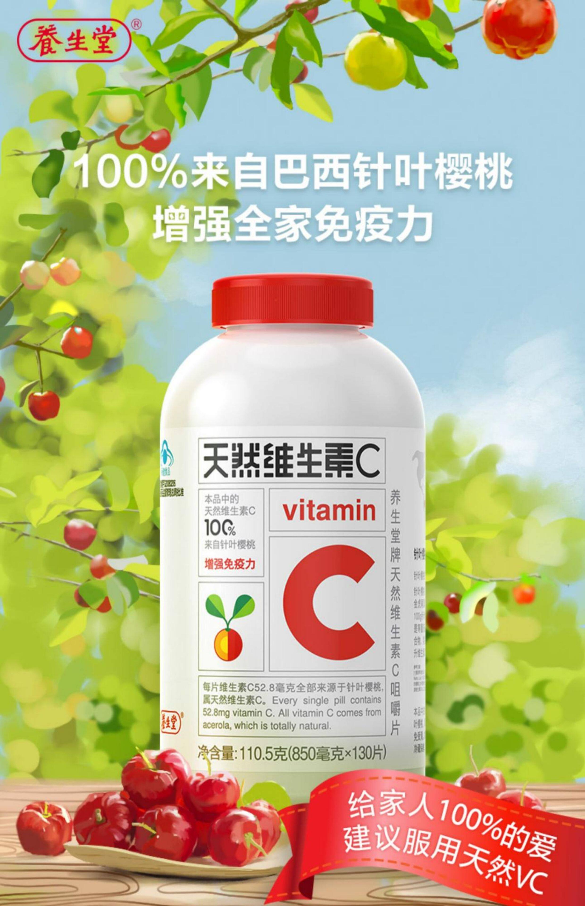 Yangshengtang Natural Vitamin C Chewable Tablets Genuine Children's Vc Tablets Immunity Supplement Vitamins with Vitamin E Genuine Product