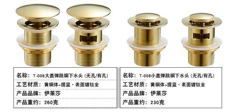 Golden drainer all copper pop-up basin washbasin washbasin drainer flip plate gold-plated leak plug