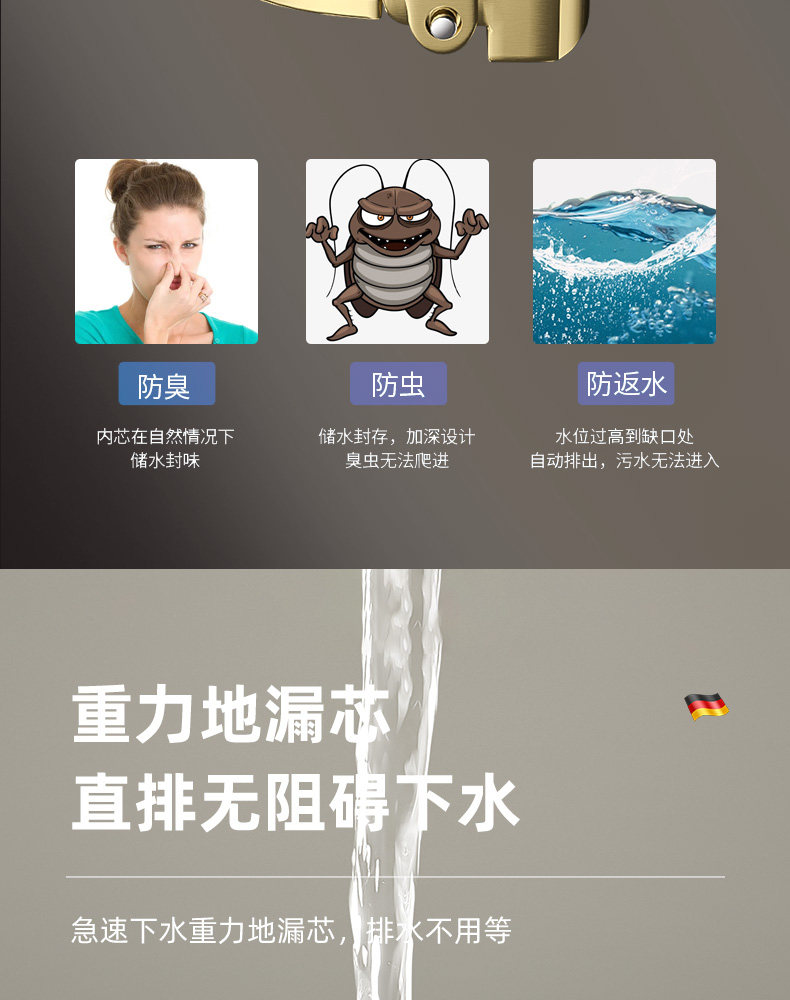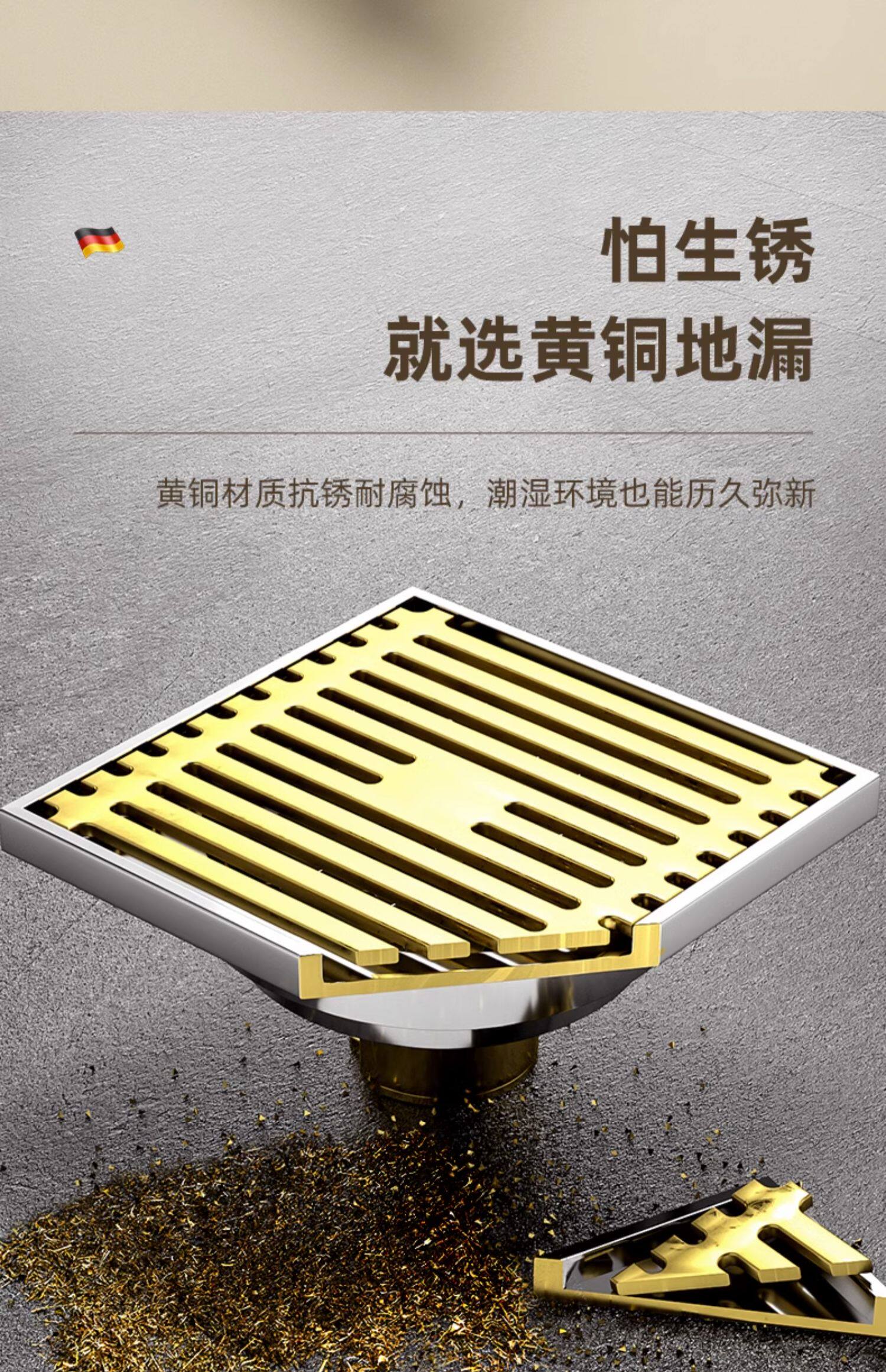 Italian Aisoni Anti-Odor All-Copper Brushed Cream-Style Washing Machine Bathroom Drain Shower