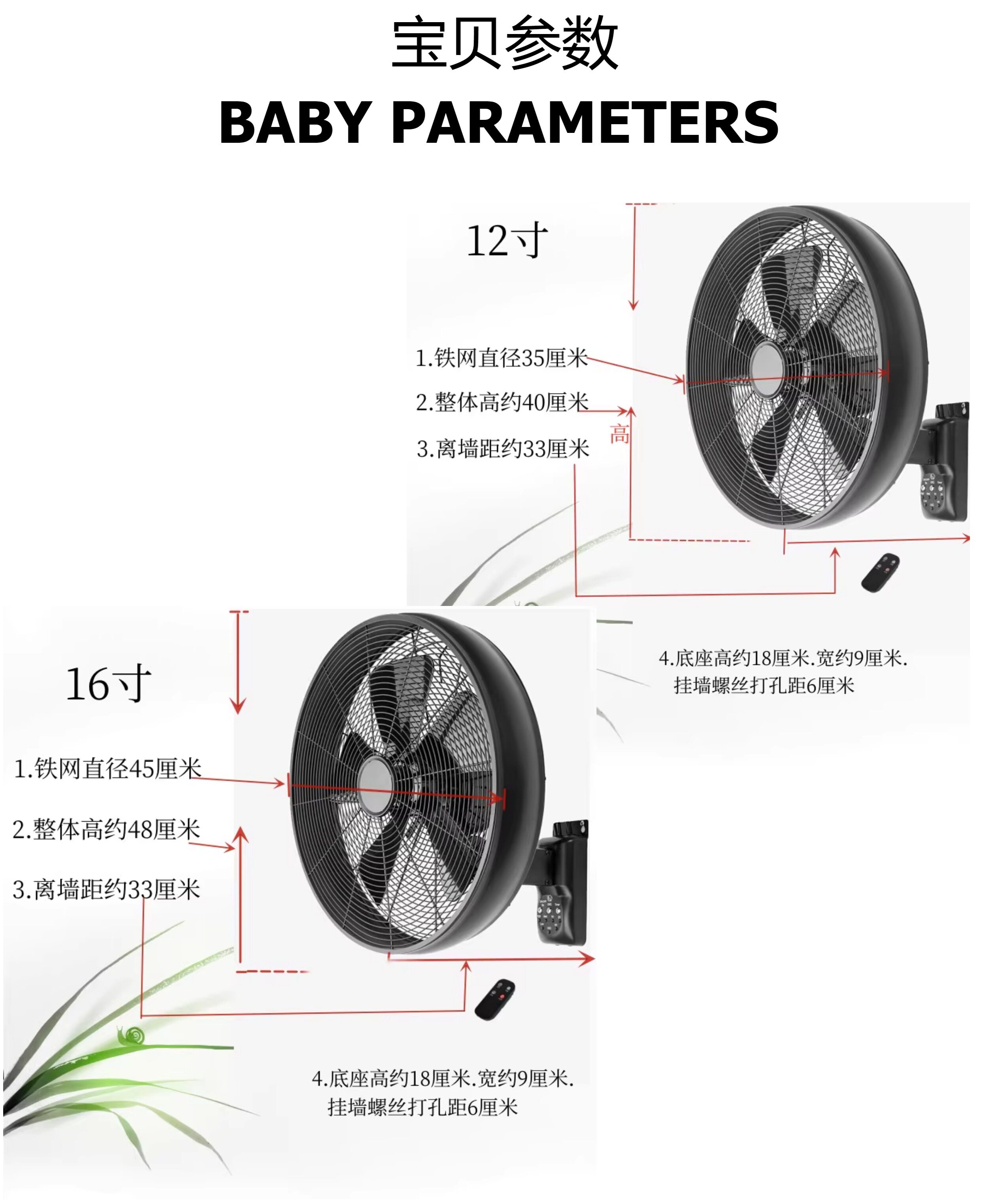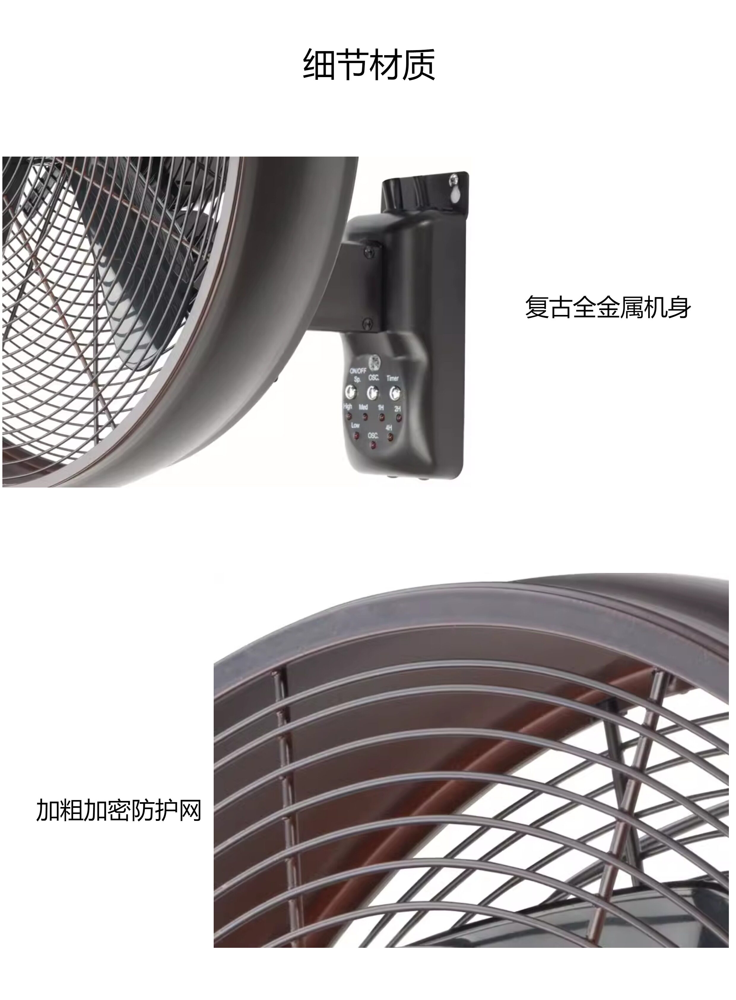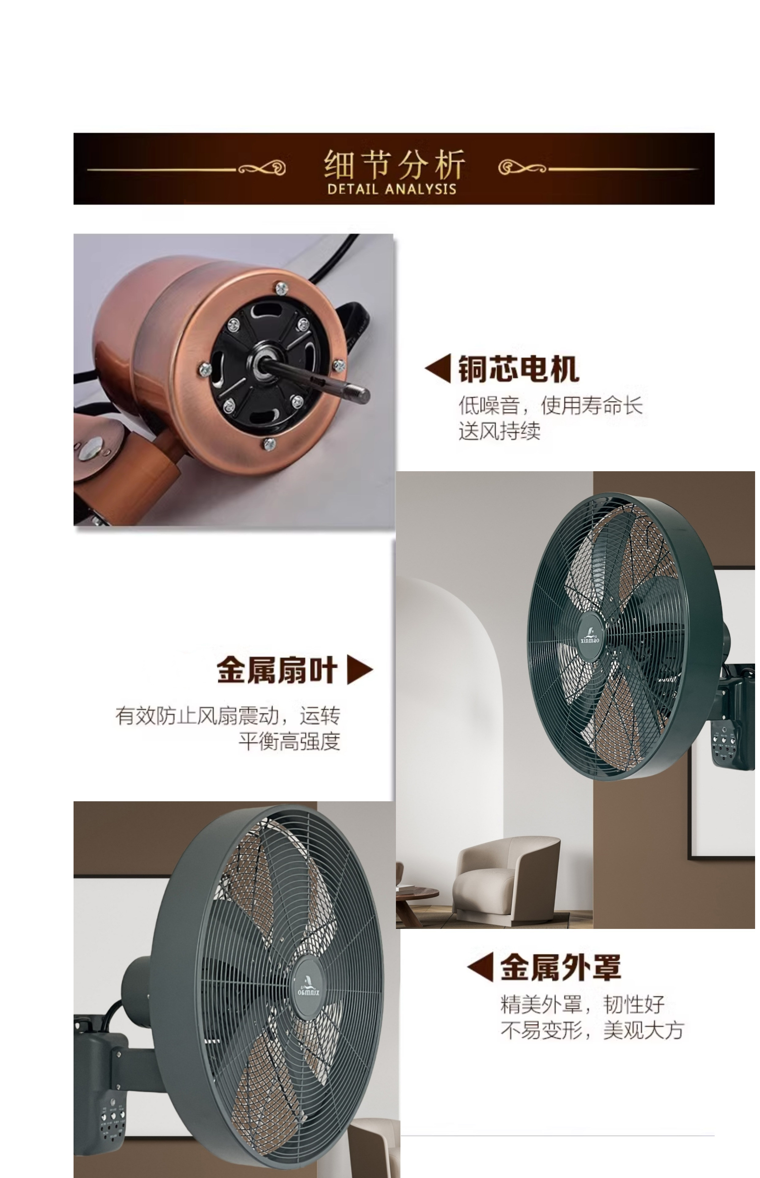 Retro Wall Fan Commercial Wall-Mounted Metal Remote Control Fan Antique Decorative Restaurant Hotel Large Air Volume Electric Fan
