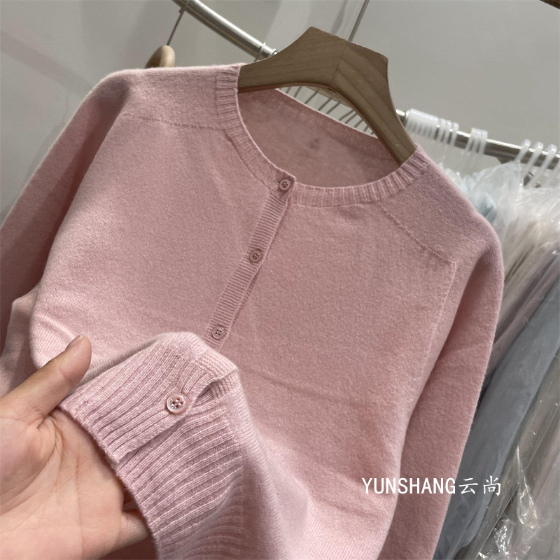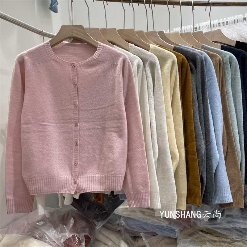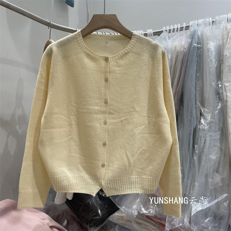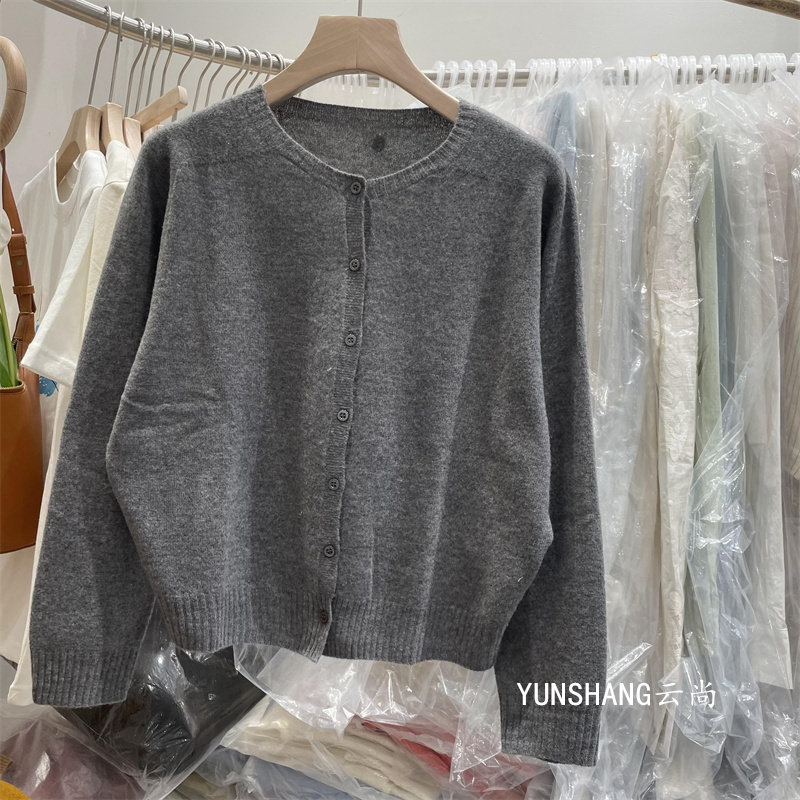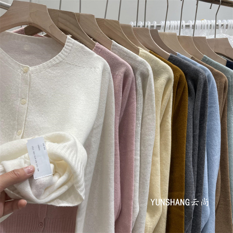 High-Quality All-Wool 6629 Korean-Style Gentle Round-Neck Single-Breasted Knitted Cardigan Versatile Age-Reducing Short Long-Sleeve Sweater