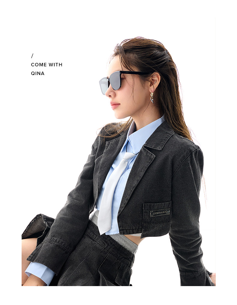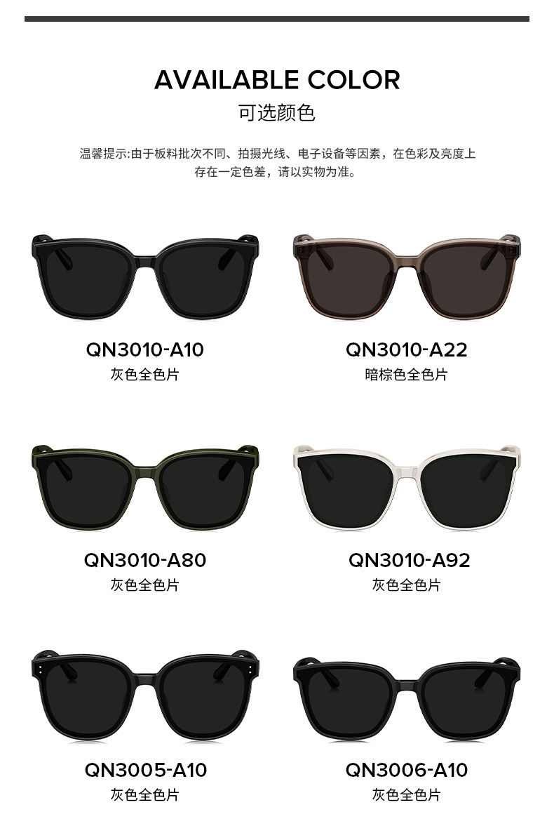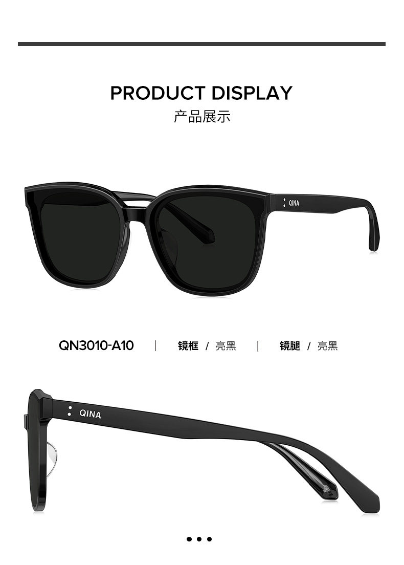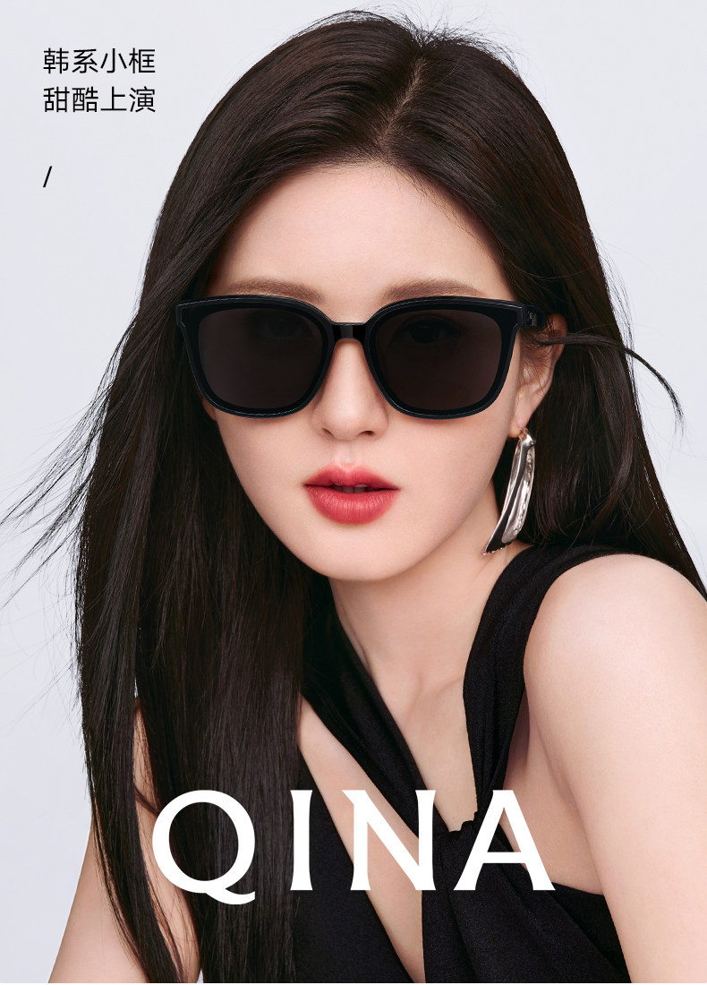 QINA Qina new style Zhao Lusi sunglasses women's advanced ins sun protection black super sunglasses men QN3010