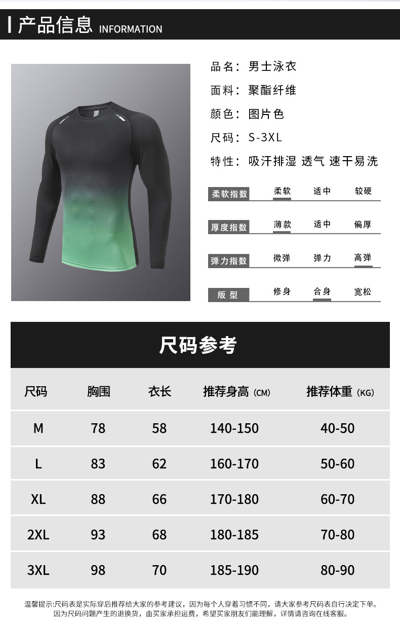 Swimsuit Men's Sun Protection Long-Sleeved Top for Swimming, Hot Springs, Diving, Snorkeling, Surfing, Adult Breathable Quick-Drying Clothing Equipment