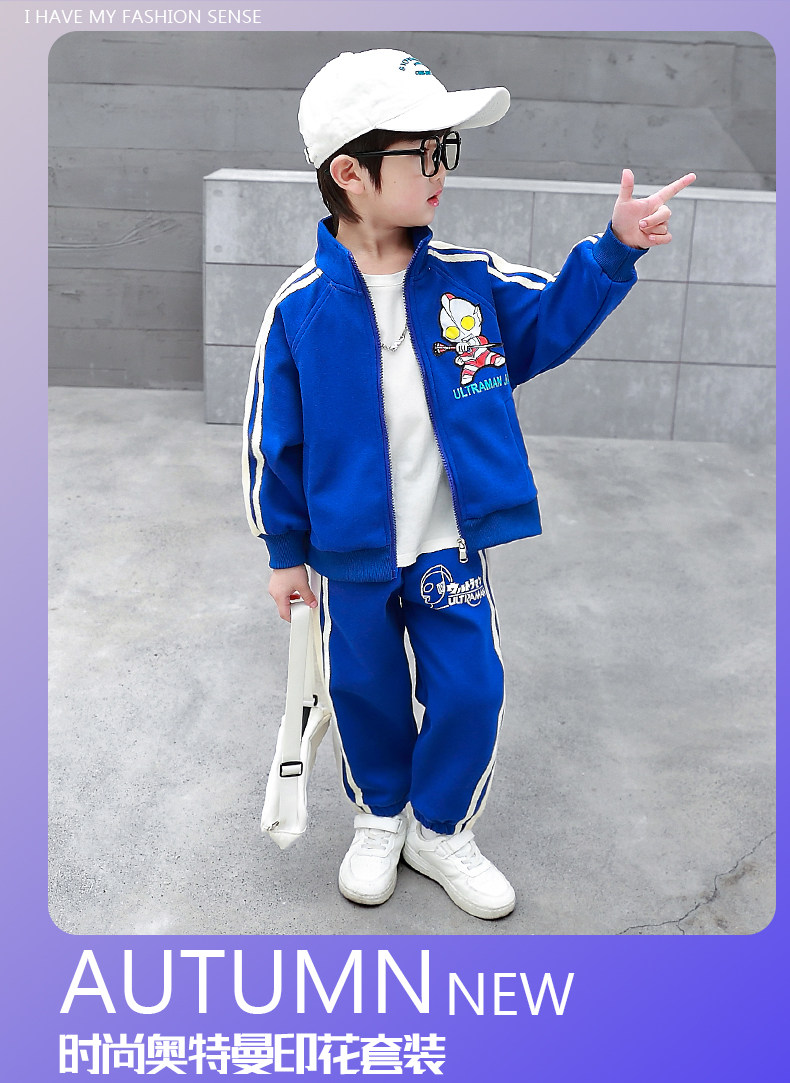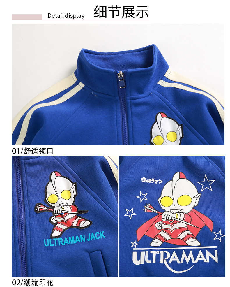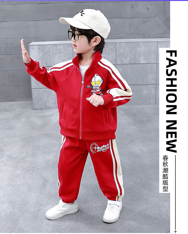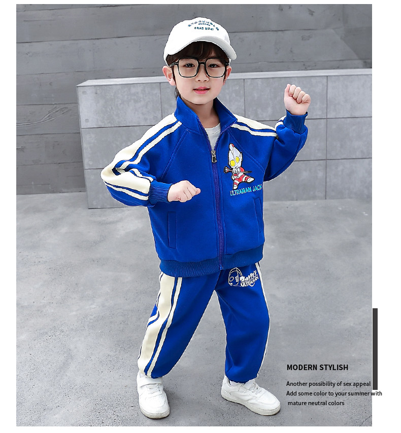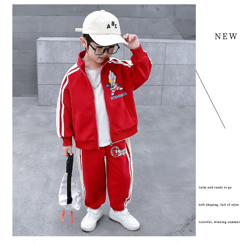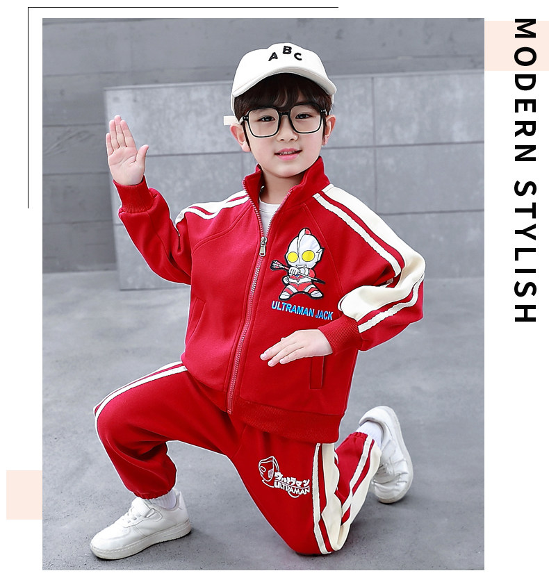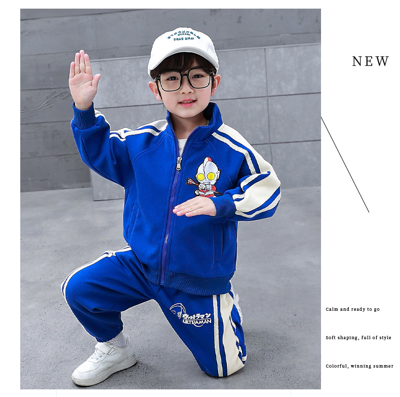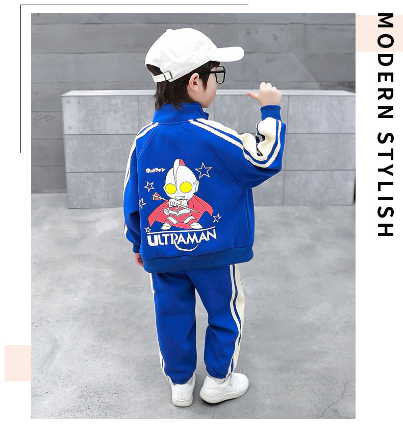 Ultraman Clothes Boys' Spring and Autumn Suit 2024 New Stylish Children's Trendy Sports Cardigan Sweatshirt Two-Piece Set