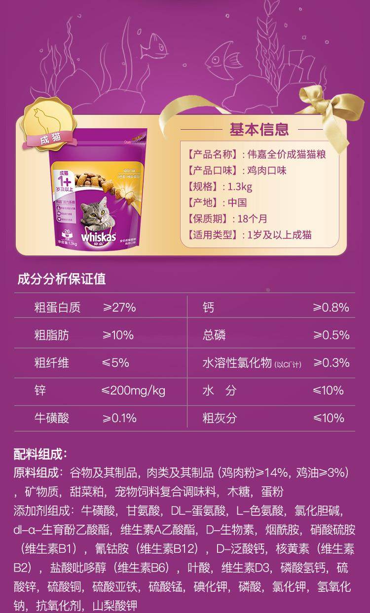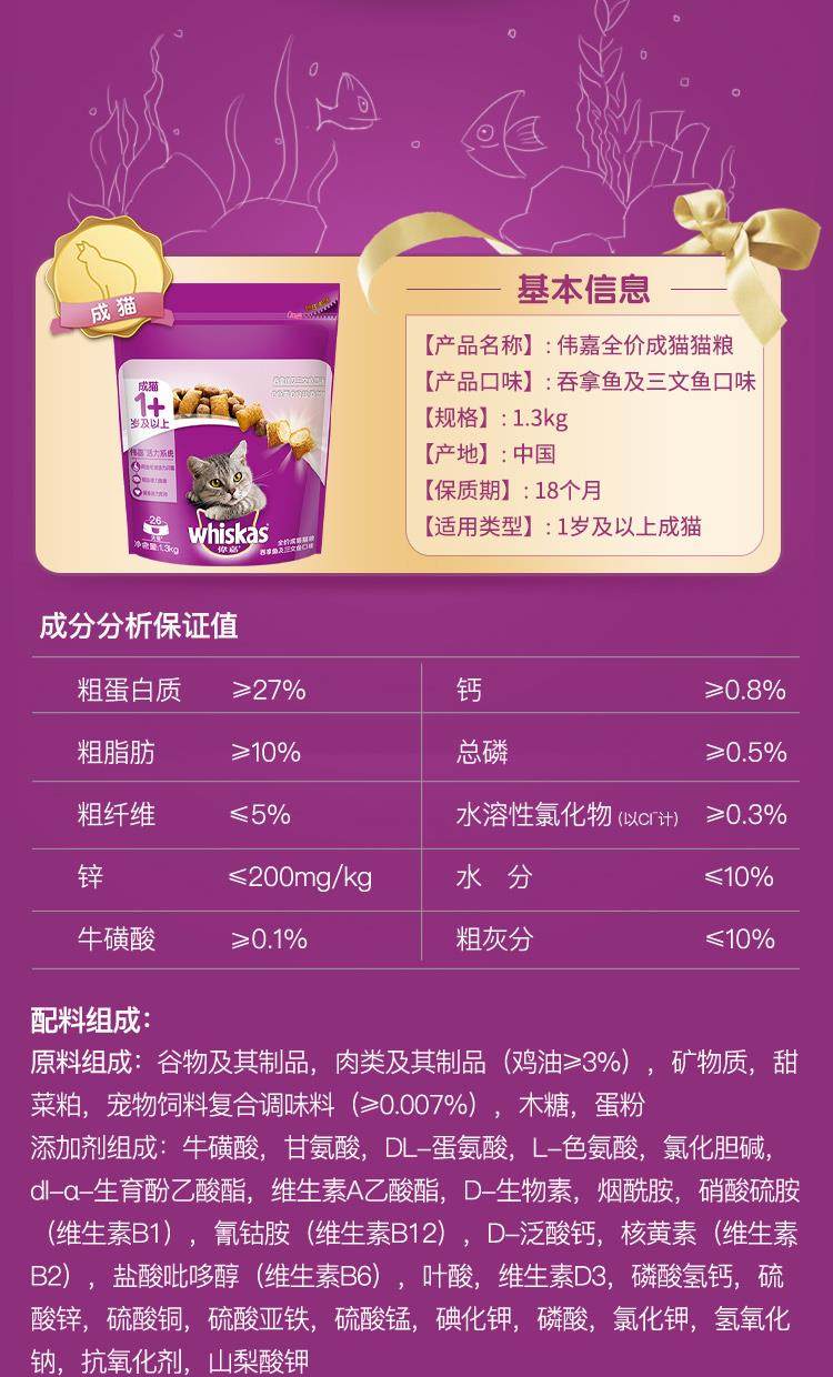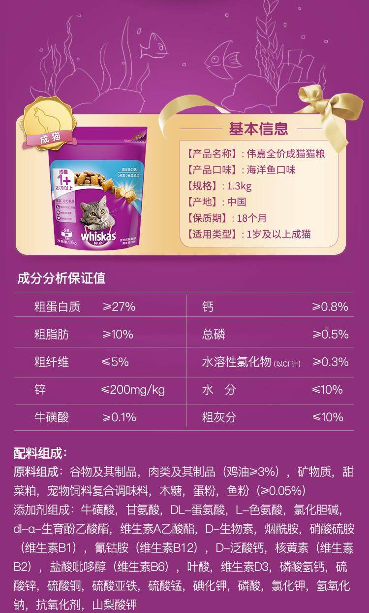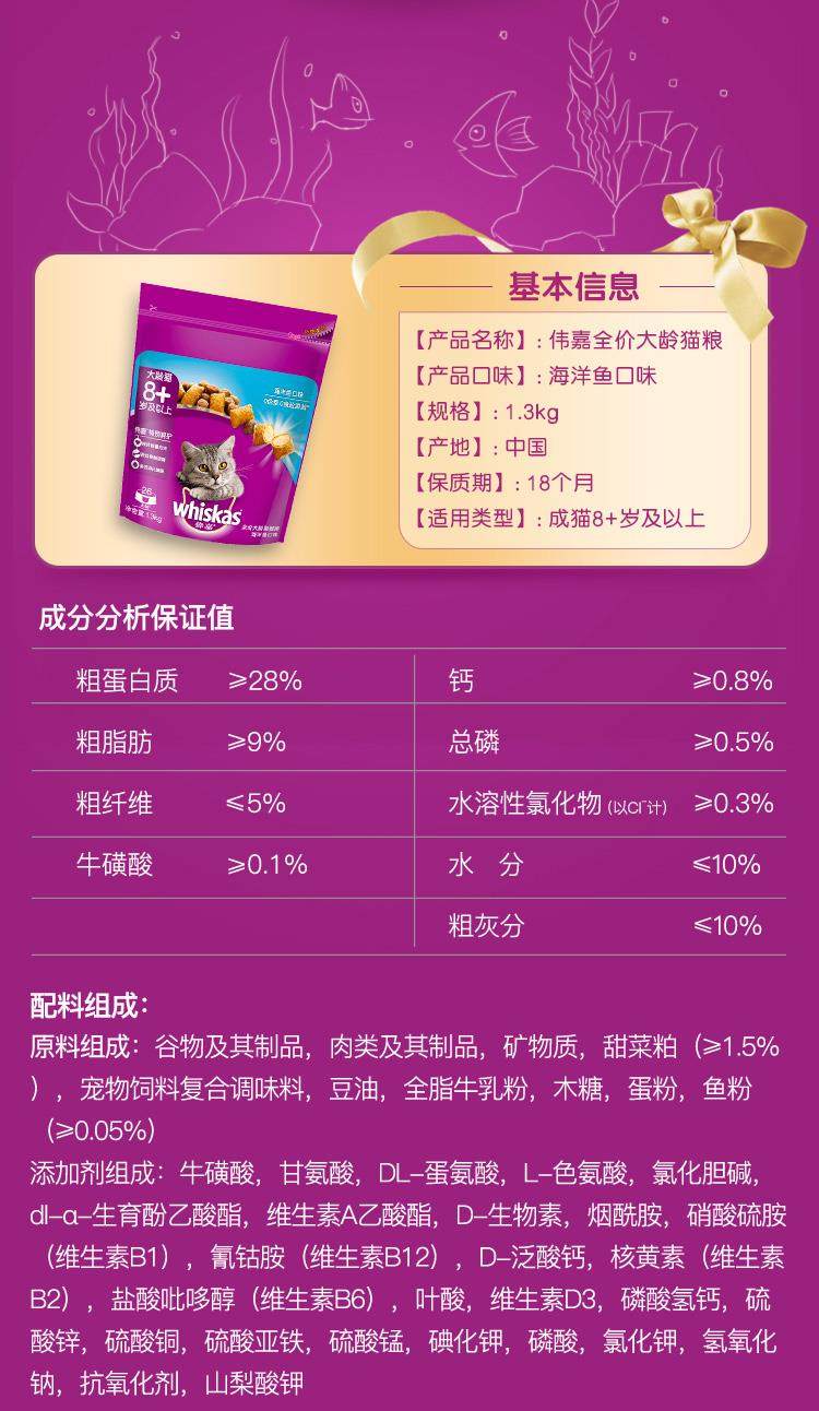 Weijia old cat cat food ocean fish flavor 1.3kg blue cat puppet special natural cat food for adult older cats