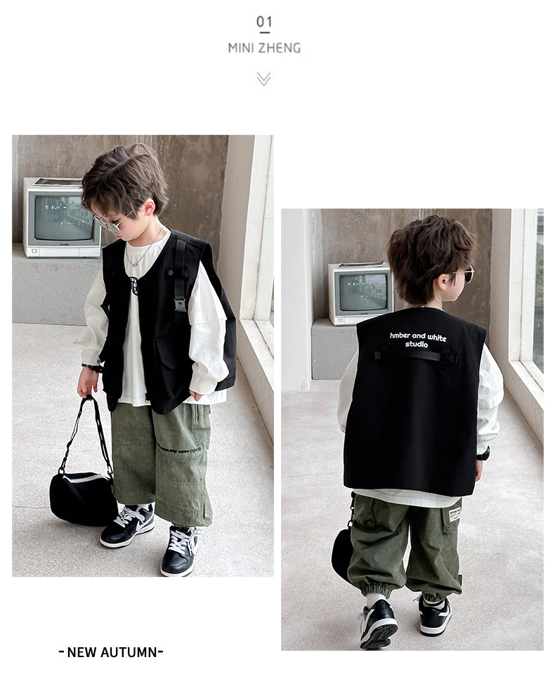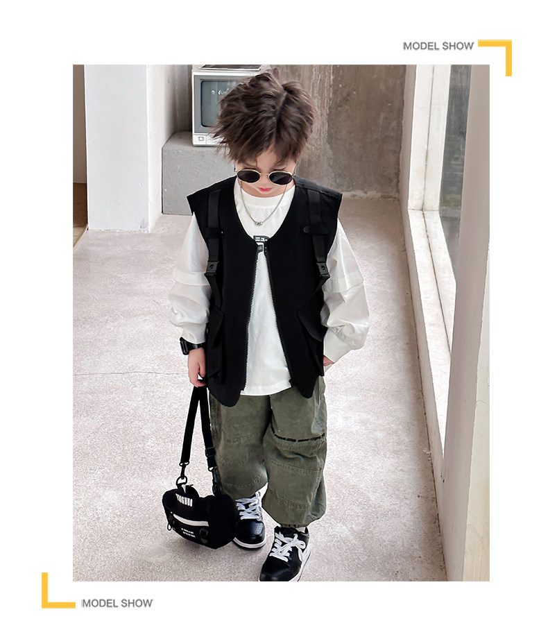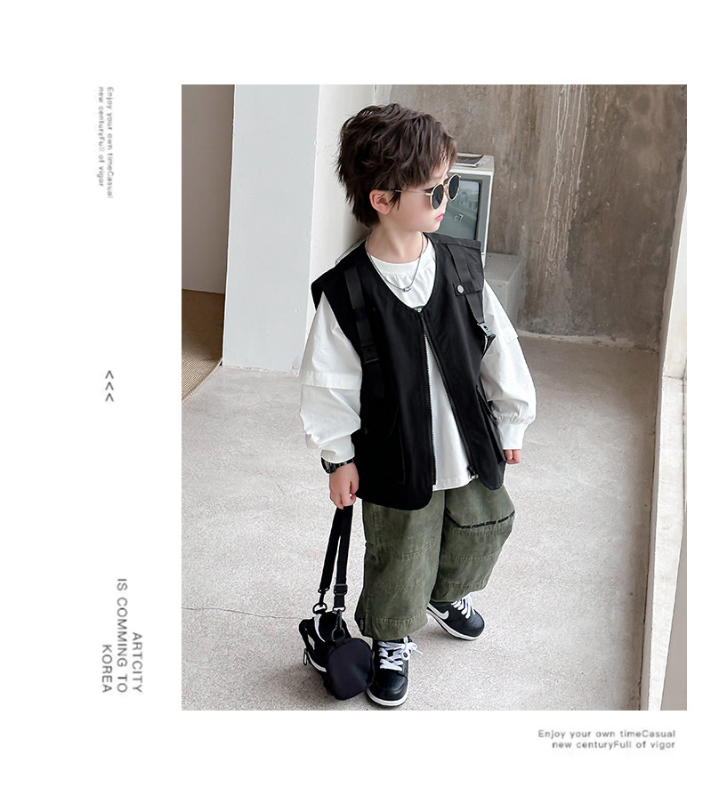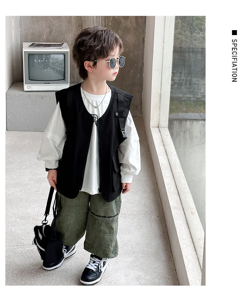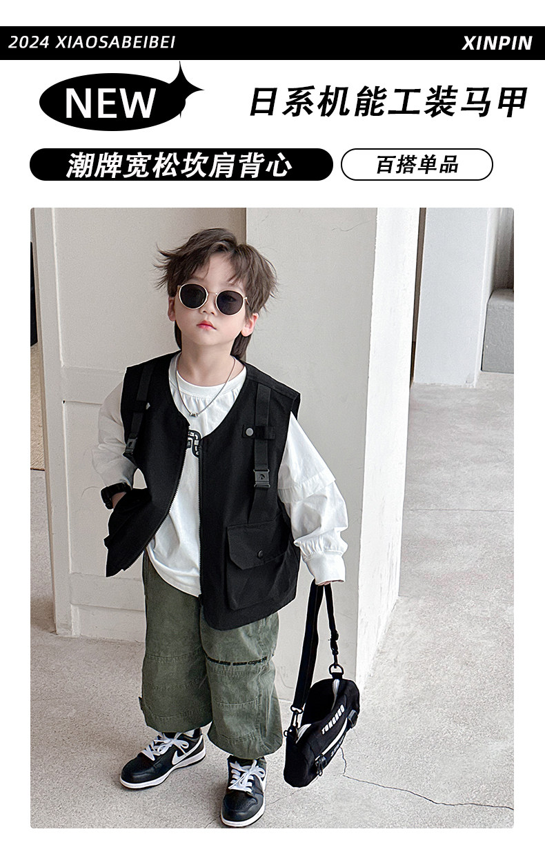 Boys' Vest Spring Wear 2026 New Style Children's Vest Stylish Little Boy Outerwear Vest Spring and Autumn Workwear Sleeveless Jacket