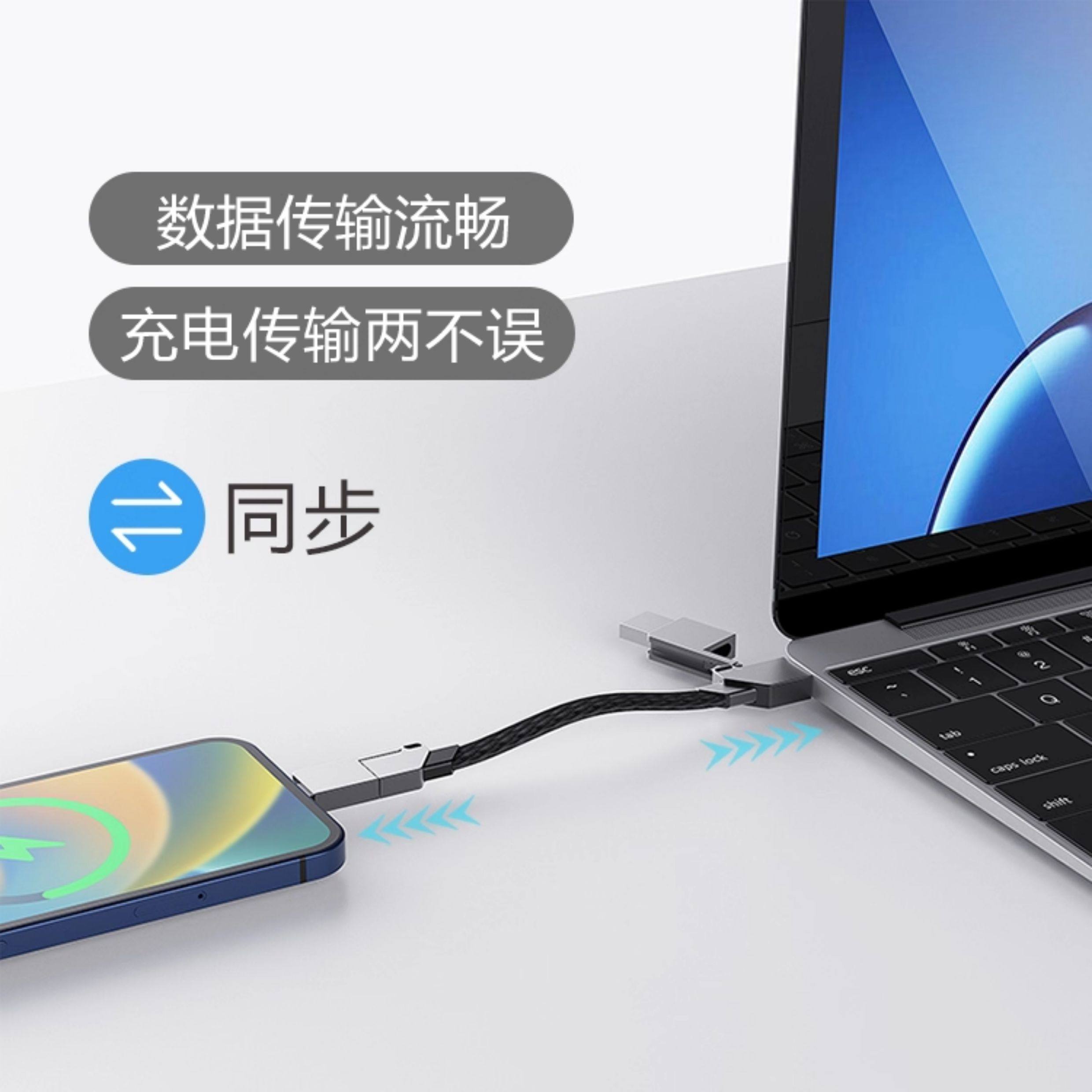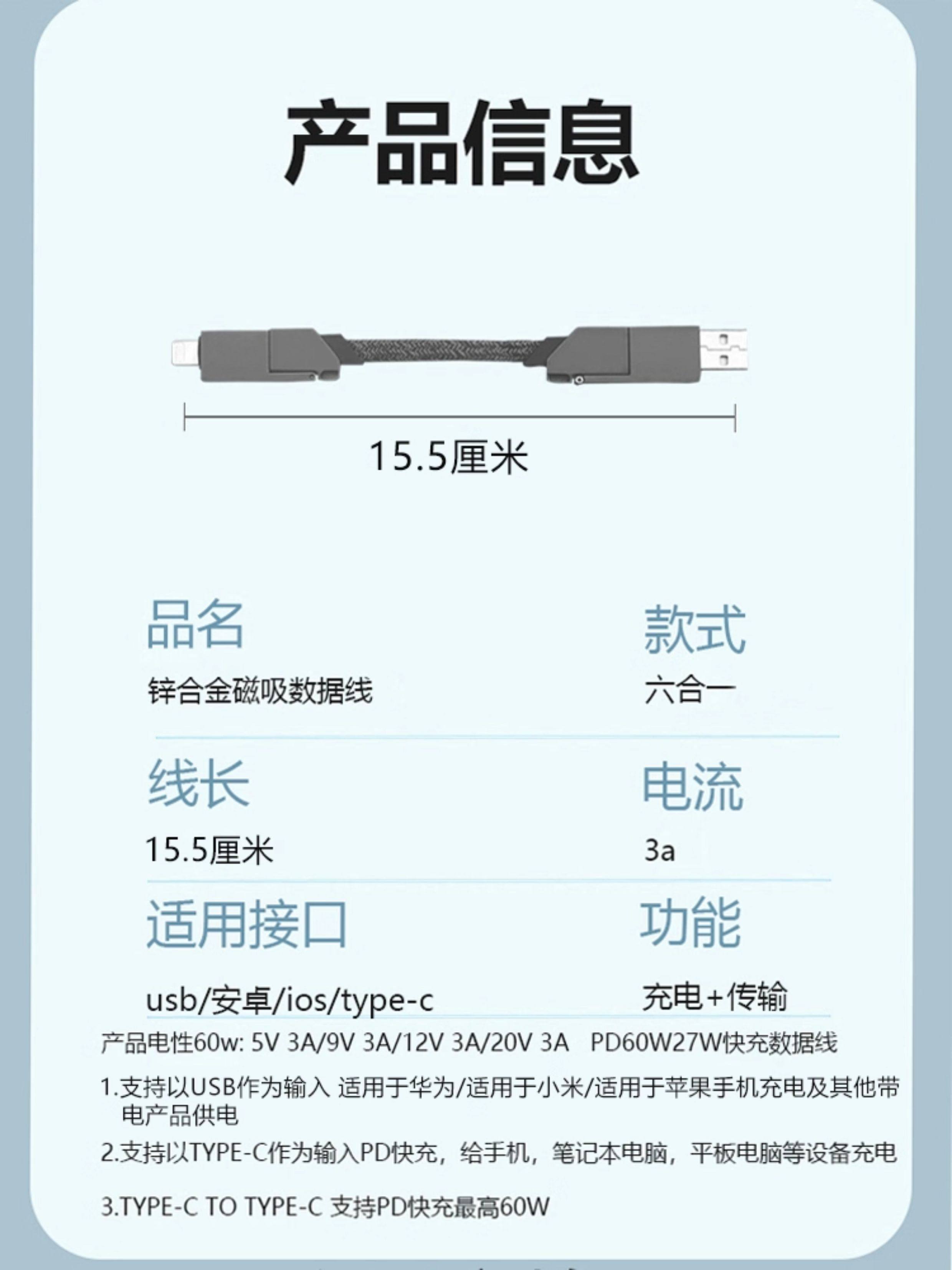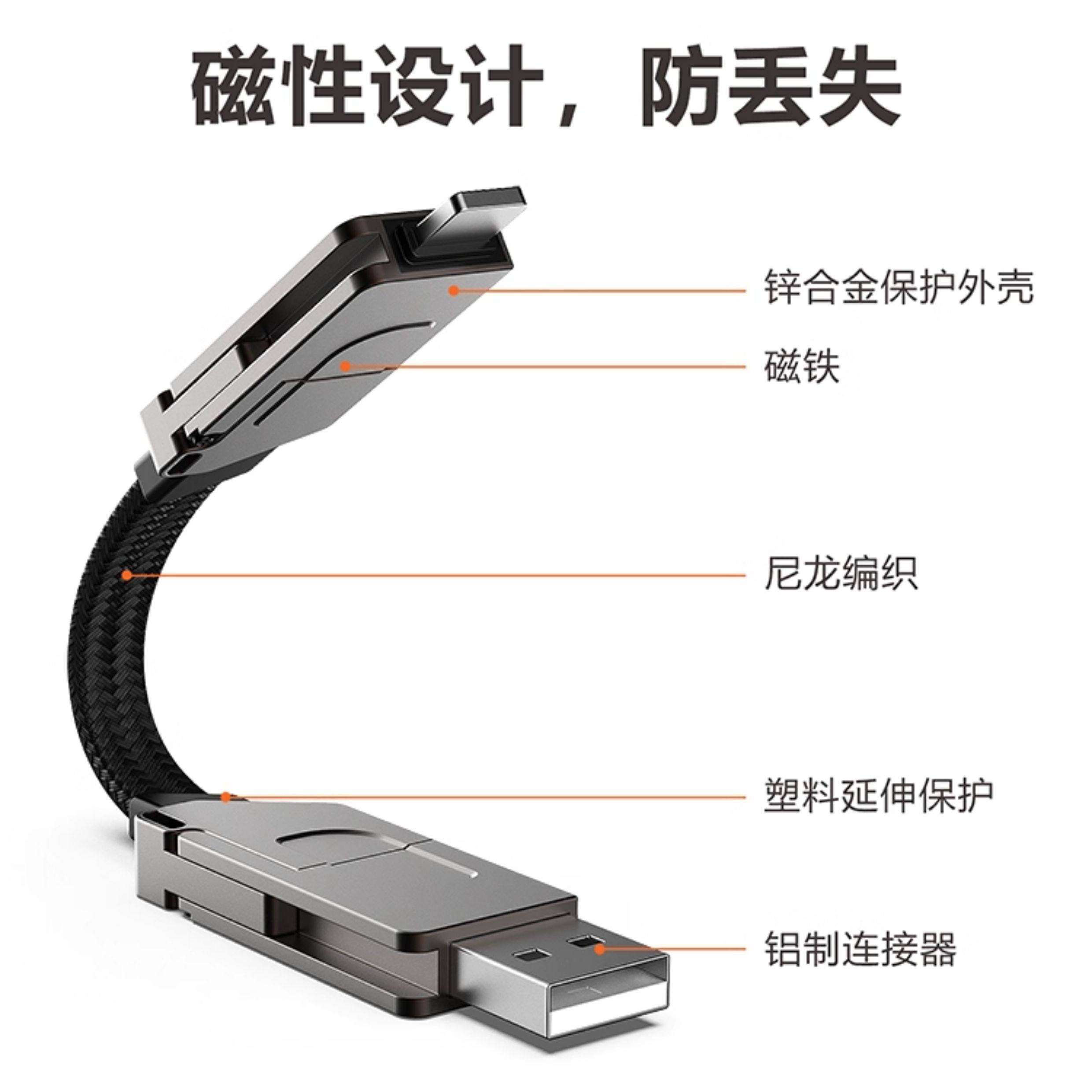 Six-In-One Keychain Data Cable 60W Fast Charging Type-C Four-In-One Magnetic Cable Suitable for Huawei Phones, Apple Pd 27W Fast Charging, Honor Android Dual Type-C Short Model Ip15 Power Bank USB