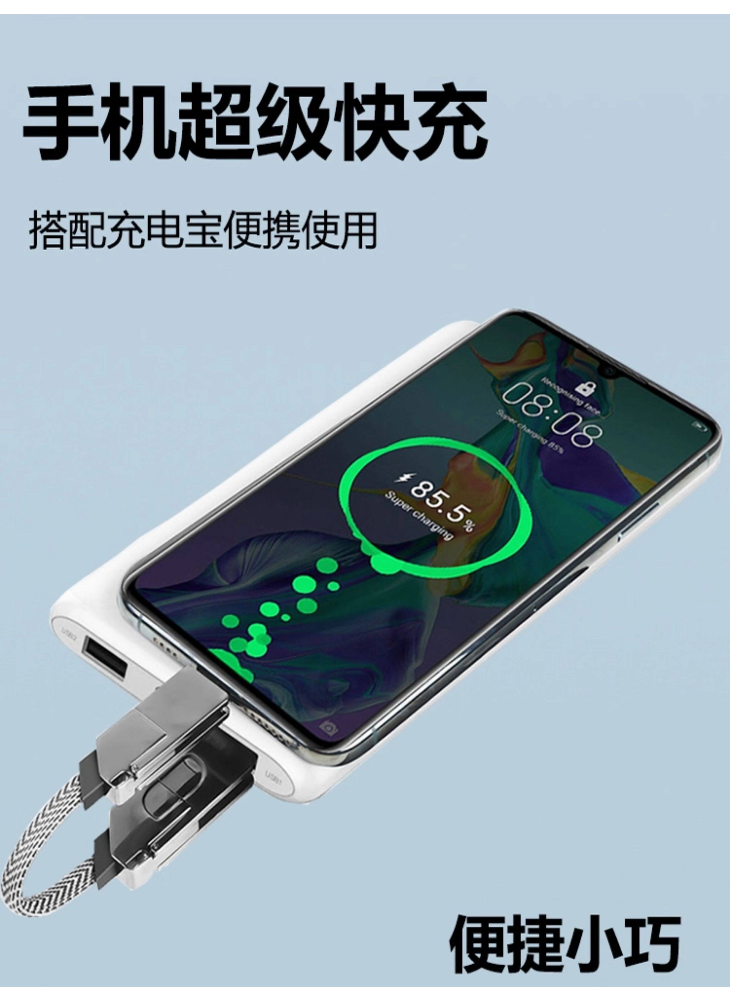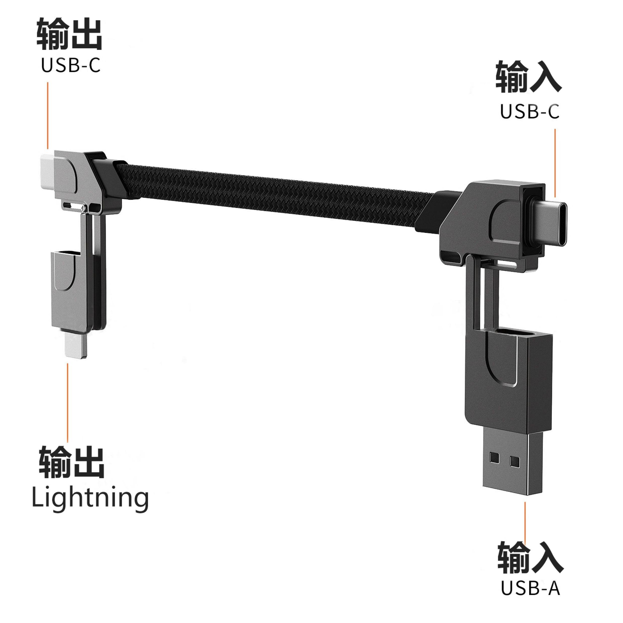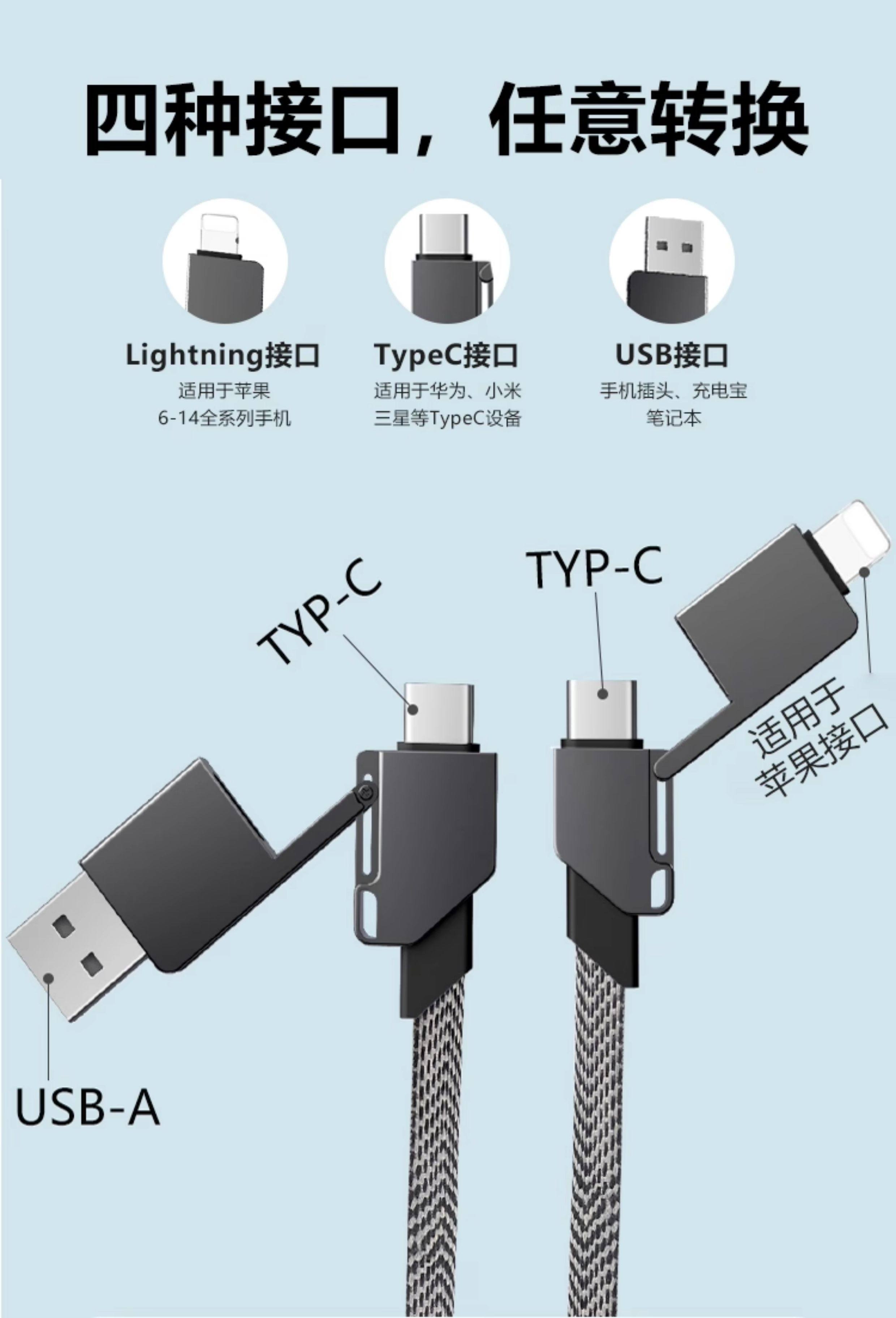 Six-In-One Keychain Data Cable 60W Fast Charging Type-C Four-In-One Magnetic Cable Suitable for Huawei Phones, Apple Pd 27W Fast Charging, Honor Android Dual Type-C Short Model Ip15 Power Bank USB
