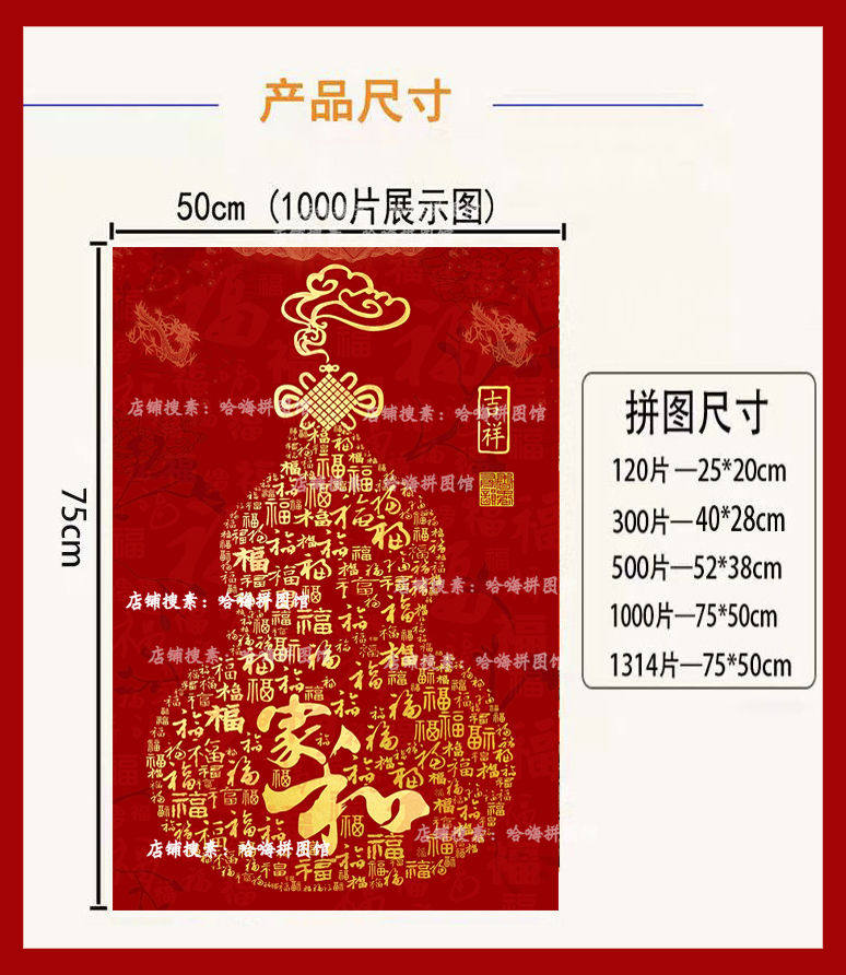 Sort by color 1,000 pieces of Fulu will be sent to you every year, poster 75*50CM,1,000 free posters for every year of Jiahe 75*50CM,Lucky deer fortune tree 1000 pieces free poster 75*50CM,Fugui Peony 1000 pieces free poster 75*50CM,Fulu full year 1000 pieces + solid wood photo frame free poster,Jiahe full year 1000 pieces + solid wood photo frame free poster,Fulu Money Tree 1000 pieces + solid wood photo frame free poster,Fugui Peony 1000 Pieces + Solid Wood Photo Frame Free Poster,500-piece puzzle comes with poster 52*38CM, please note the style,500 piece puzzle + solid wood photo frame 52*38CM Remarks style,300-piece puzzle comes with poster 40*28CM, please note the style,300 piece puzzle + solid wood photo frame 40*28CM Remarks style
