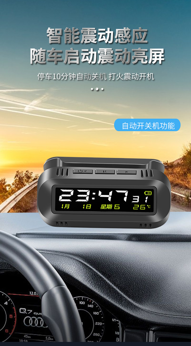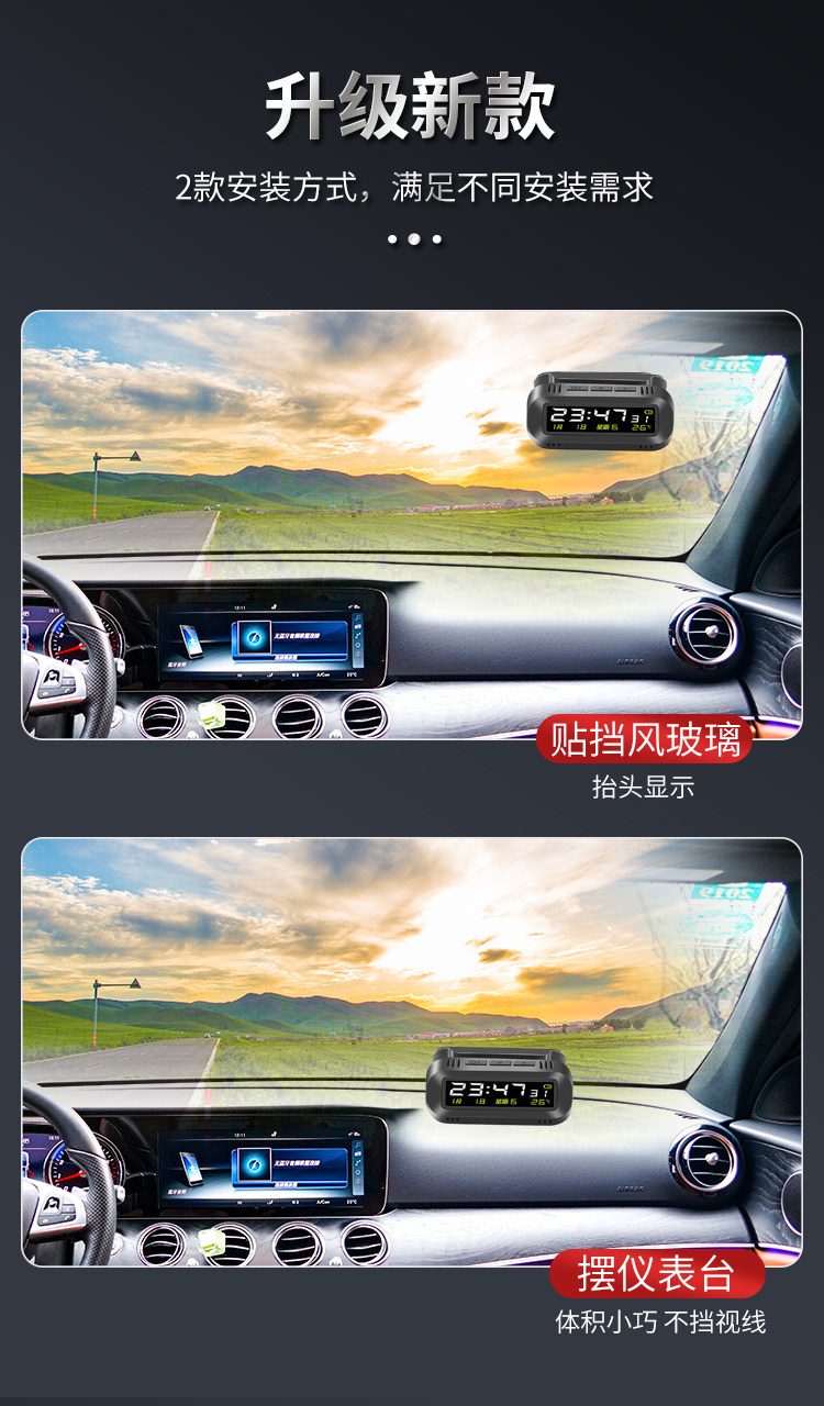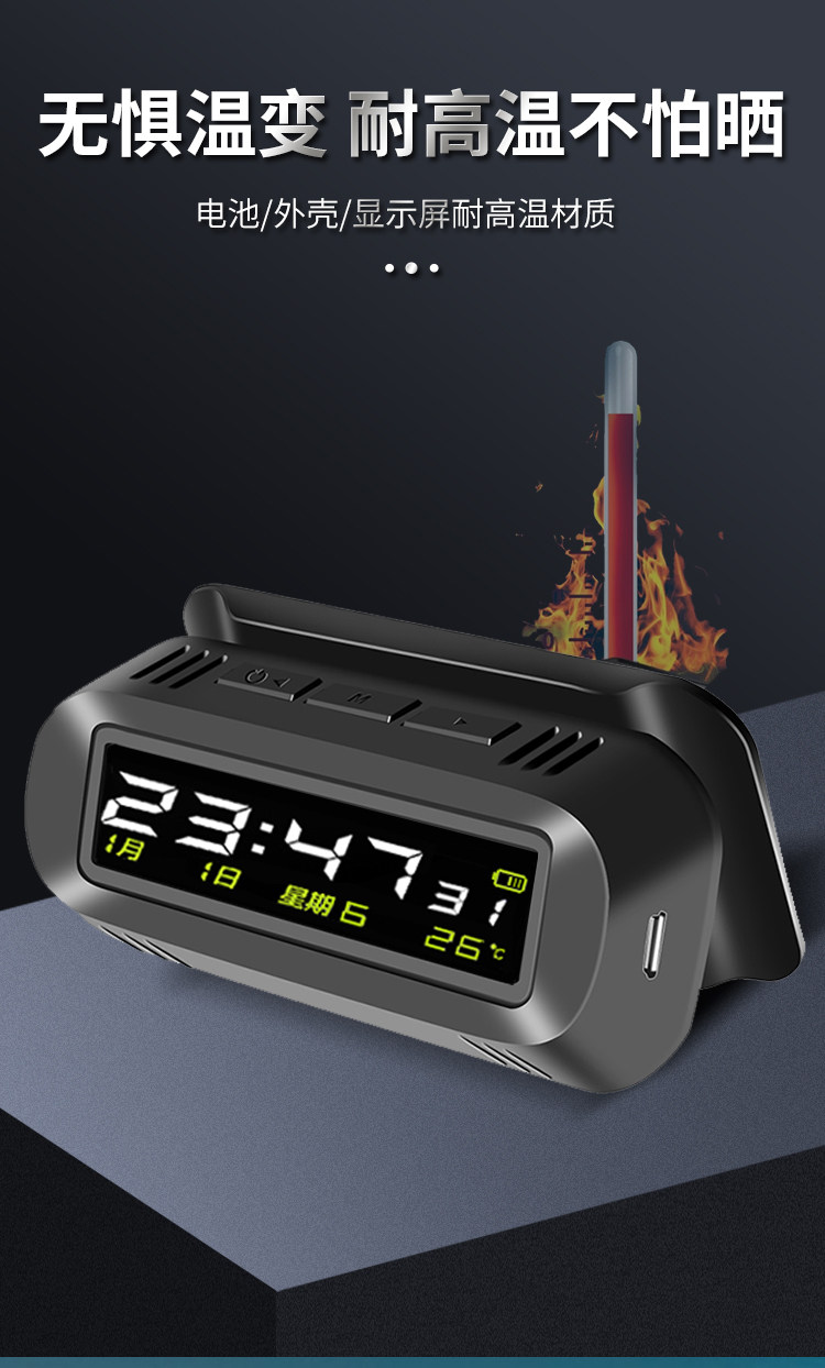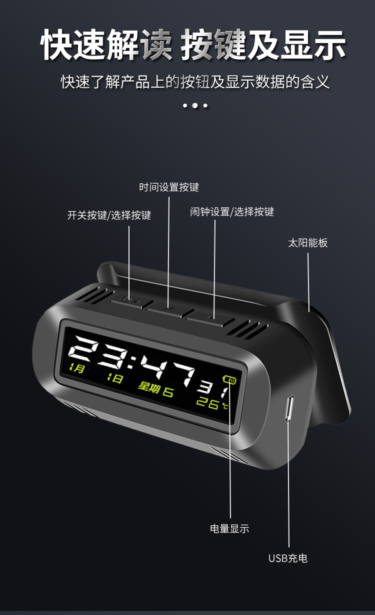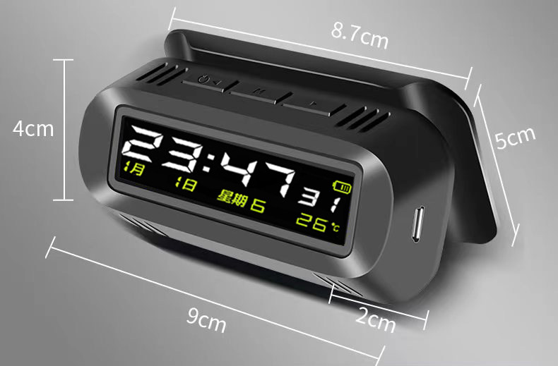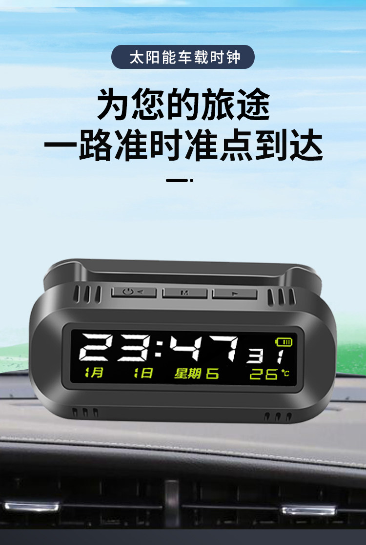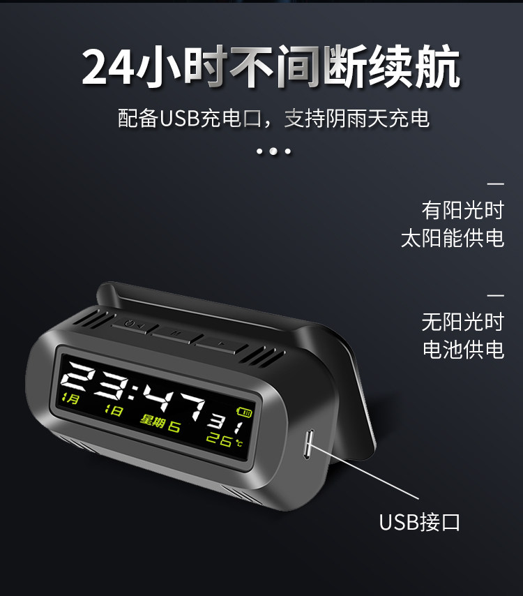Solar-Powered Car Clock Wireless Hidden Car Digital Clock 24H Temperature Alarm Clock Fatigue Driving Reminder Device