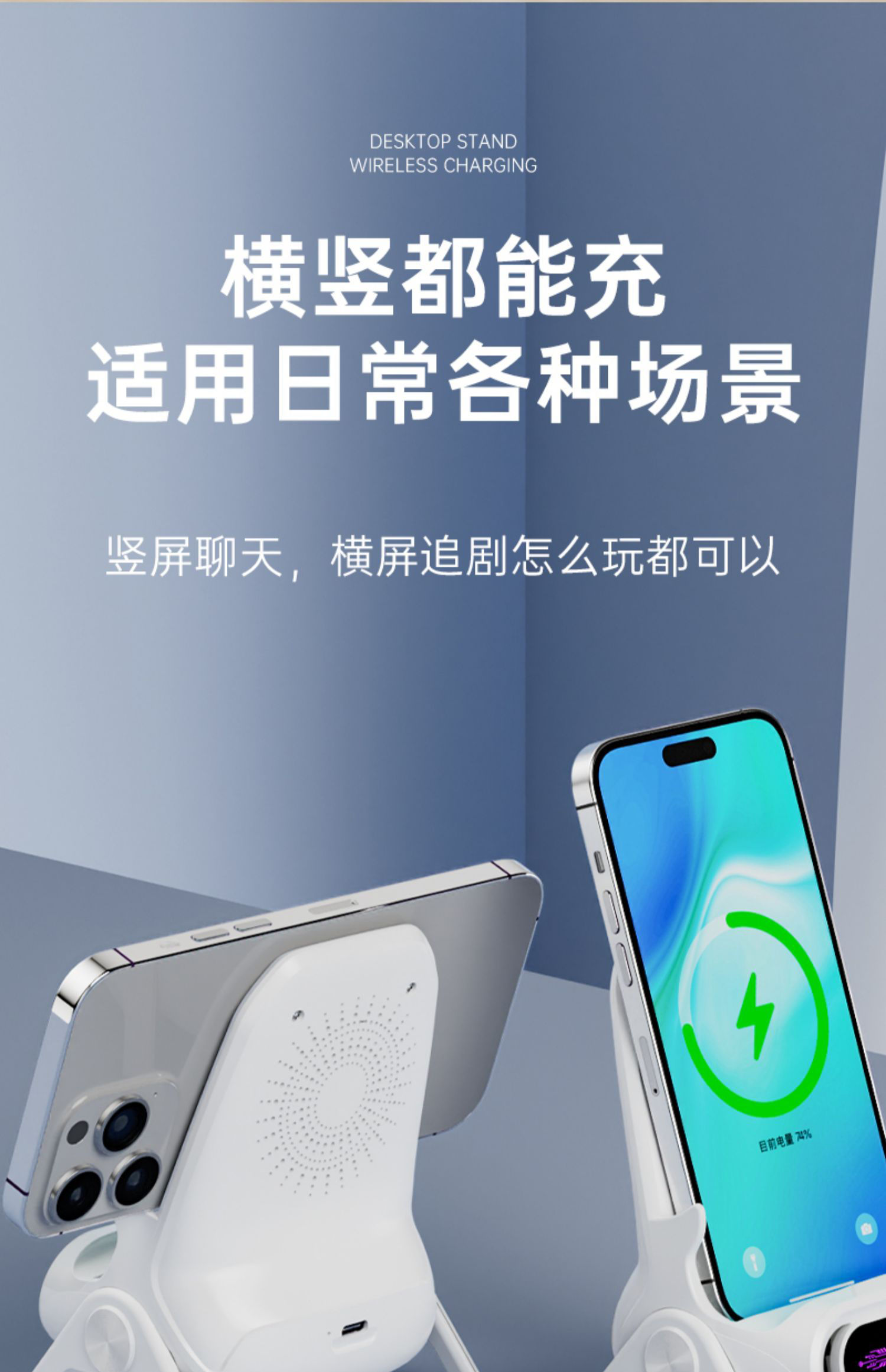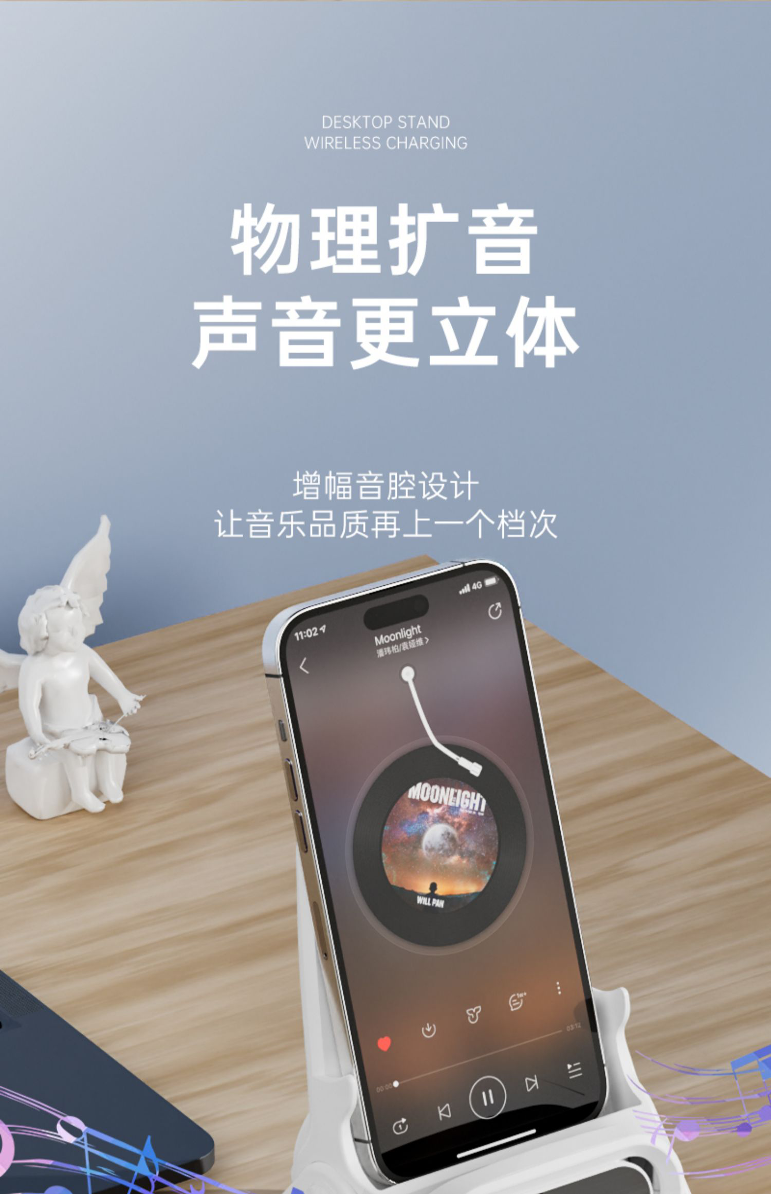 Super Fast Charging Wireless Phone Charger Compatible with Apple, Huawei, Vivo, Oppo, Xiaomi 14/13 Pro Max, Android, Universal Desktop Stand with Magnetic Suction and iPhone 15 Sound Amplification Base