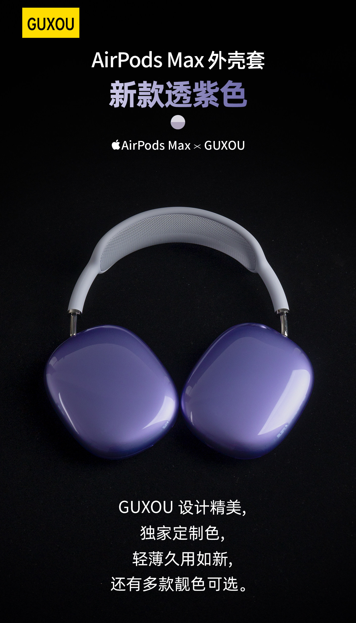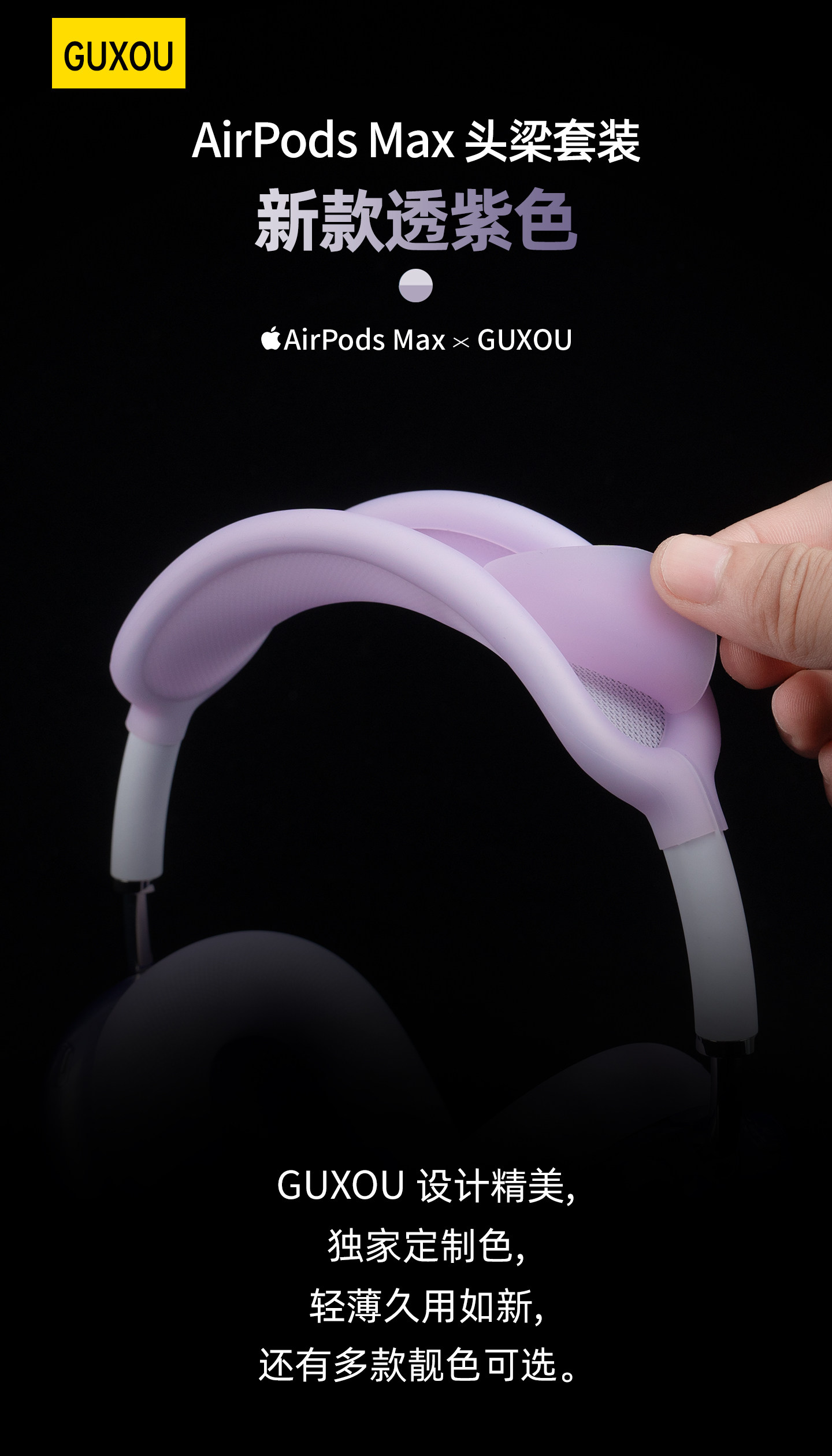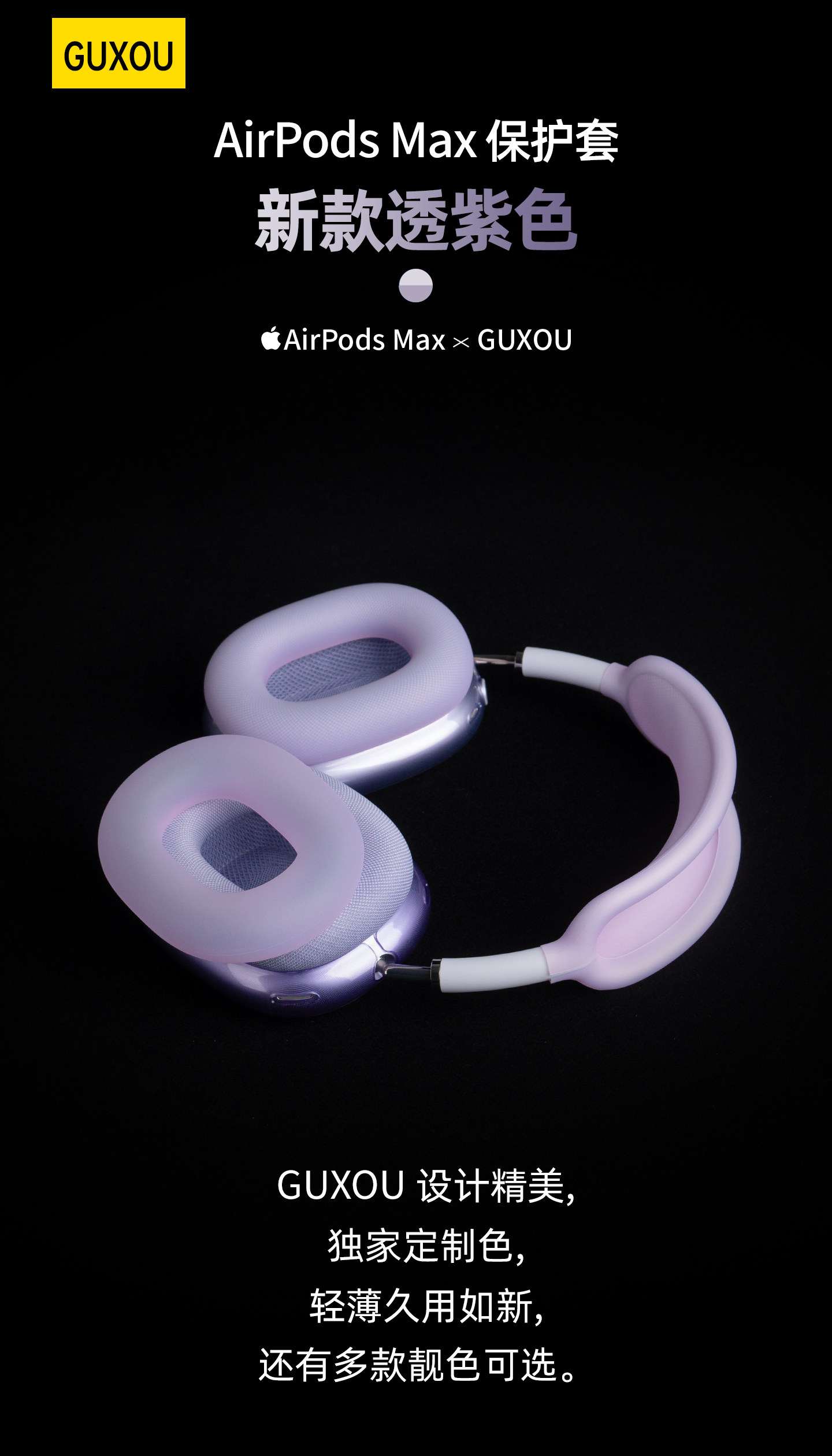 [Guxou New Product]Suitable for AirPods Max Ice Transparent Headband Protective Cover 2 Purple Starlight Midnight Orange Full Silicone Apm Headband Apple Bluetooth Over-Ear Headphones Max Decorative Accessories