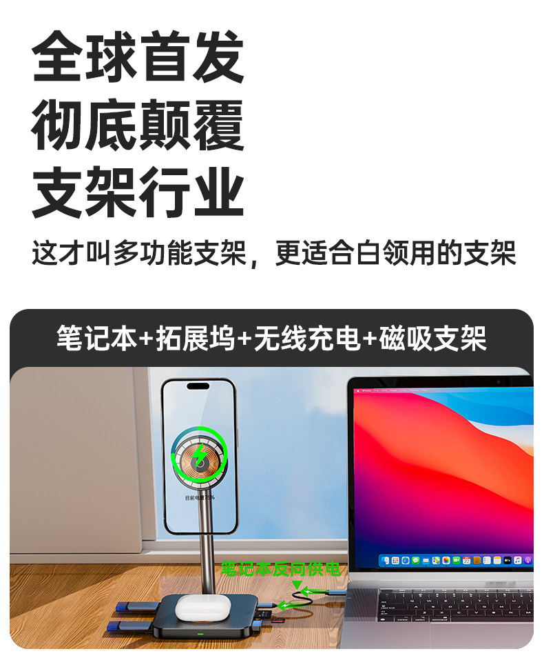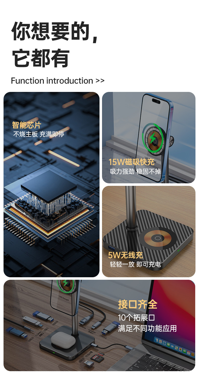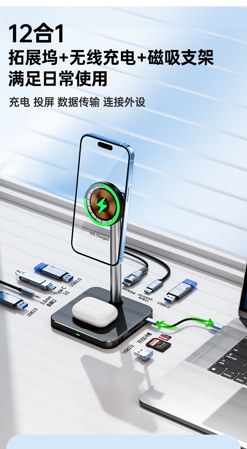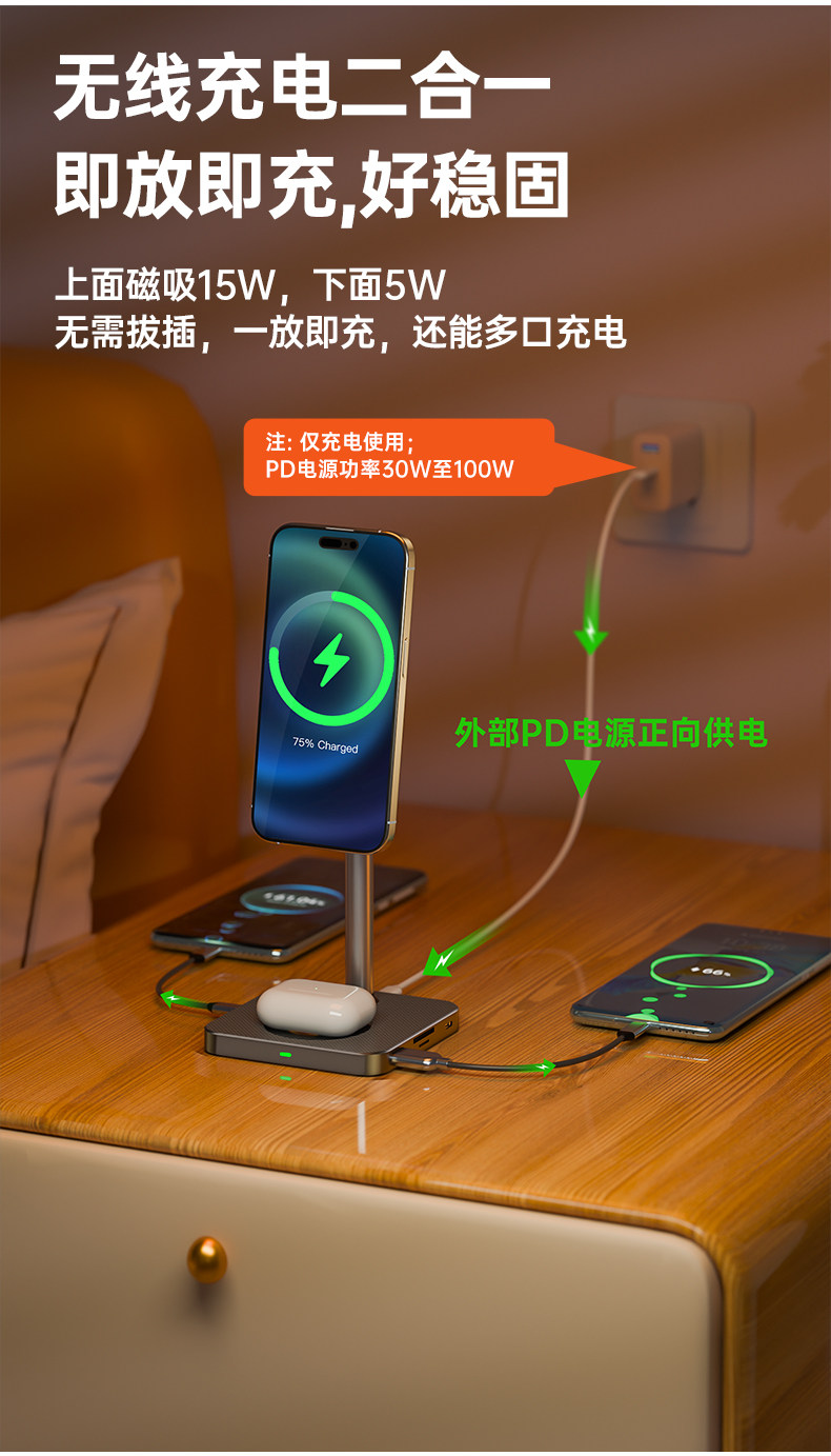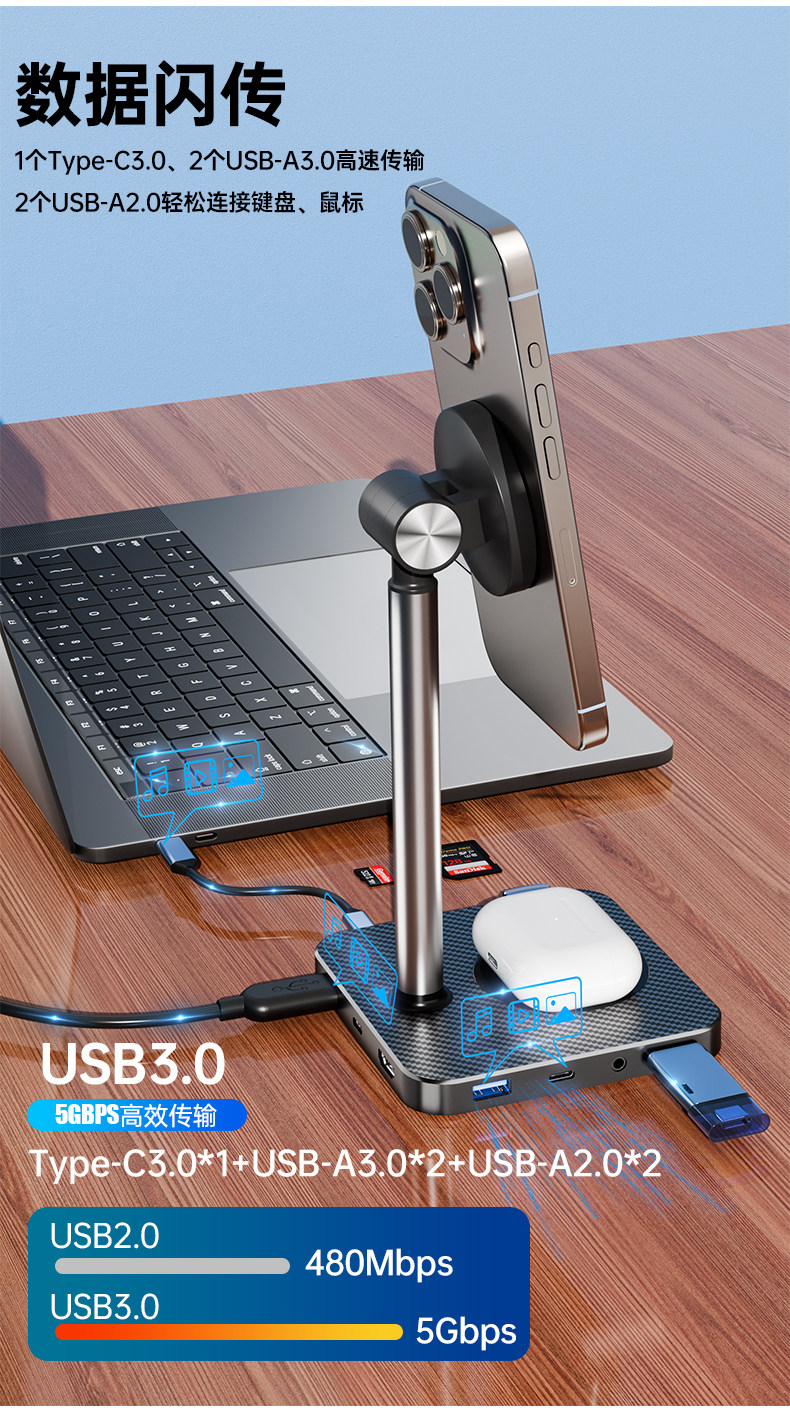 Android Apple magnetic wireless charging docking station USB docking station hub multifunctional typec mobile phone holder