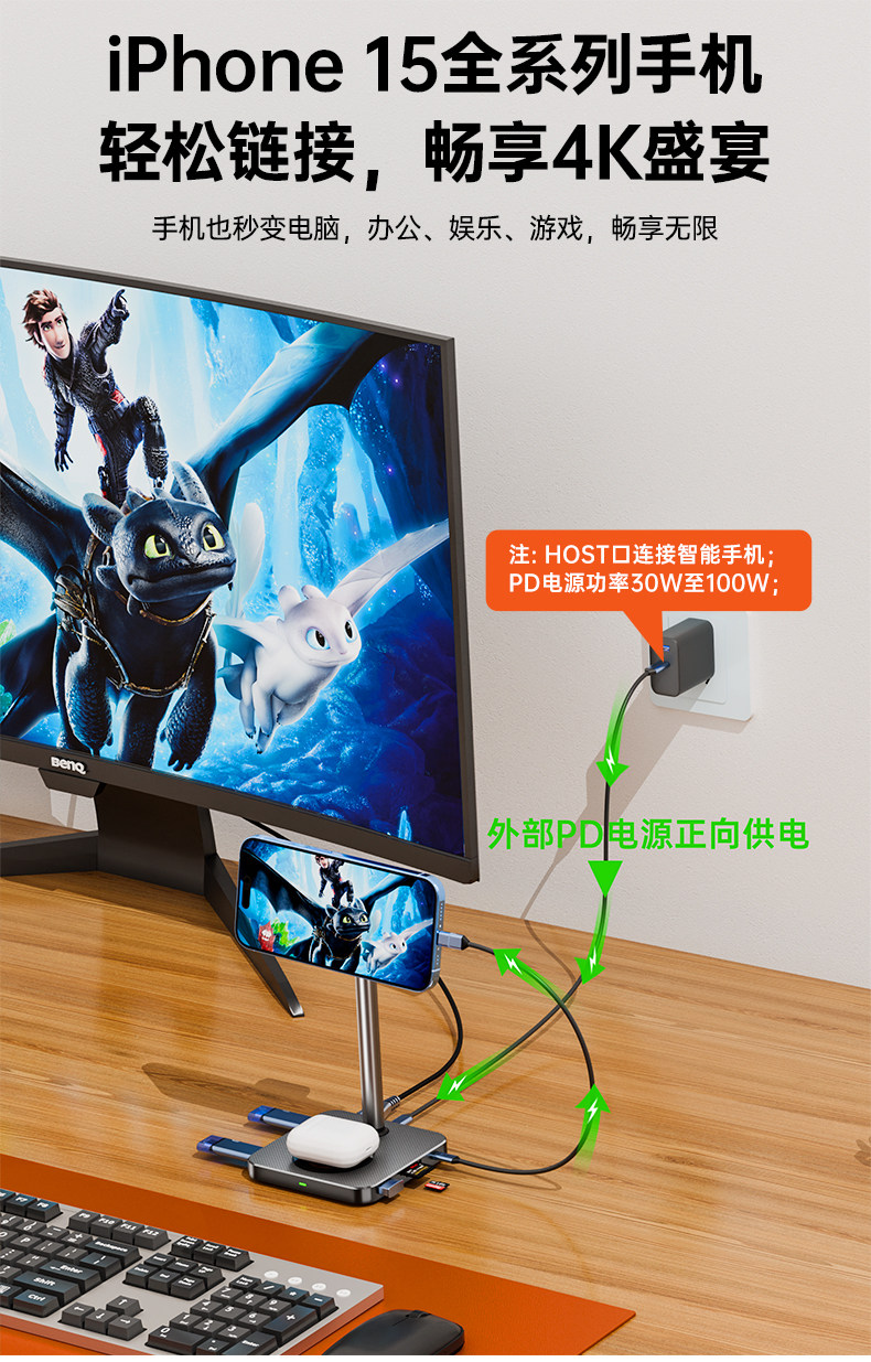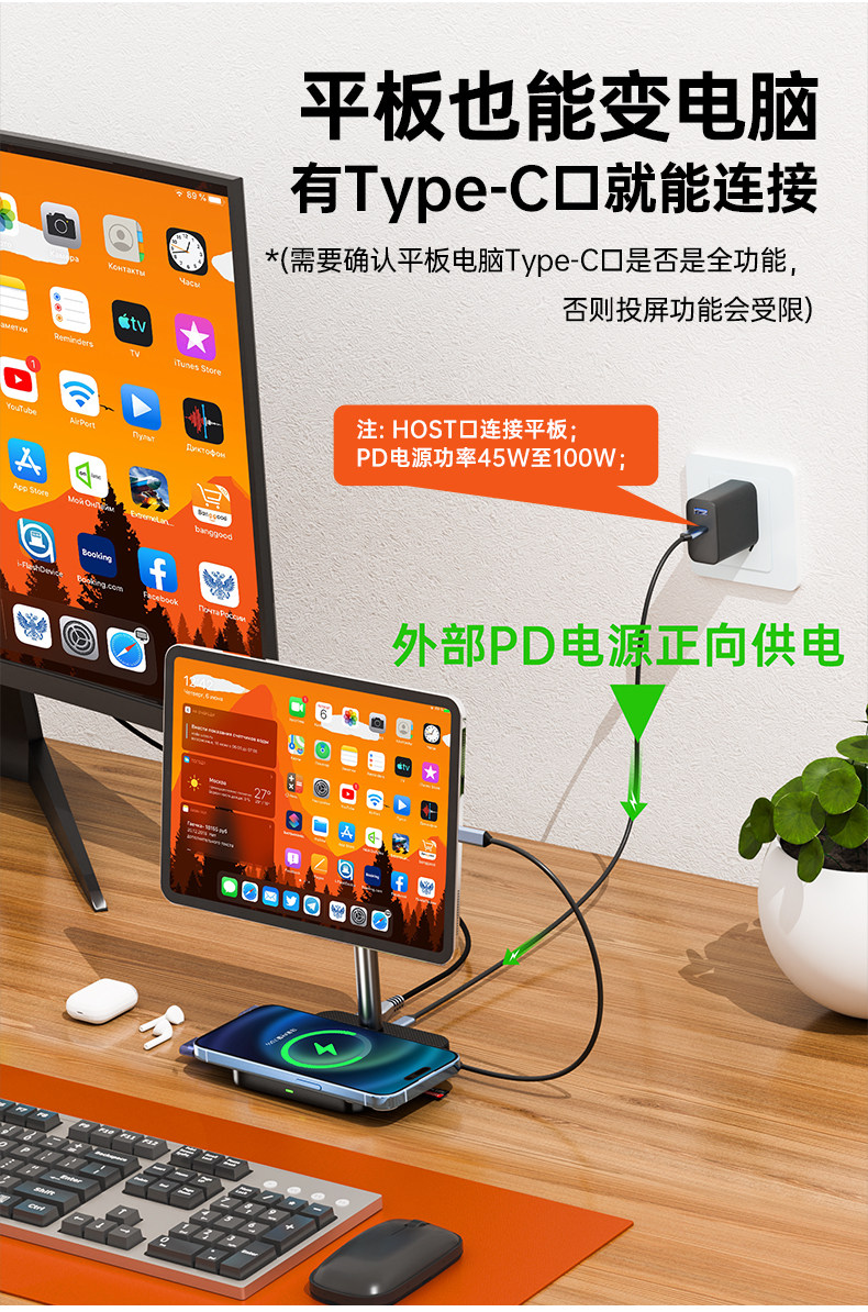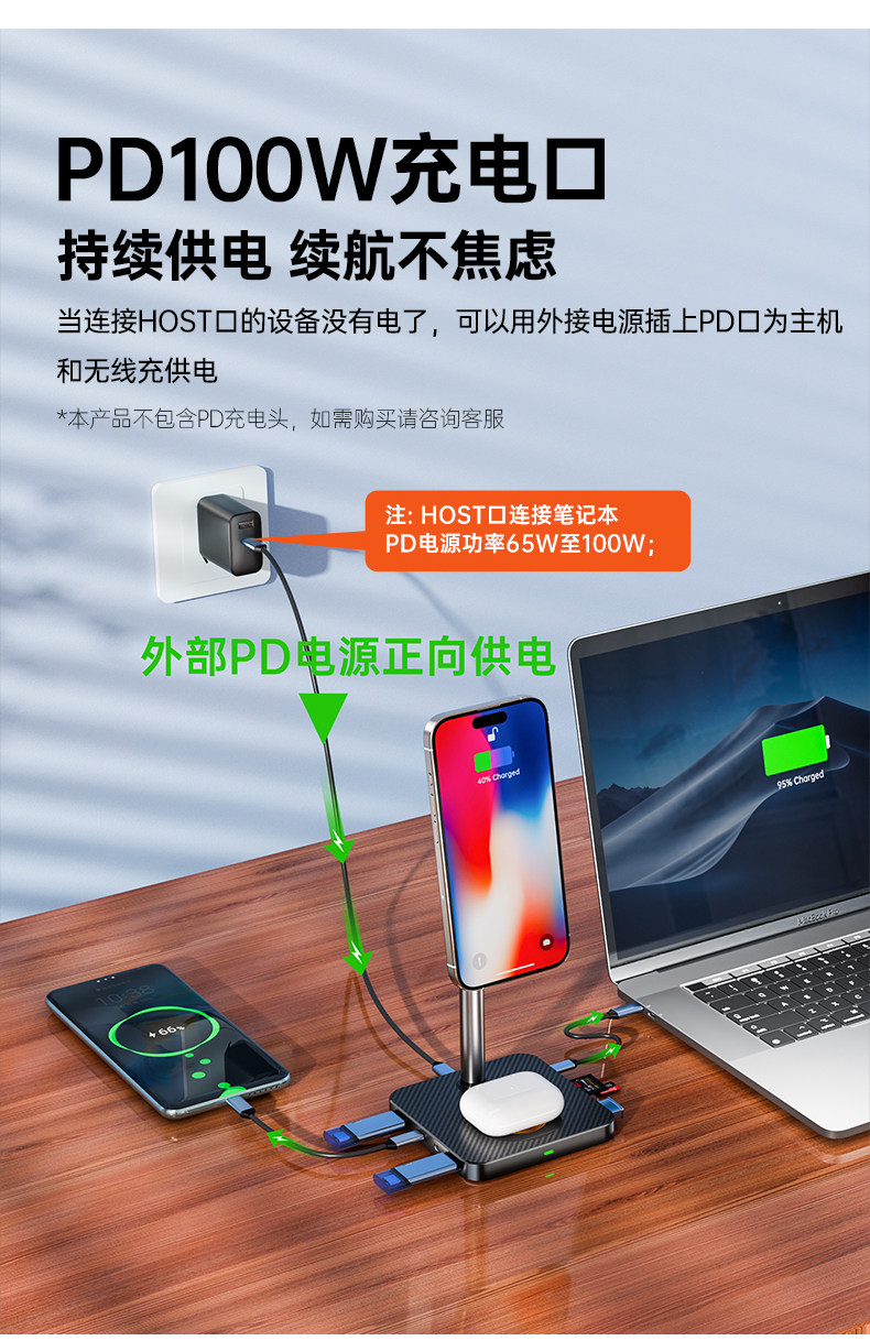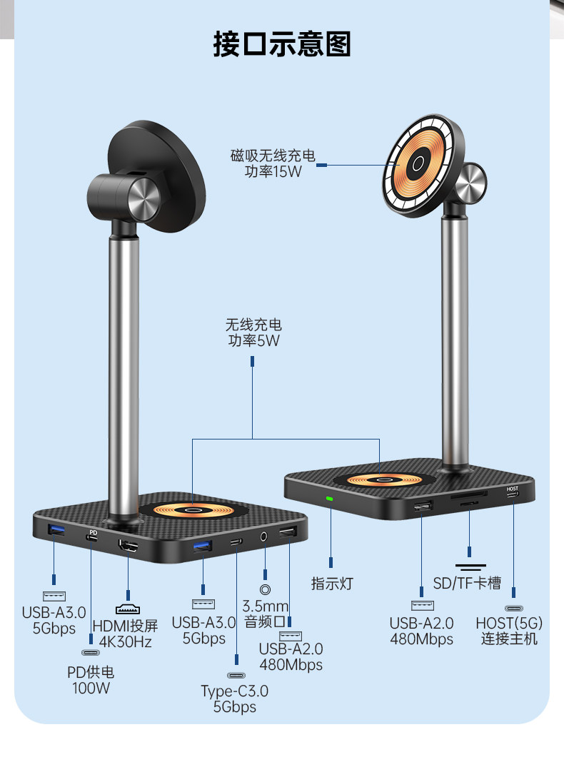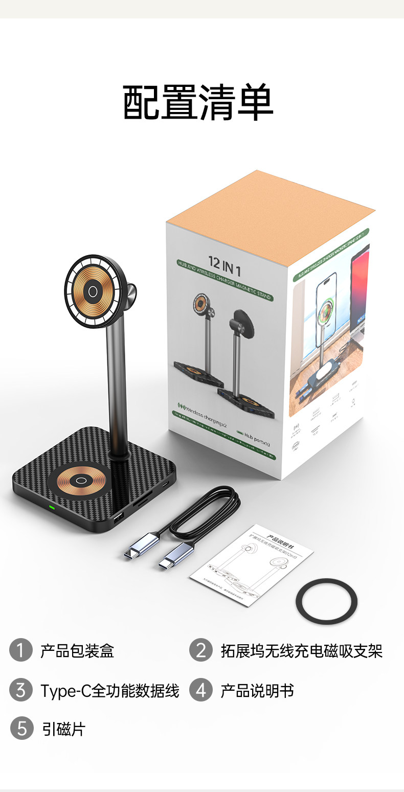Android Apple magnetic wireless charging docking station USB docking station hub multifunctional typec mobile phone holder
