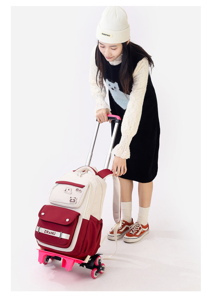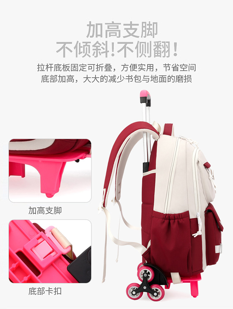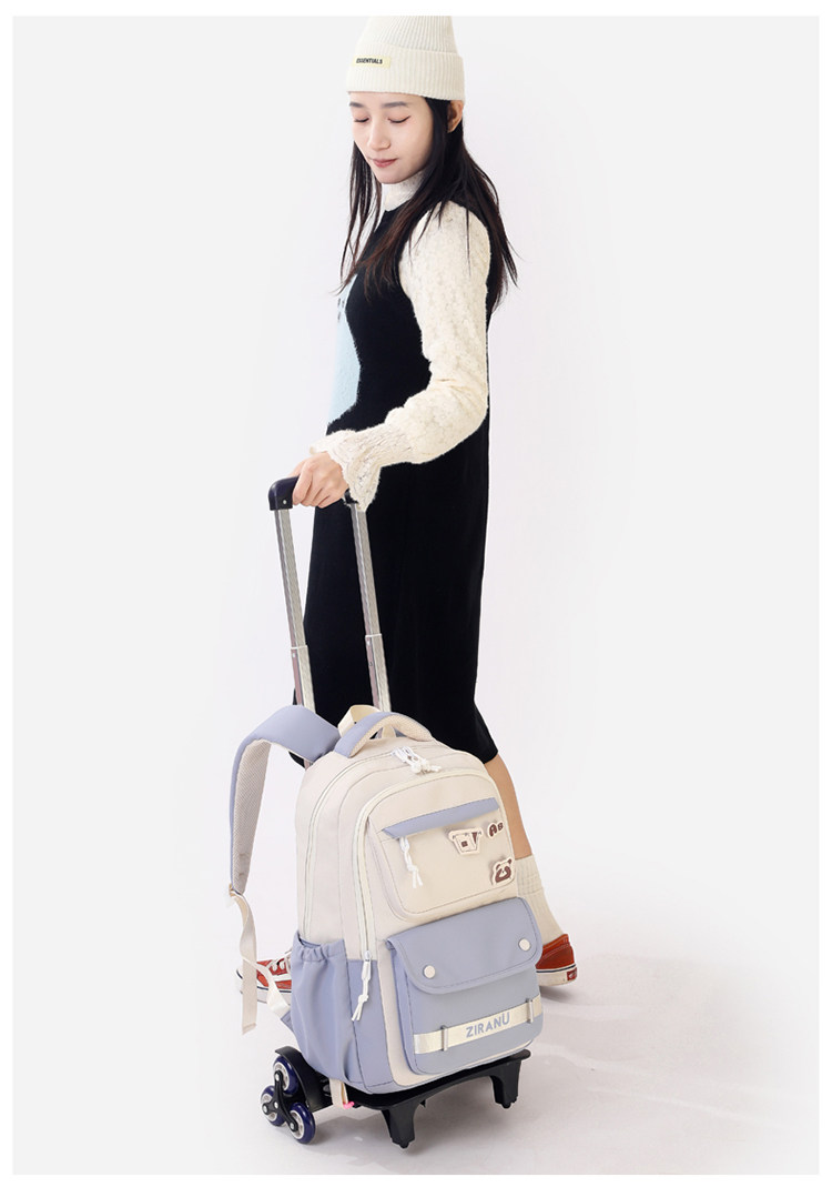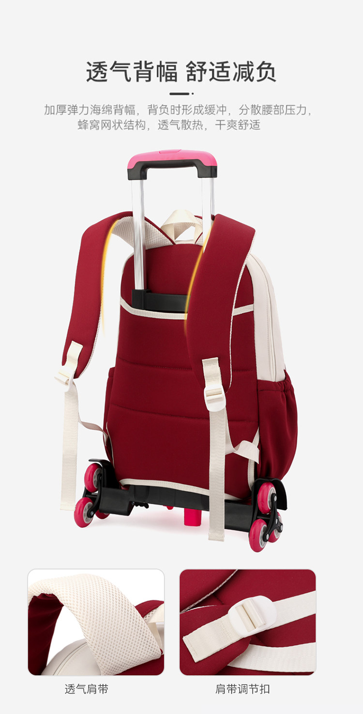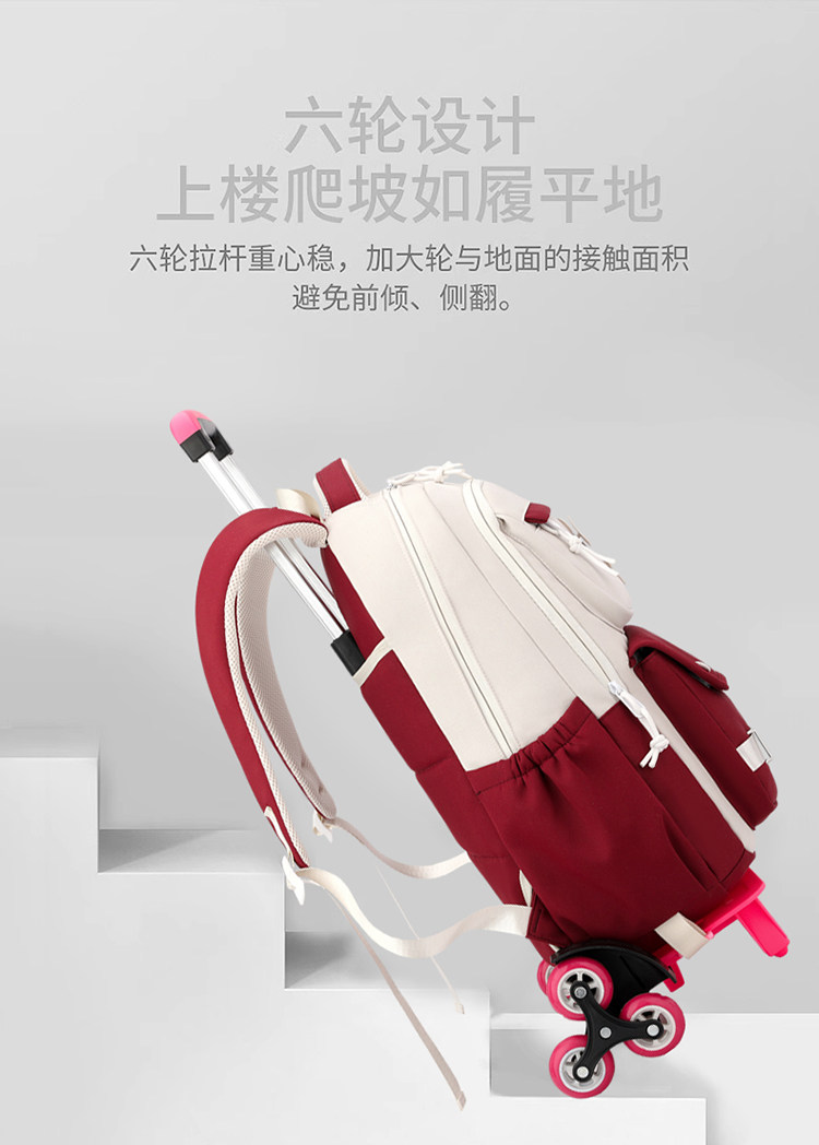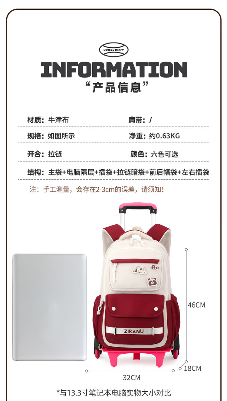 2024 New Model Trolley School Bag for Elementary School Students, Girls in Grades Three to Six, Boys, Stair-Climbing, Six-Wheel, Waterproof, Large Capacity