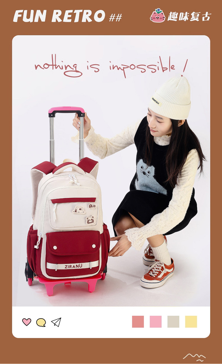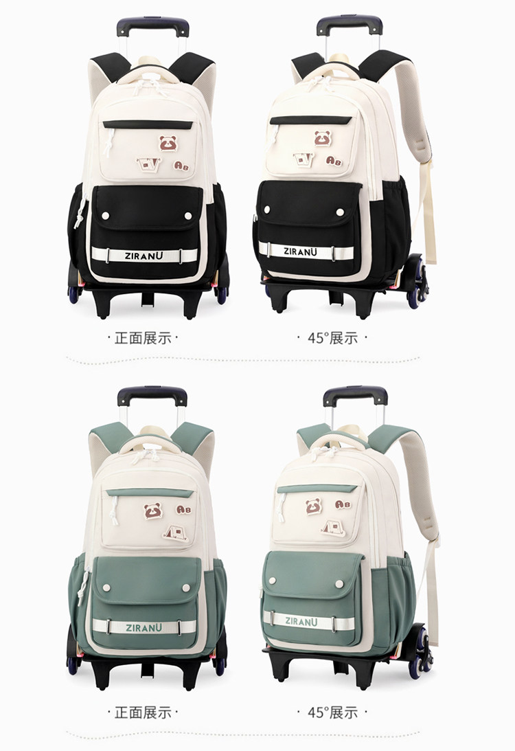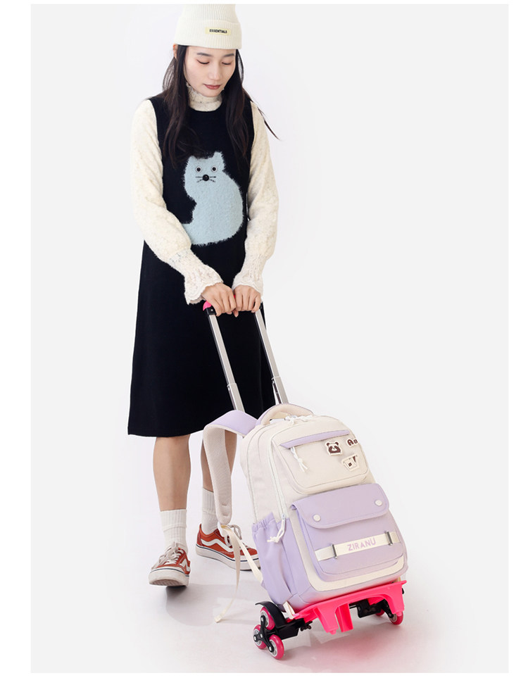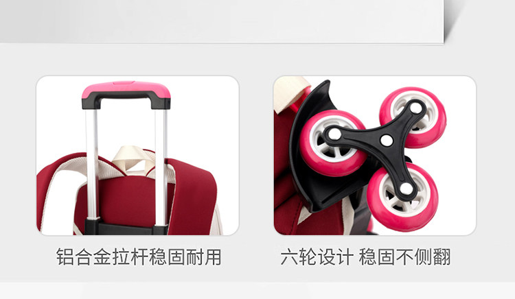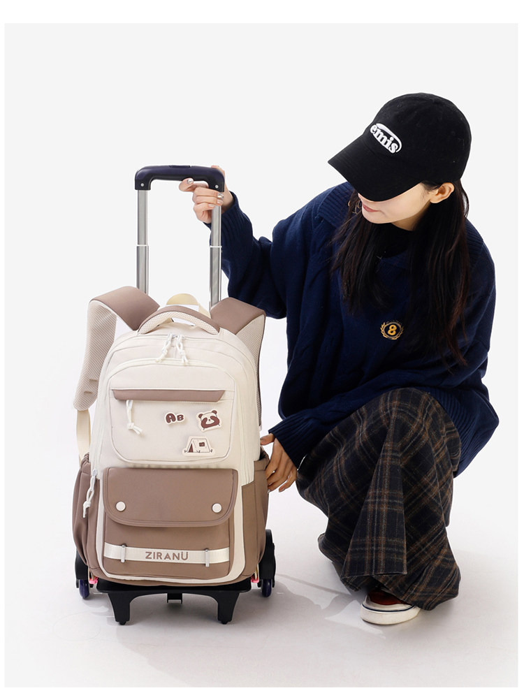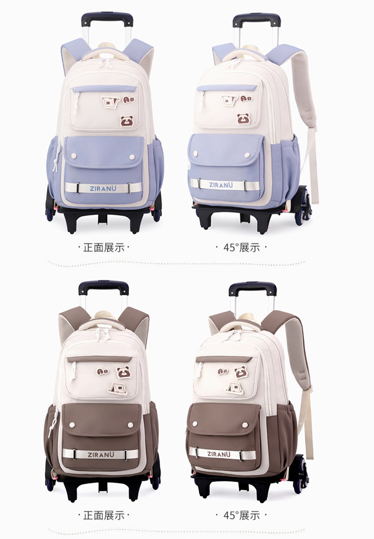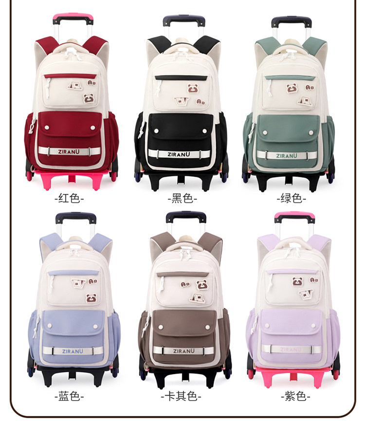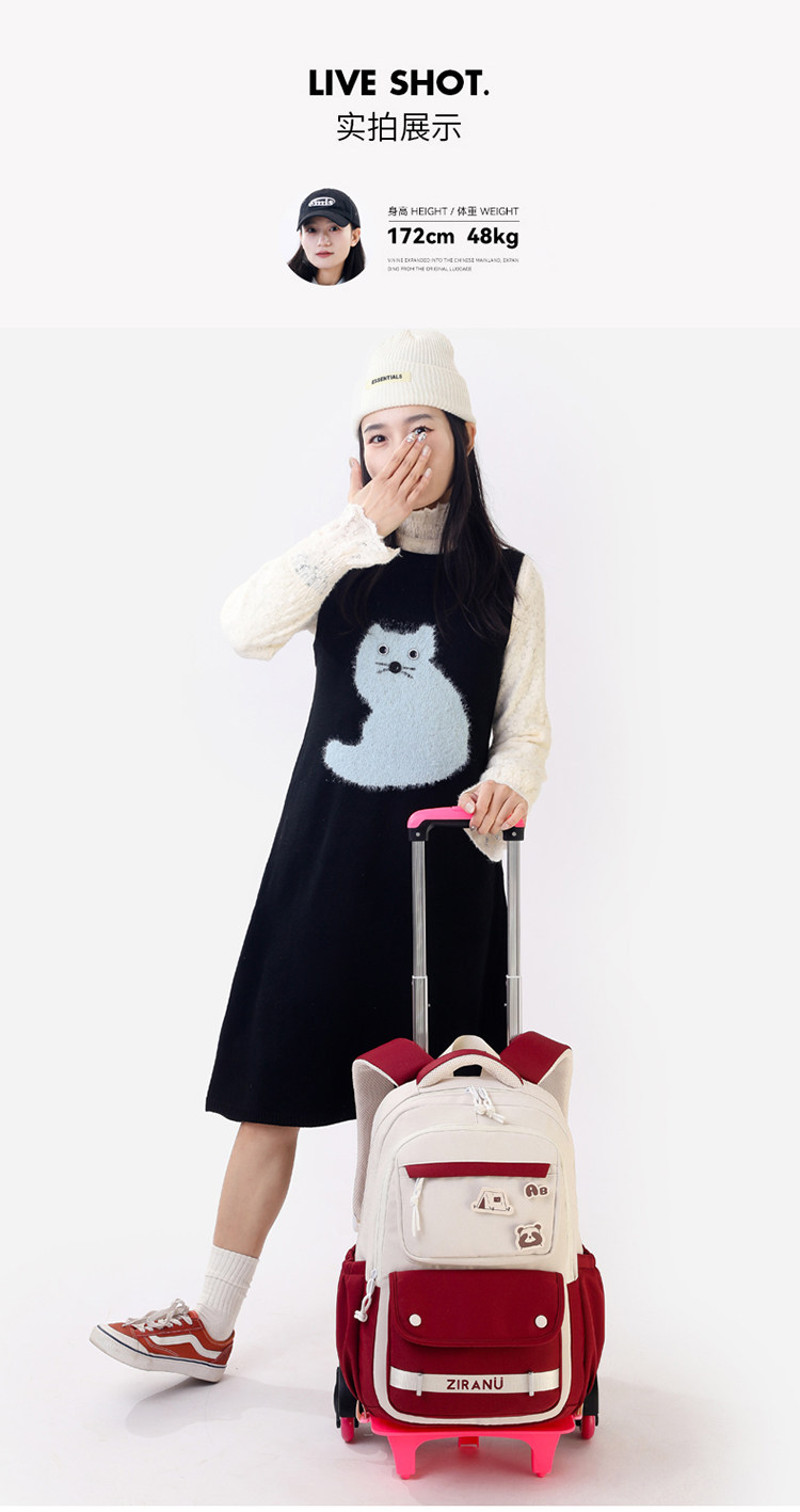 2024 New Model Trolley School Bag for Elementary School Students, Girls in Grades Three to Six, Boys, Stair-Climbing, Six-Wheel, Waterproof, Large Capacity