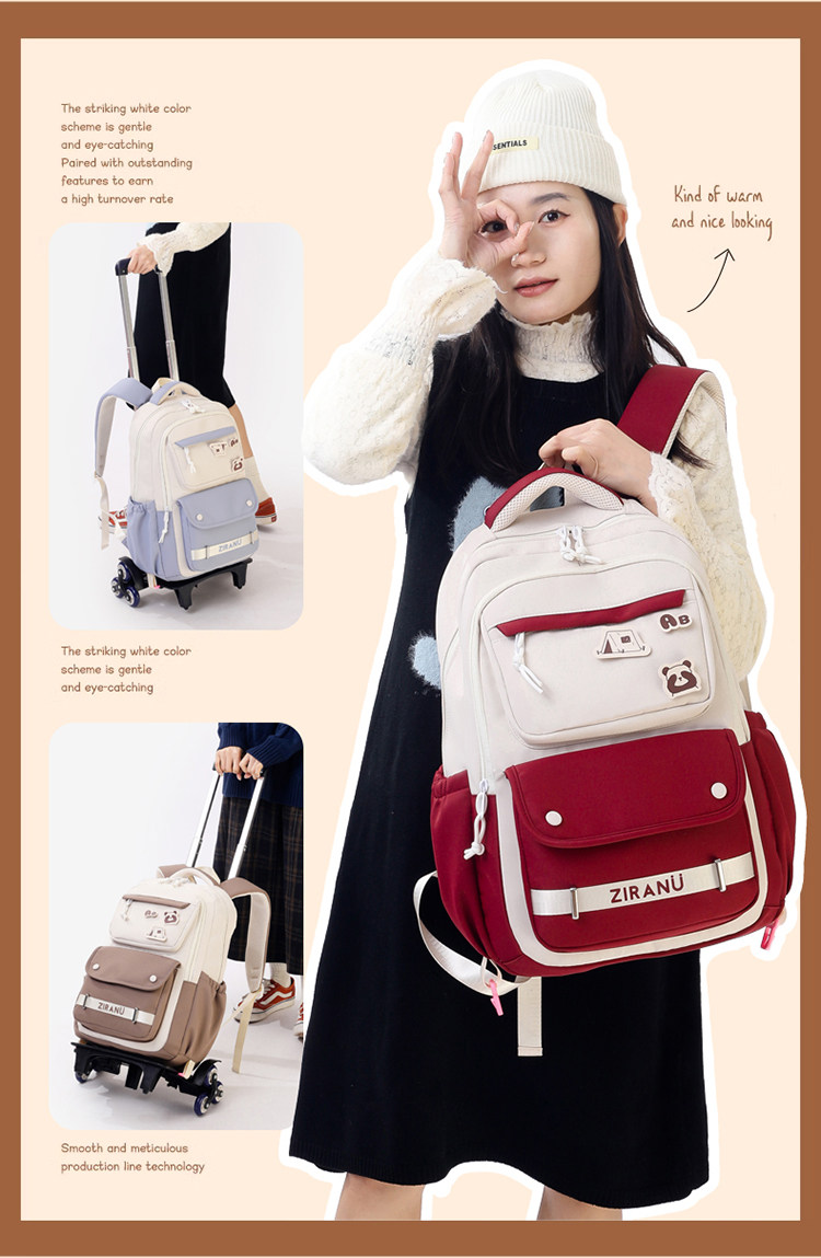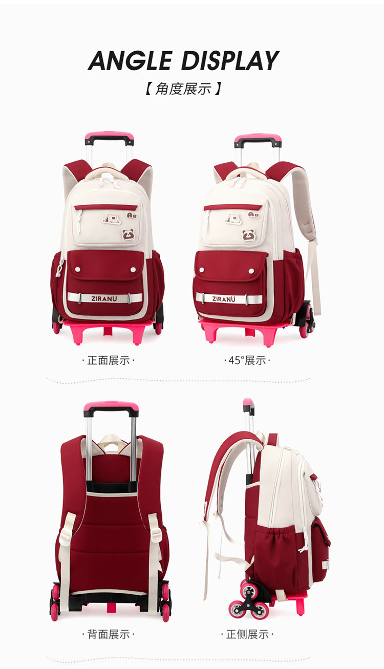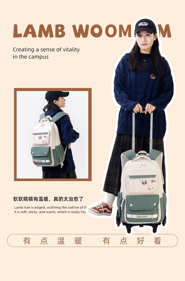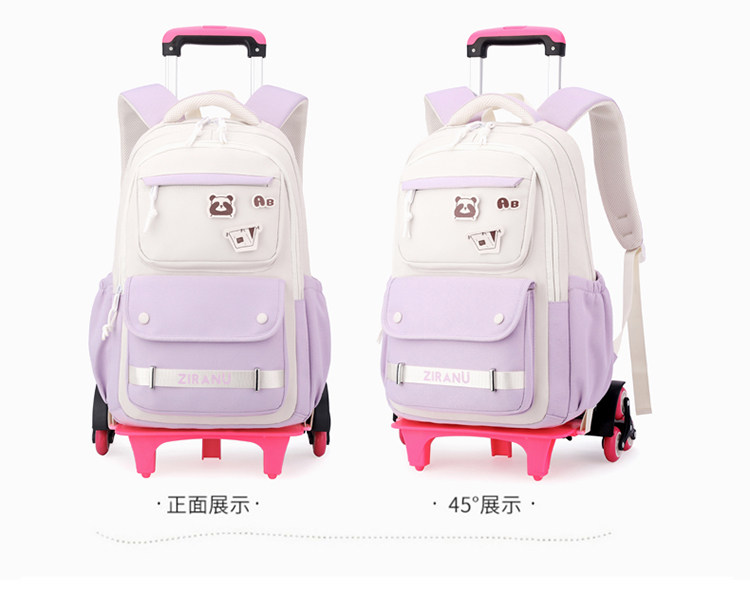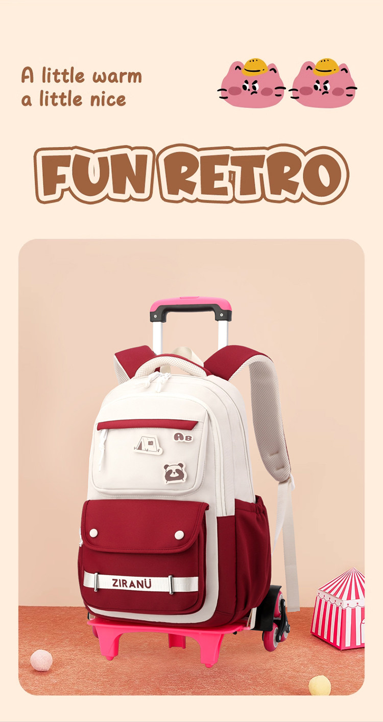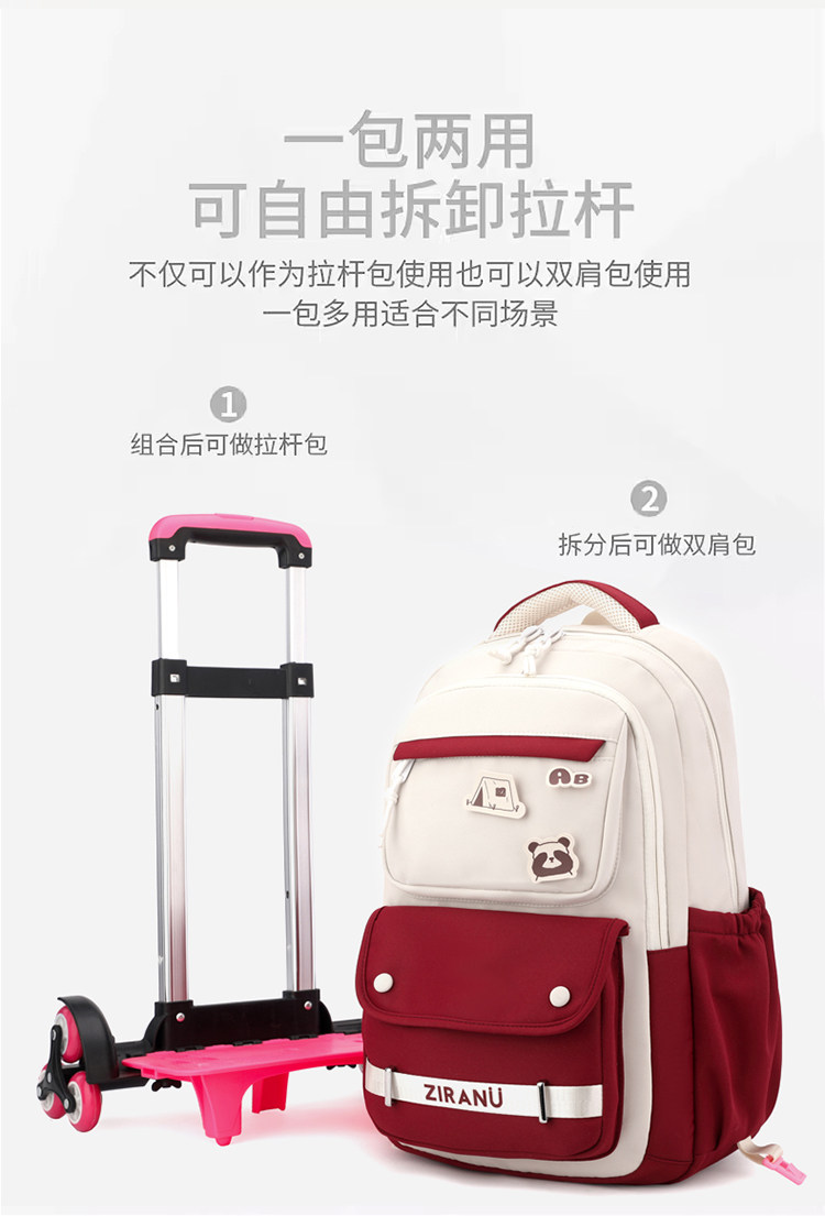 2024 New Model Trolley School Bag for Elementary School Students, Girls in Grades Three to Six, Boys, Stair-Climbing, Six-Wheel, Waterproof, Large Capacity