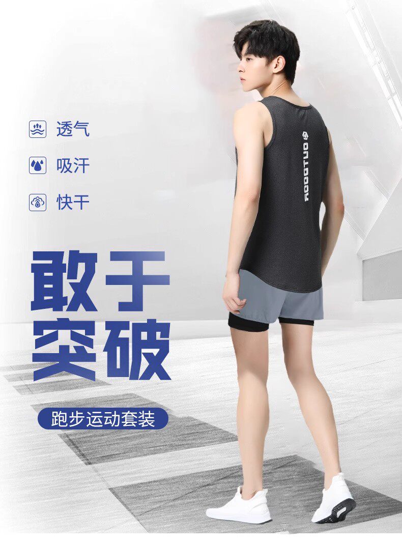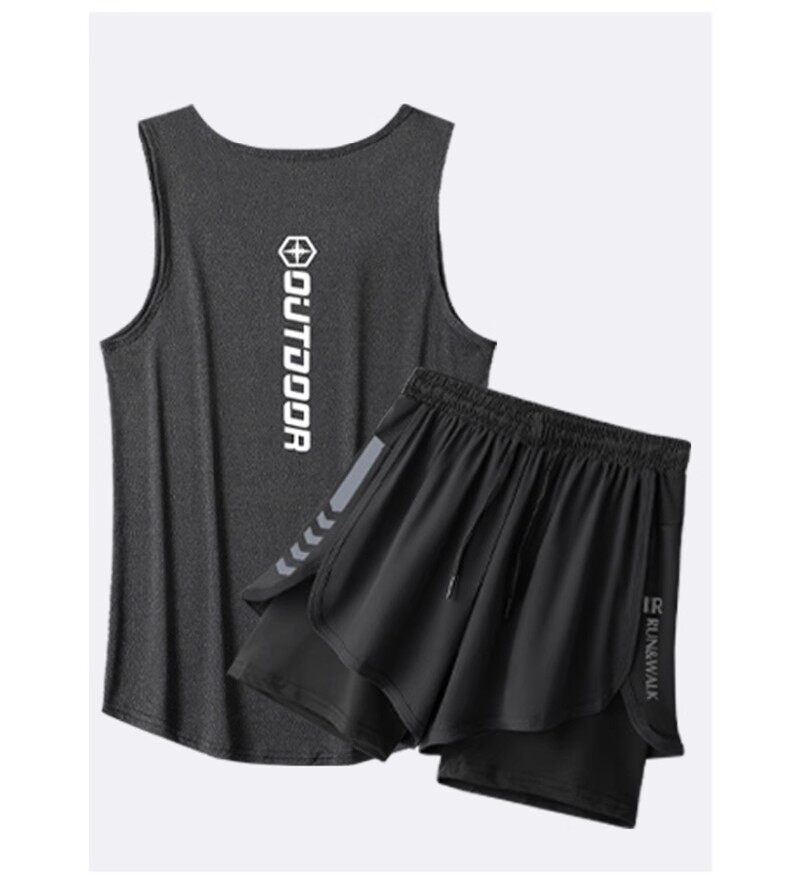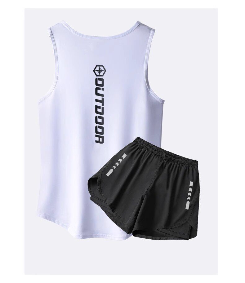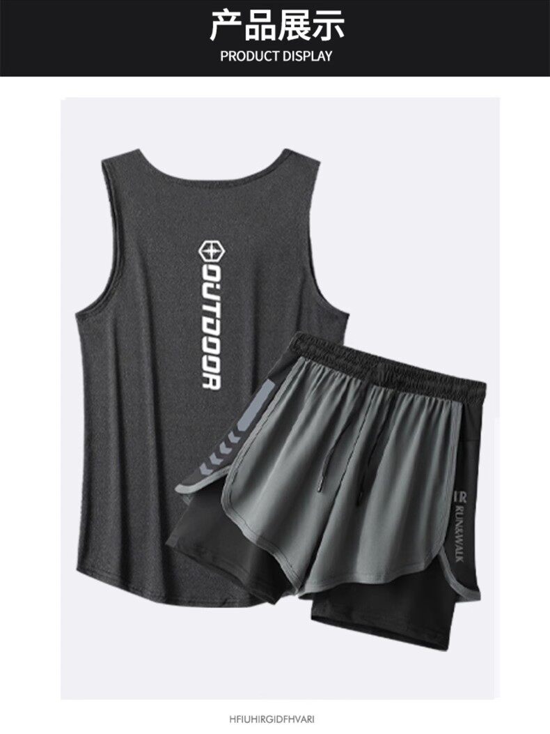 Sports Vest Men's Fitness Suit Quick-Drying Sleeveless T-Shirt Ice Silk Shorts Running Short-Sleeved Summer Basketball Training Clothes