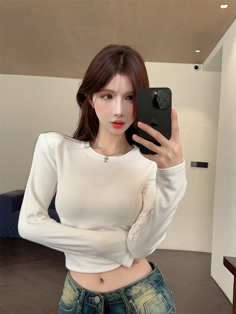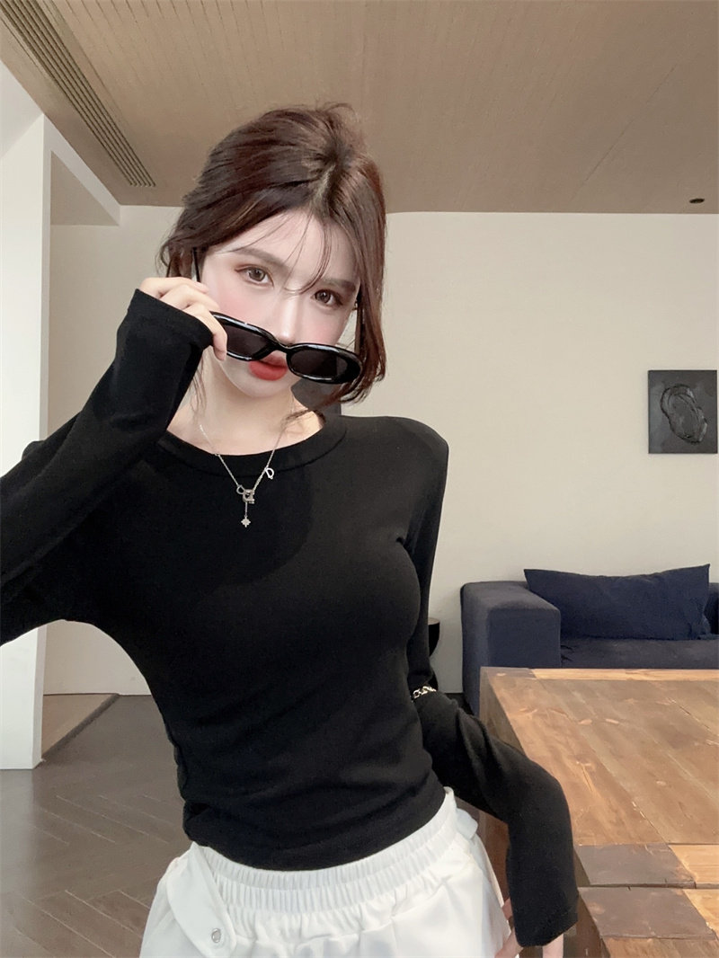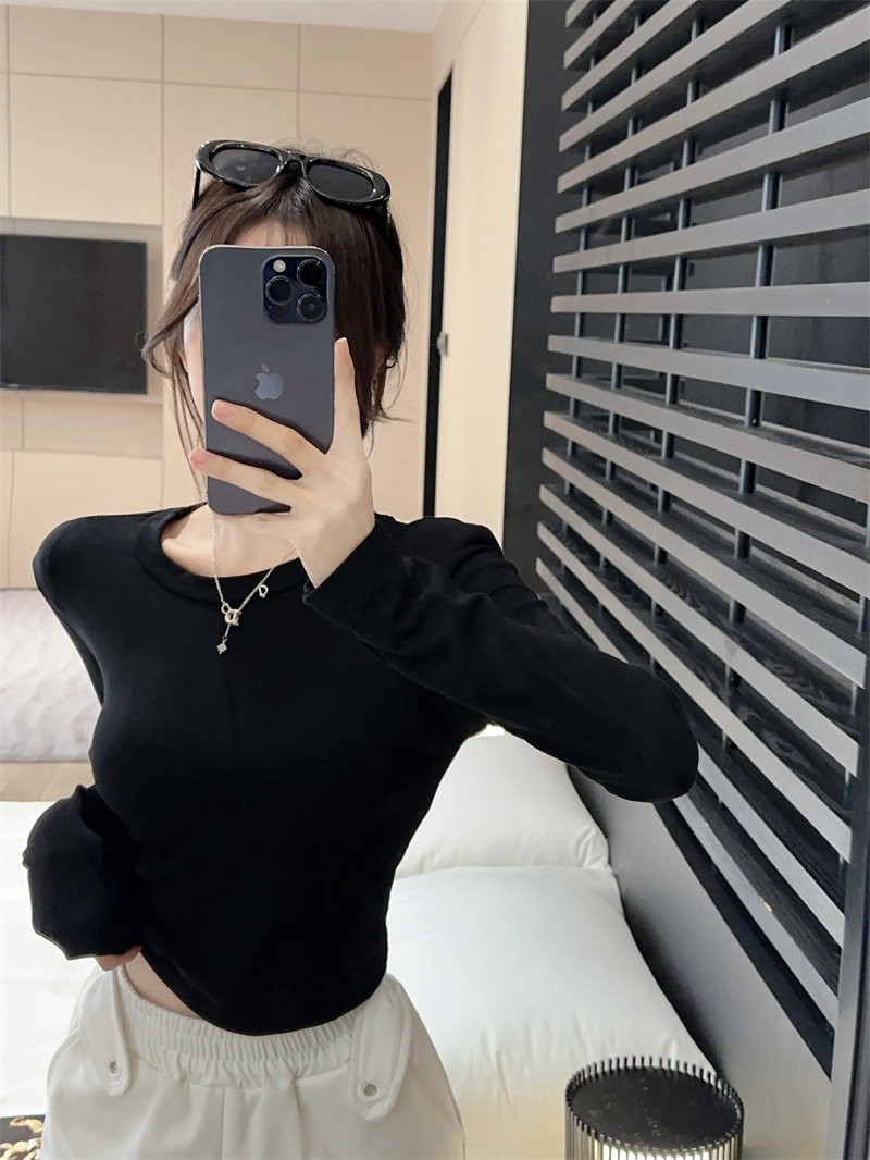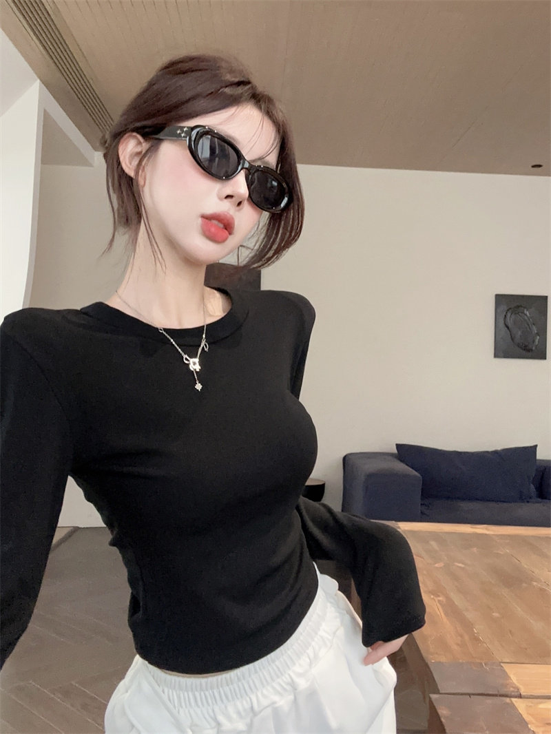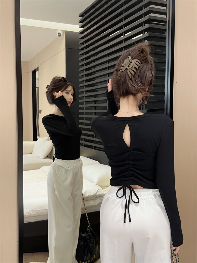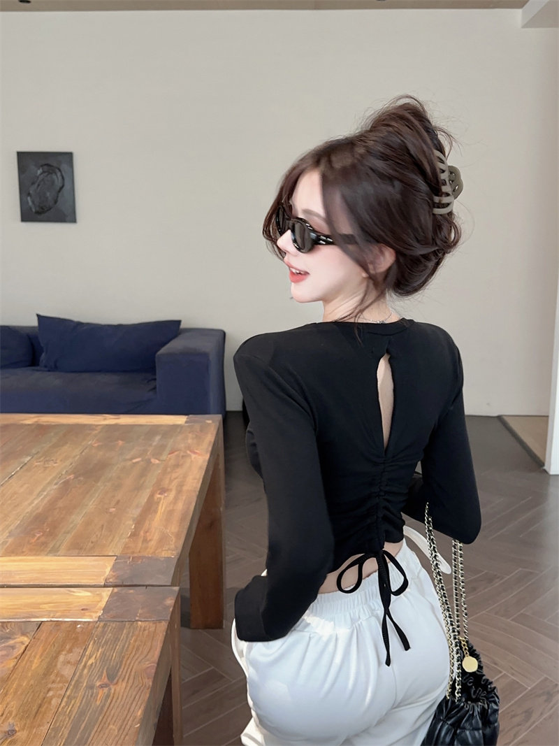 Spicy Girl Style Hollow-Out Backless Black Base Shirt for Women, New Autumn Korean Version Slim Fit Sexy Long-Sleeve T-Shirt for Women