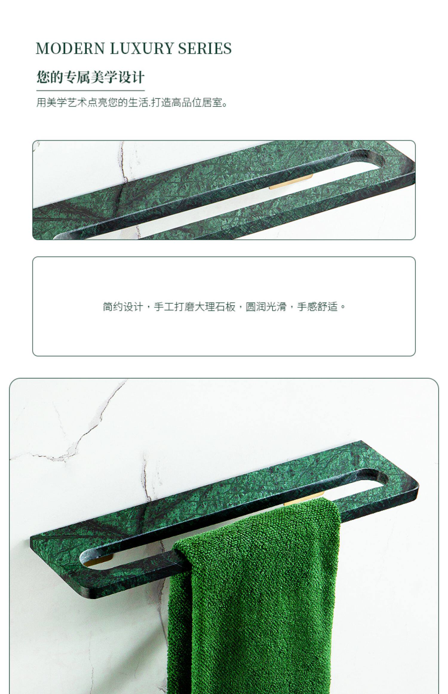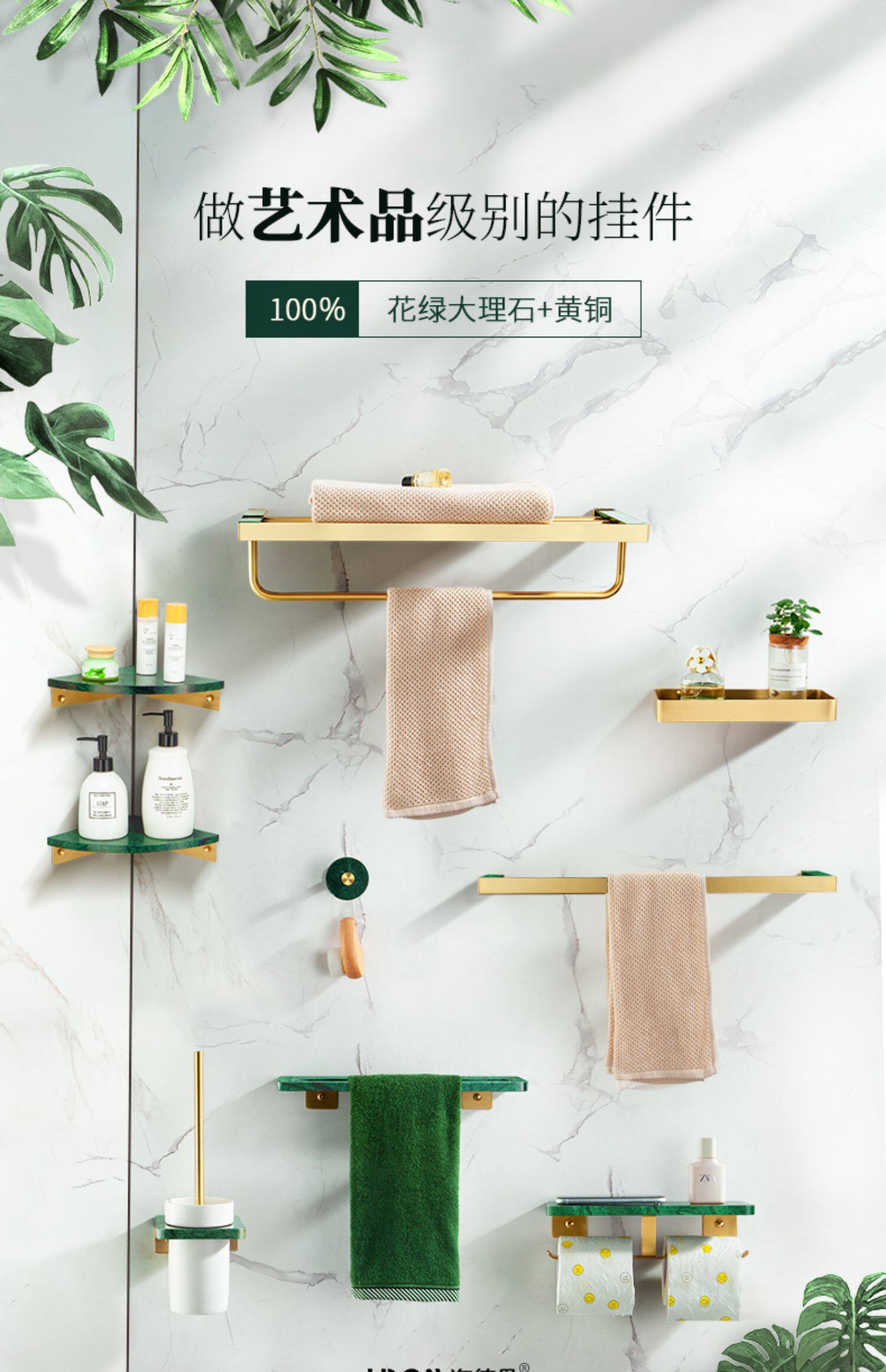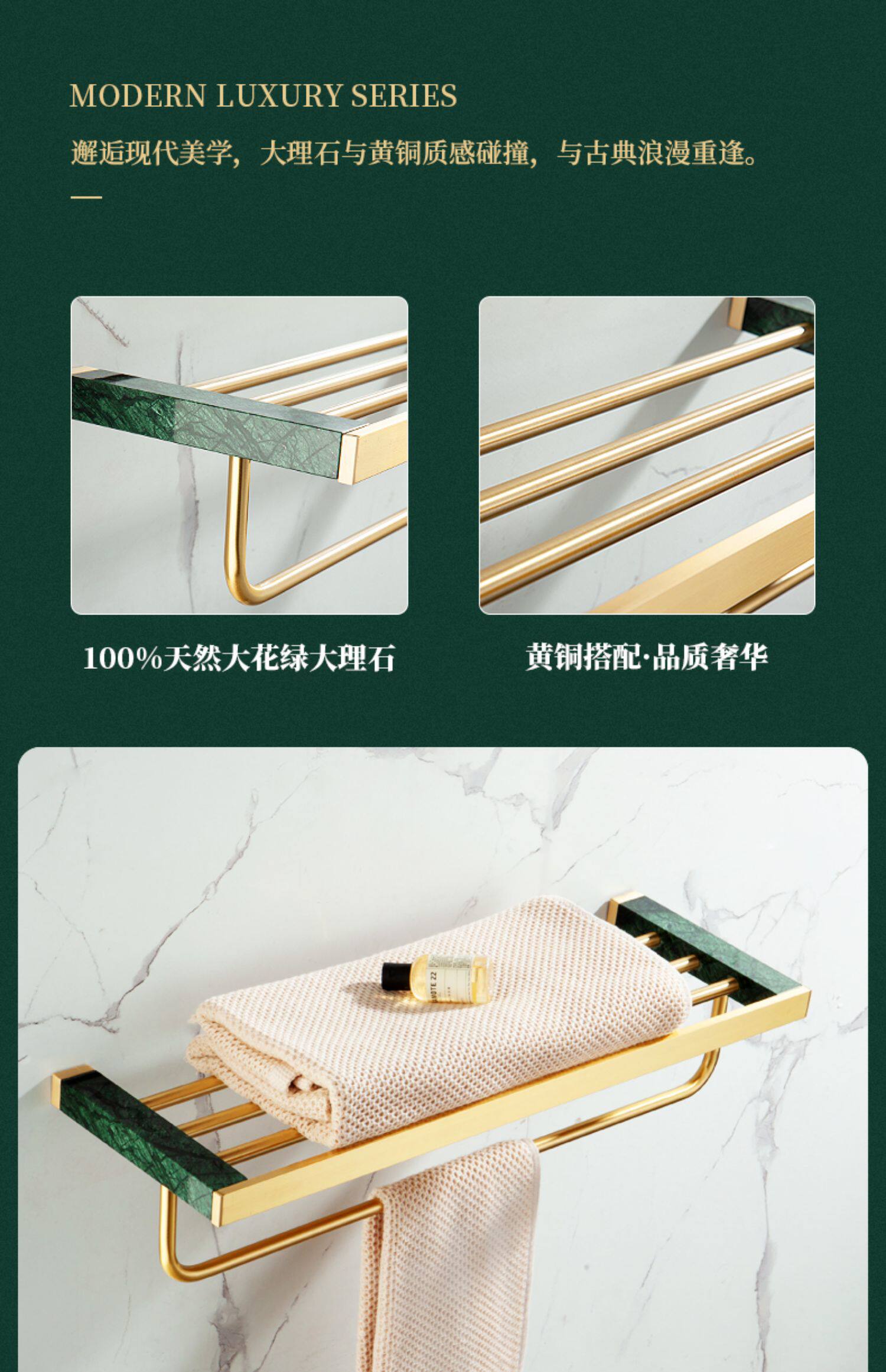 Italian Aisino Light Luxury Marble Towel Rack Bathroom Storage Rack Copper Bathroom Accessories Set for Shower