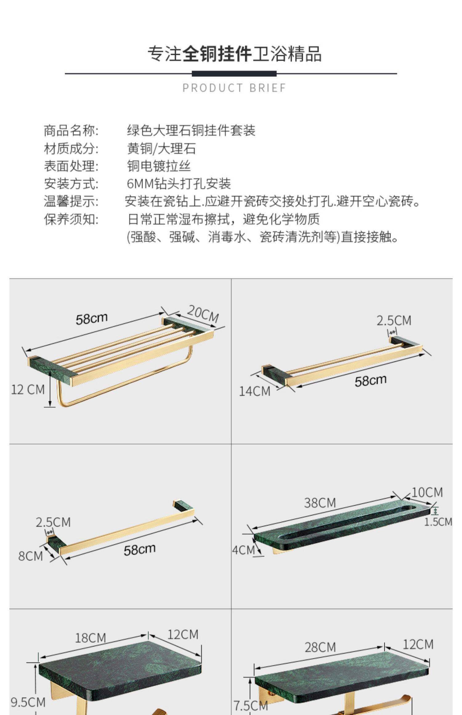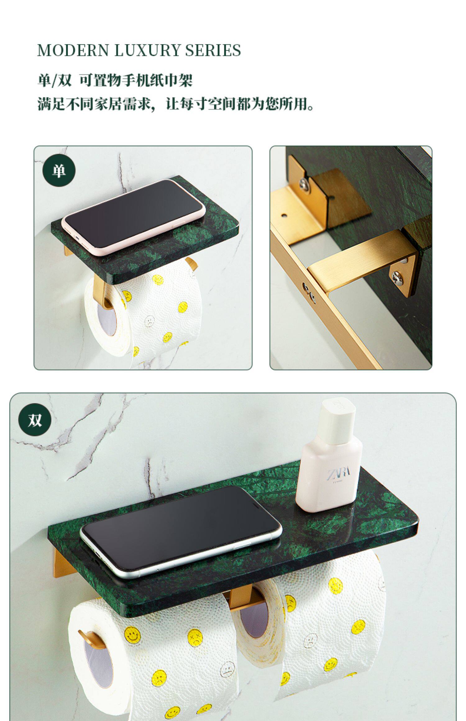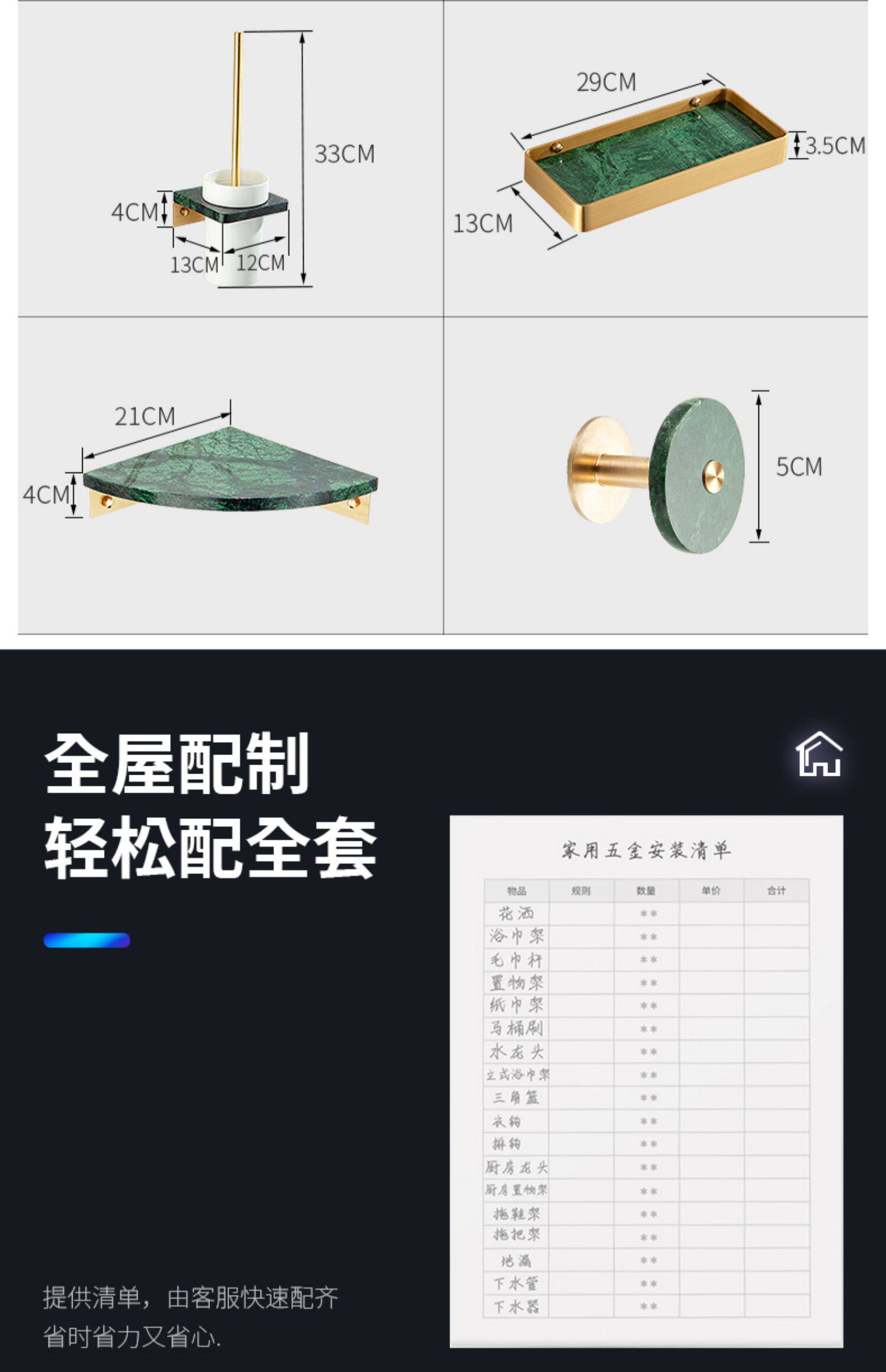 Italian Aisino Light Luxury Marble Towel Rack Bathroom Storage Rack Copper Bathroom Accessories Set for Shower