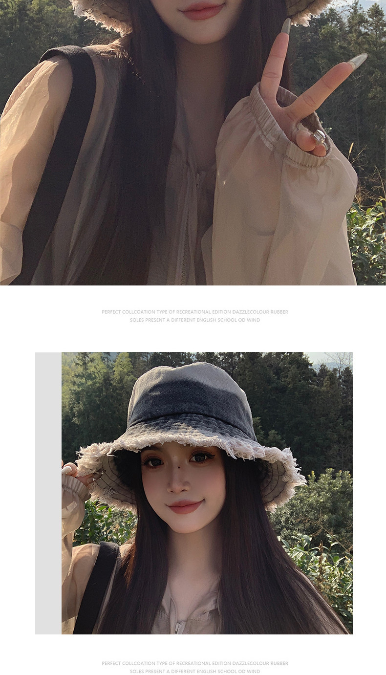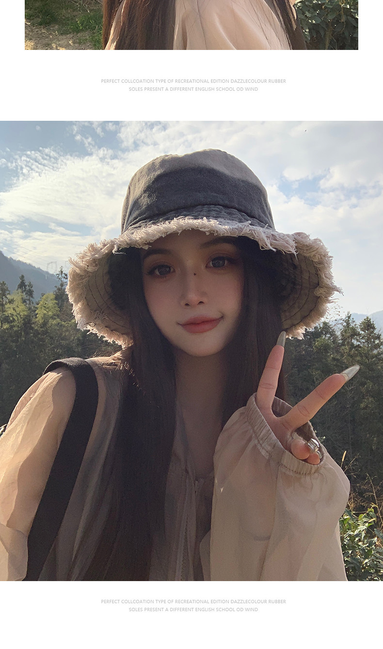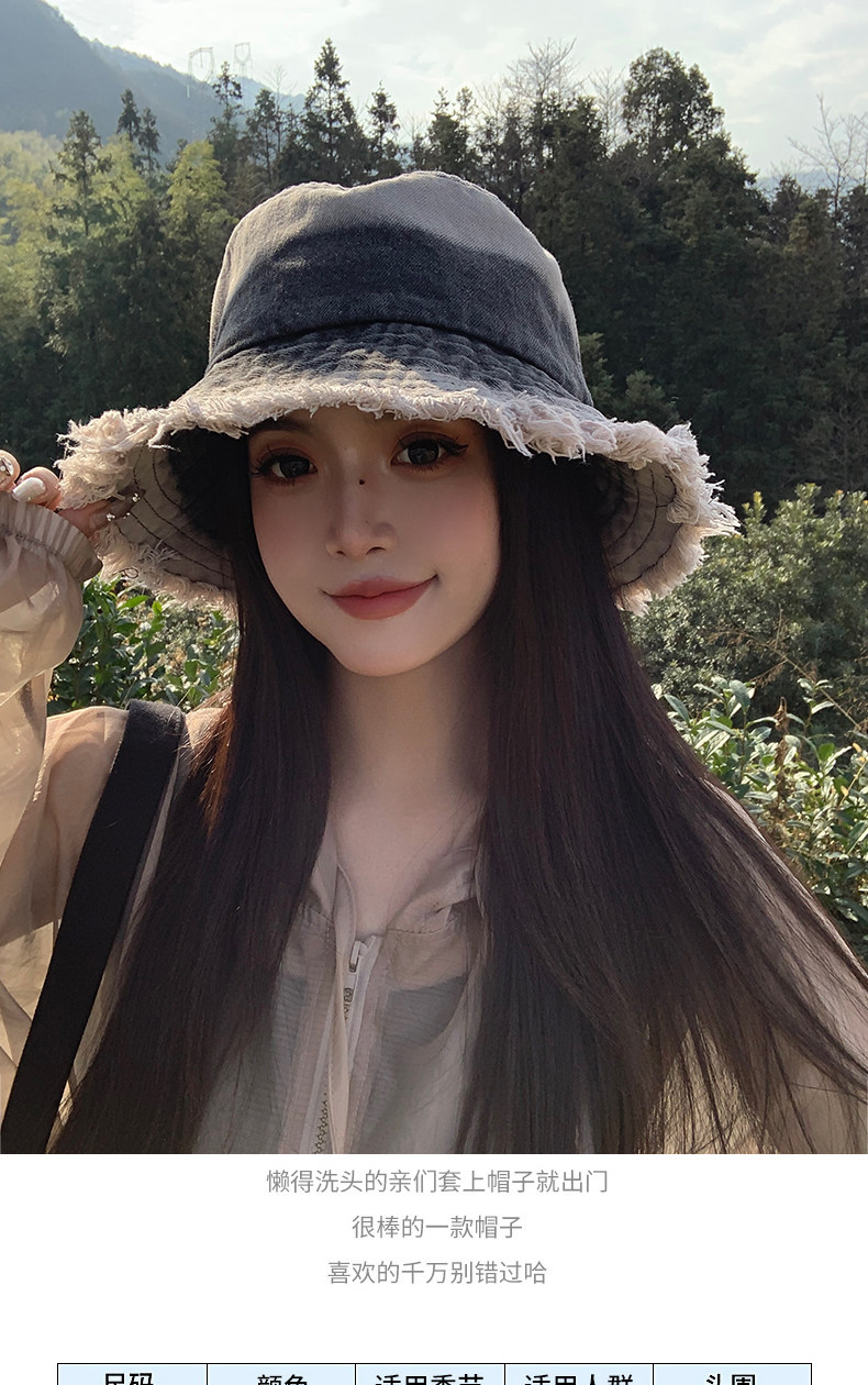 Japanese Style Retro Cowboy Fisherman Hat Women's Summer Big Head Bucket Hat Old Sunshade Sun Protection Face Small Hat