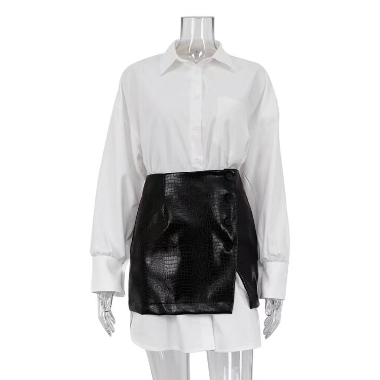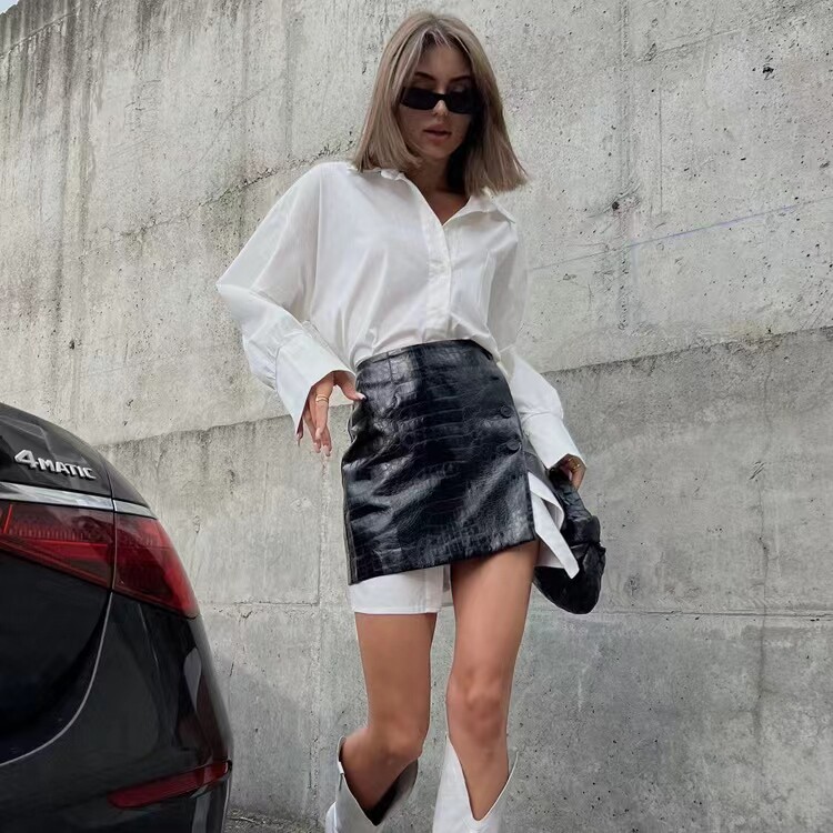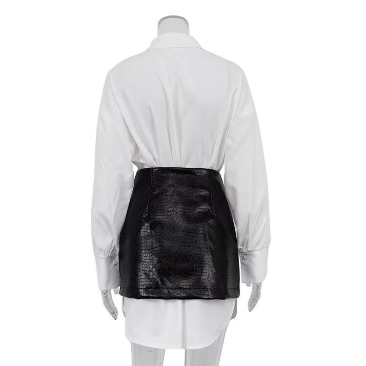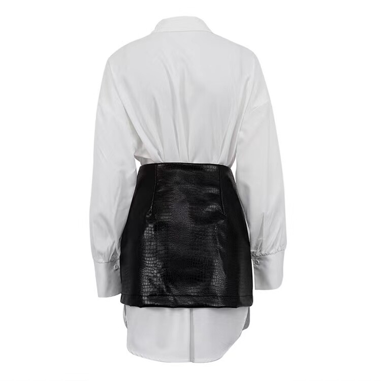 European and American Style Loose Shirt and Waist-Cinching Short Skirt Set