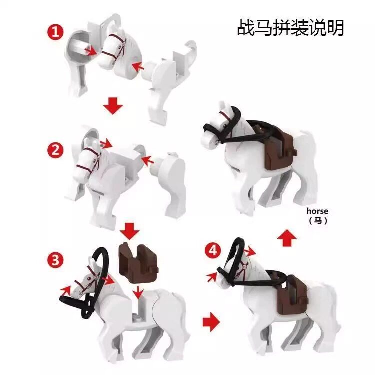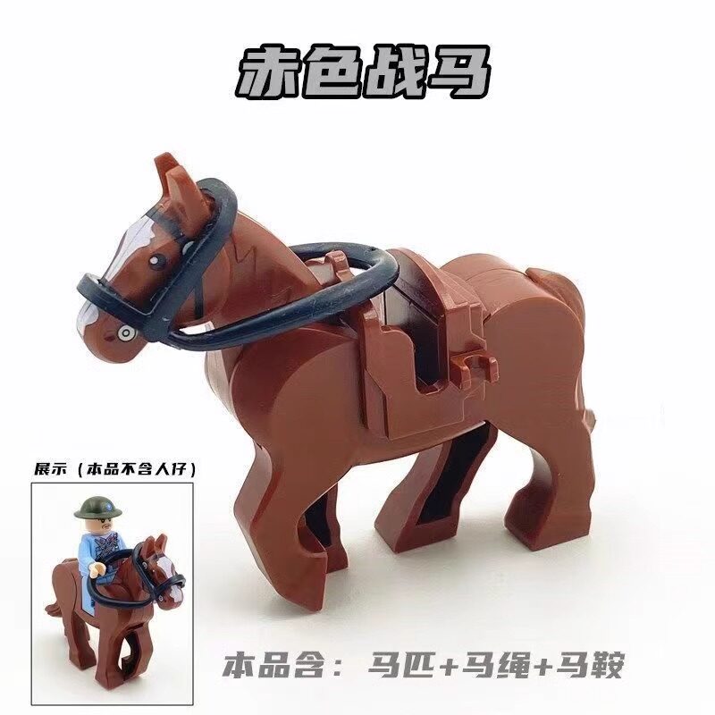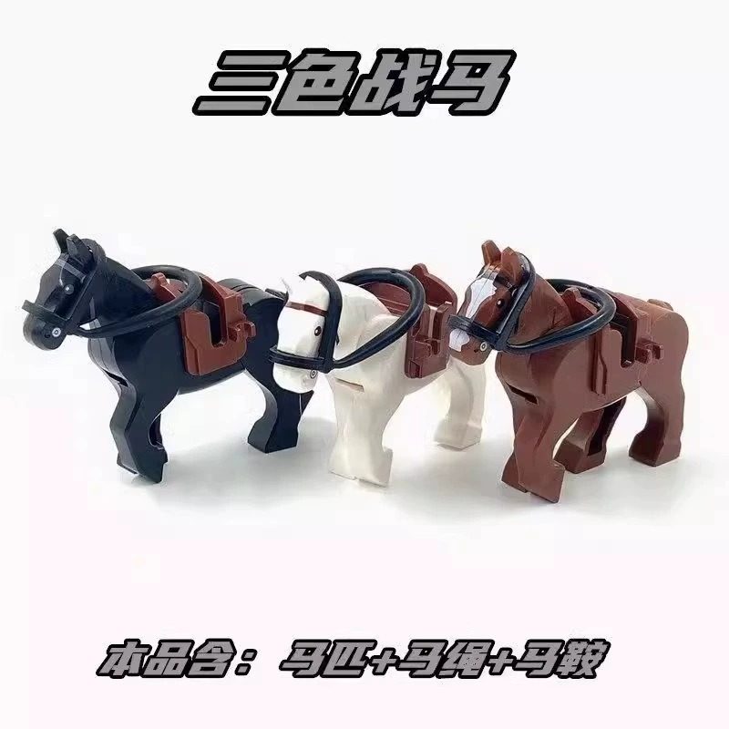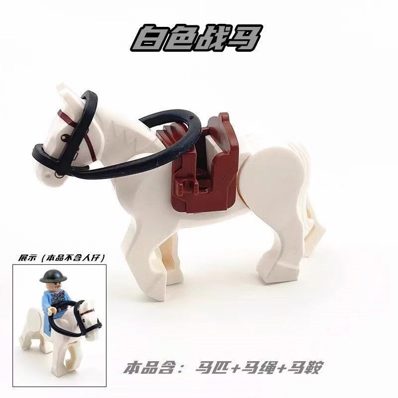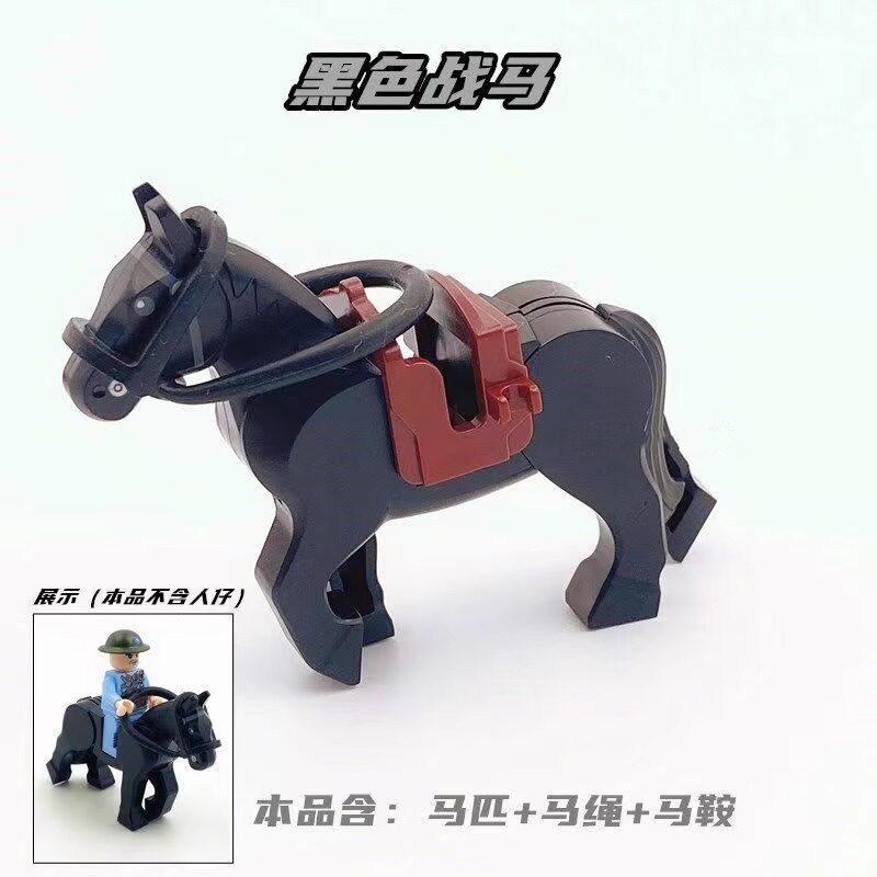 World War Ii Medieval Animal War Horse Ringwraith Horse with Saddle and Reins Domestic Accessories Assembled Building Block Minifigure Toy