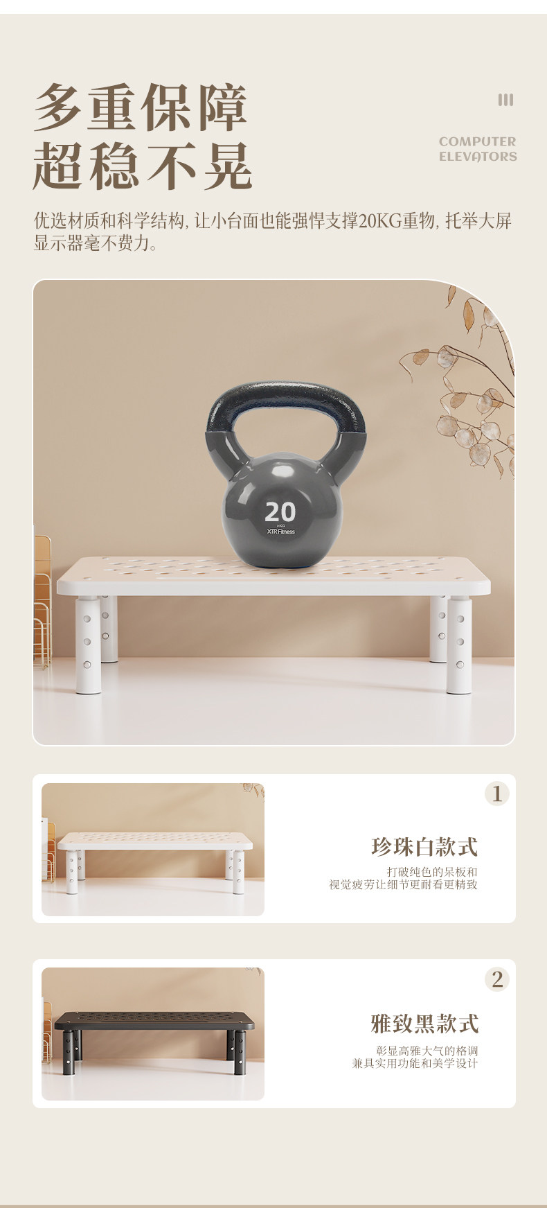 Color Classification Black, 20kg Capacity, 3-Level Adjustable Height