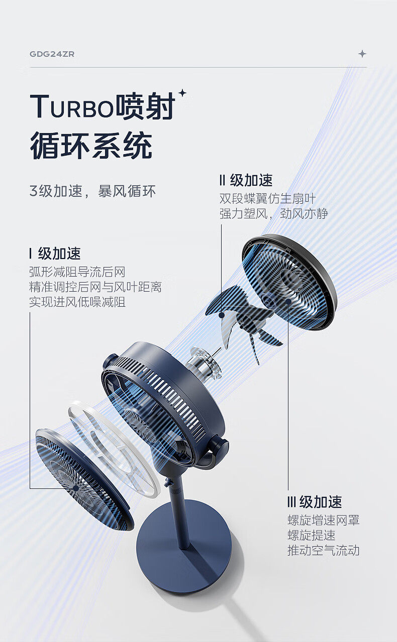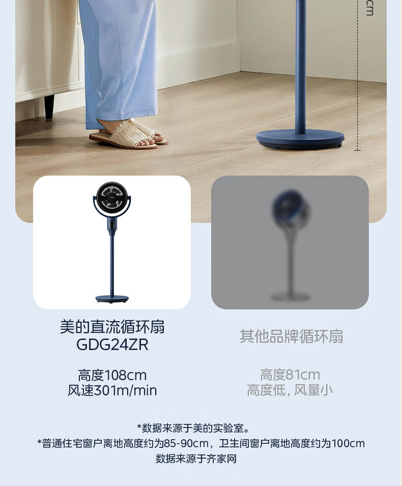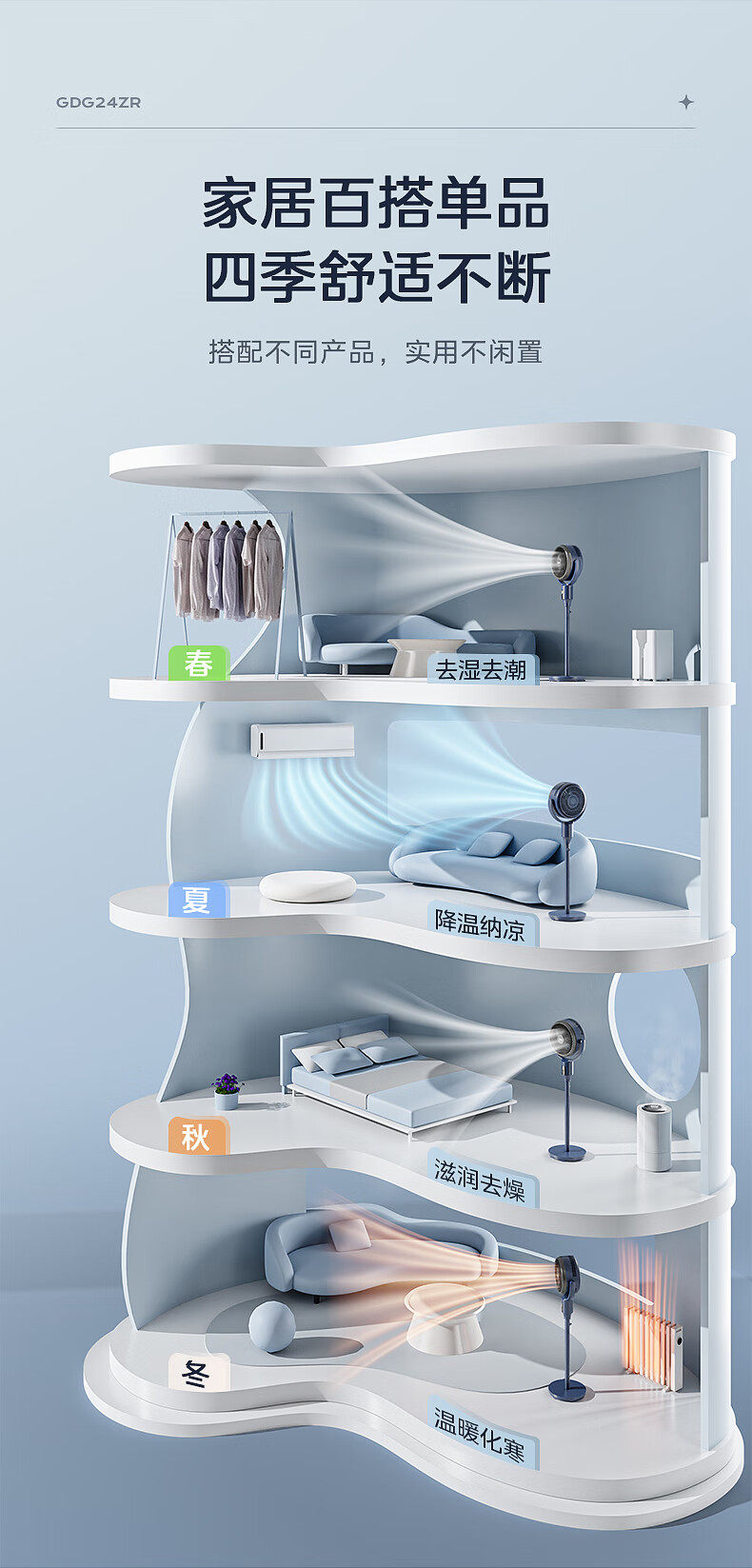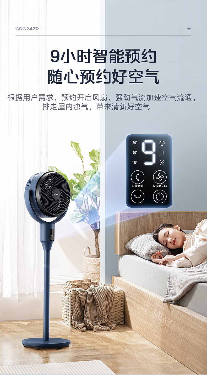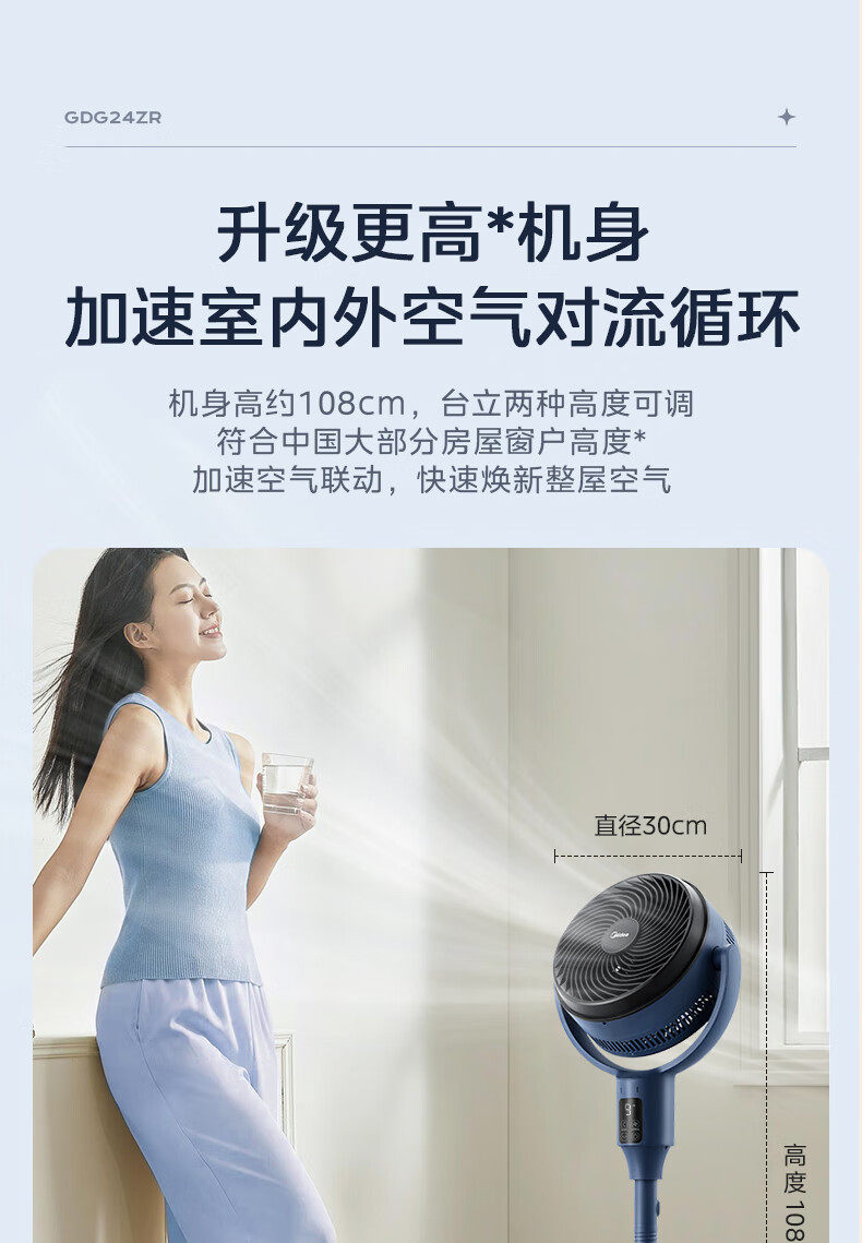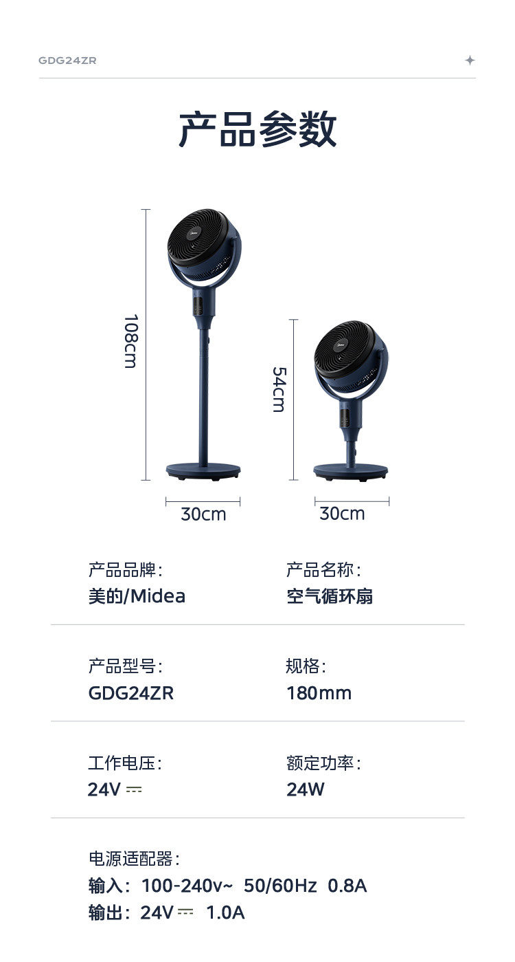 Midea Air Circulation Fan for Home Use, 3D Oscillating Floor Fan with Remote Control, High Wind Power, Dual-Purpose Table and Floor Fan 24Zr