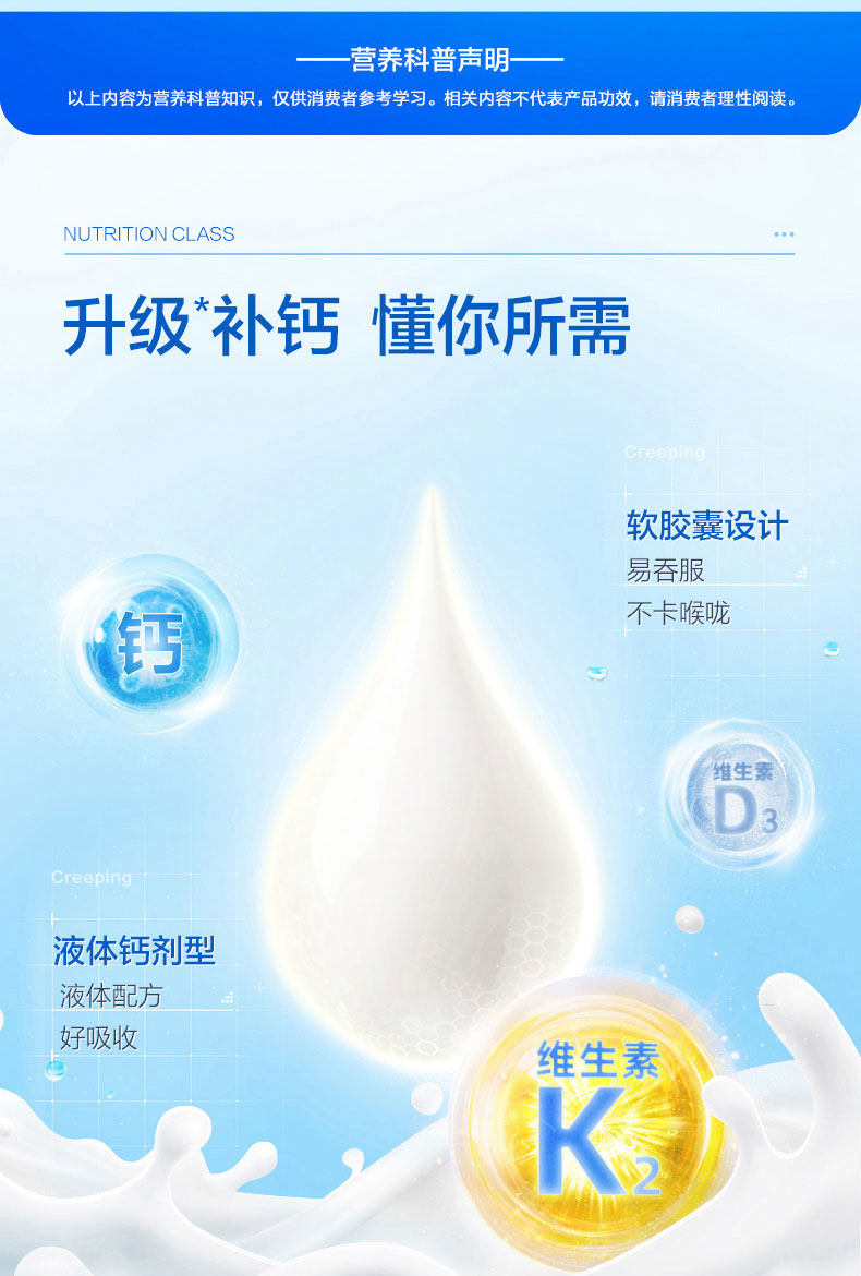Tomson By-Health Liquid Calcium Soft Capsules Calcium Tablets Genuine Product for Middle-Aged and Elderly Pregnant Women and Teenagers to Supplement Calcium and Strengthen Bones
