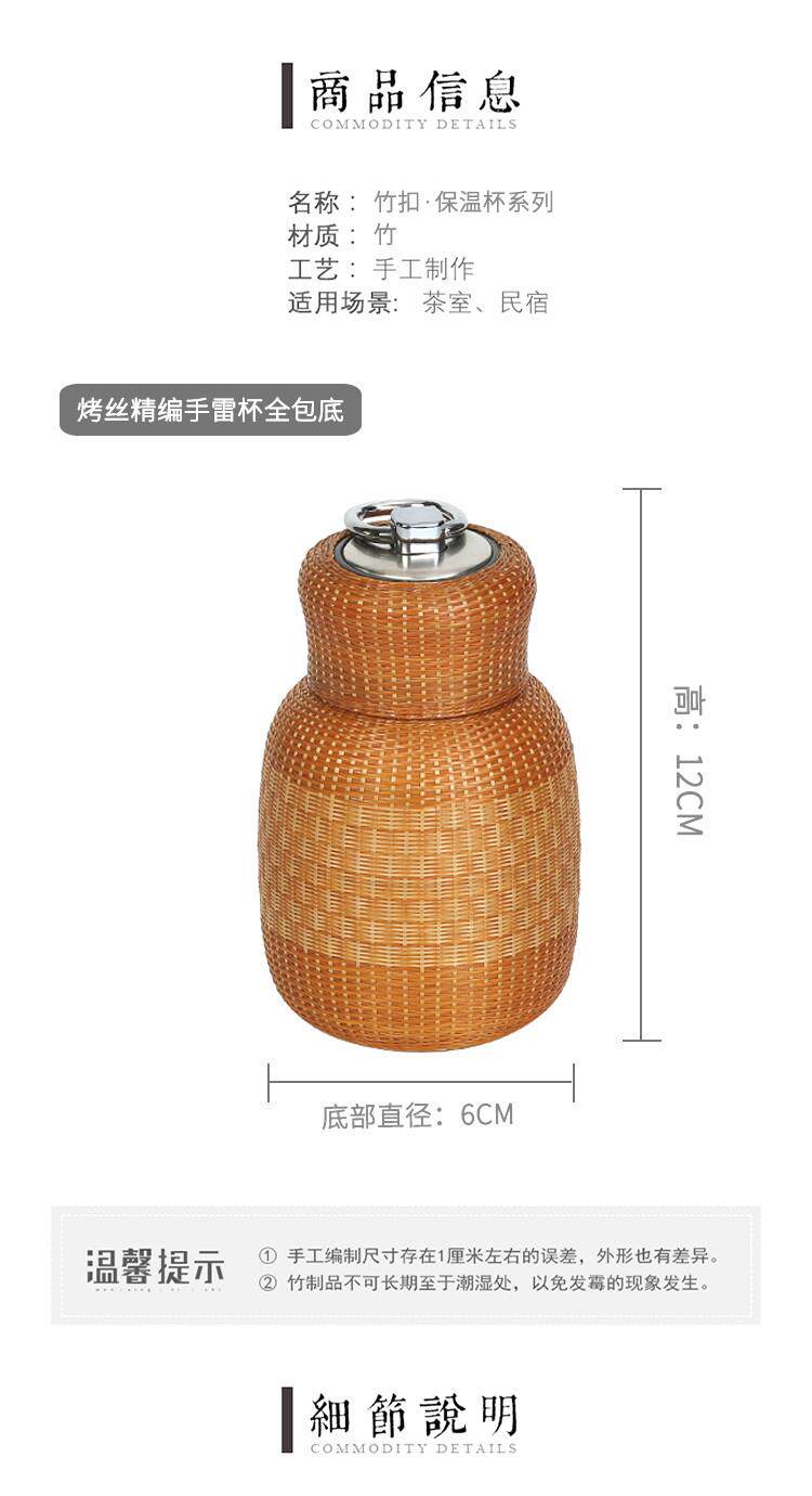 Handmade Bamboo-Woven High-End Stainless Steel Portable Travel Cup for Women, Thermos Cup, Water Cup, Small Tea Cup, Vintage Style