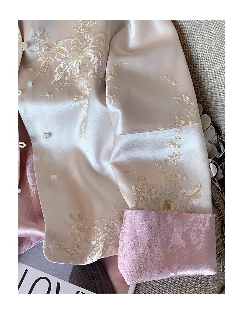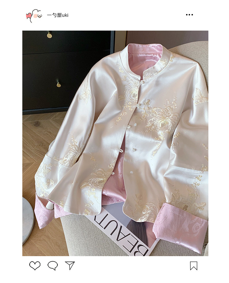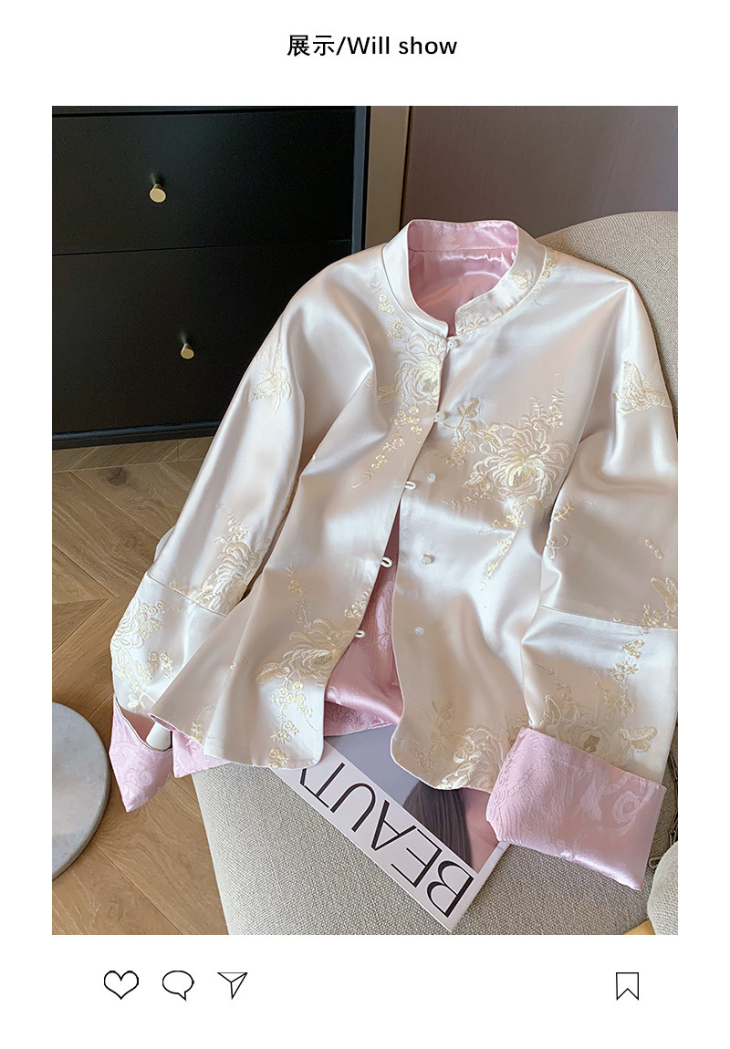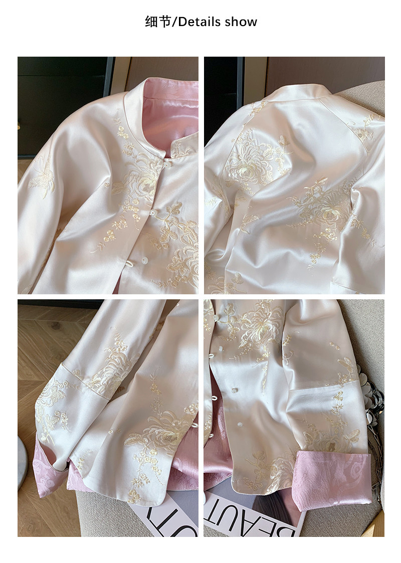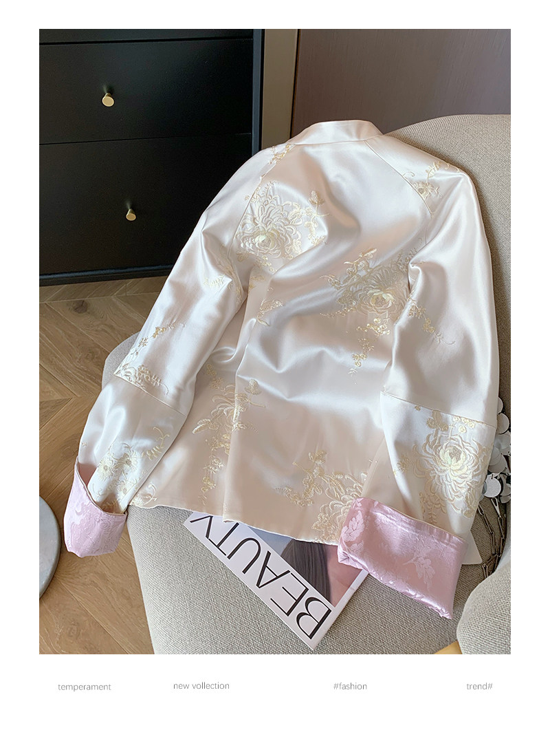 New Chinese style national style embroidered satin stand collar jacket for women spring 2025 retro high-end temperament Zen thin top