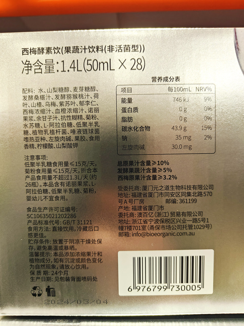 Costco Bioe Prune Enzyme 908 Fruit and Vegetable Juice Drink Enzyme Gift Box Bioe