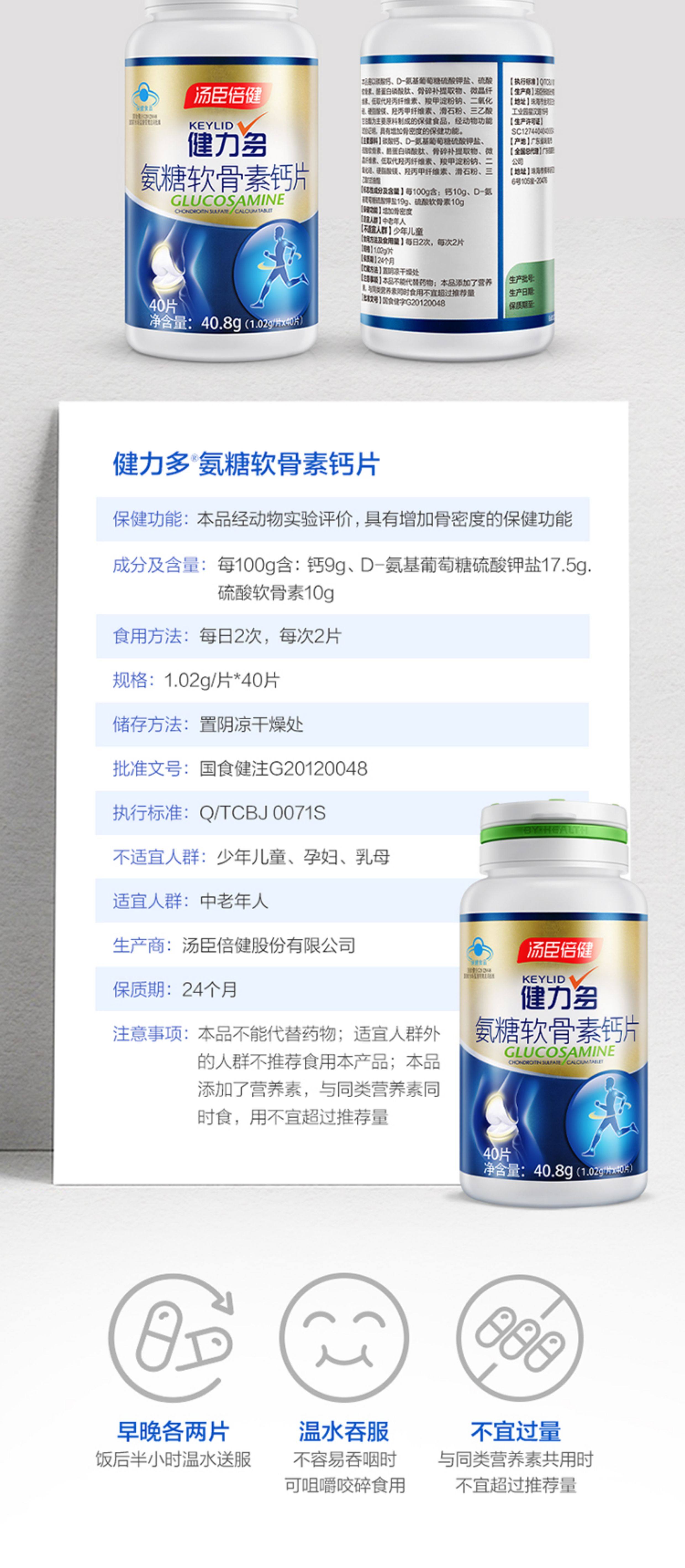 Tomson By-Health Glucosamine Chondroitin Calcium Tablets for Adults, Middle-Aged and Elderly People, Calcium Supplement for Joints, Calcium Carbonate, Official Genuine Product