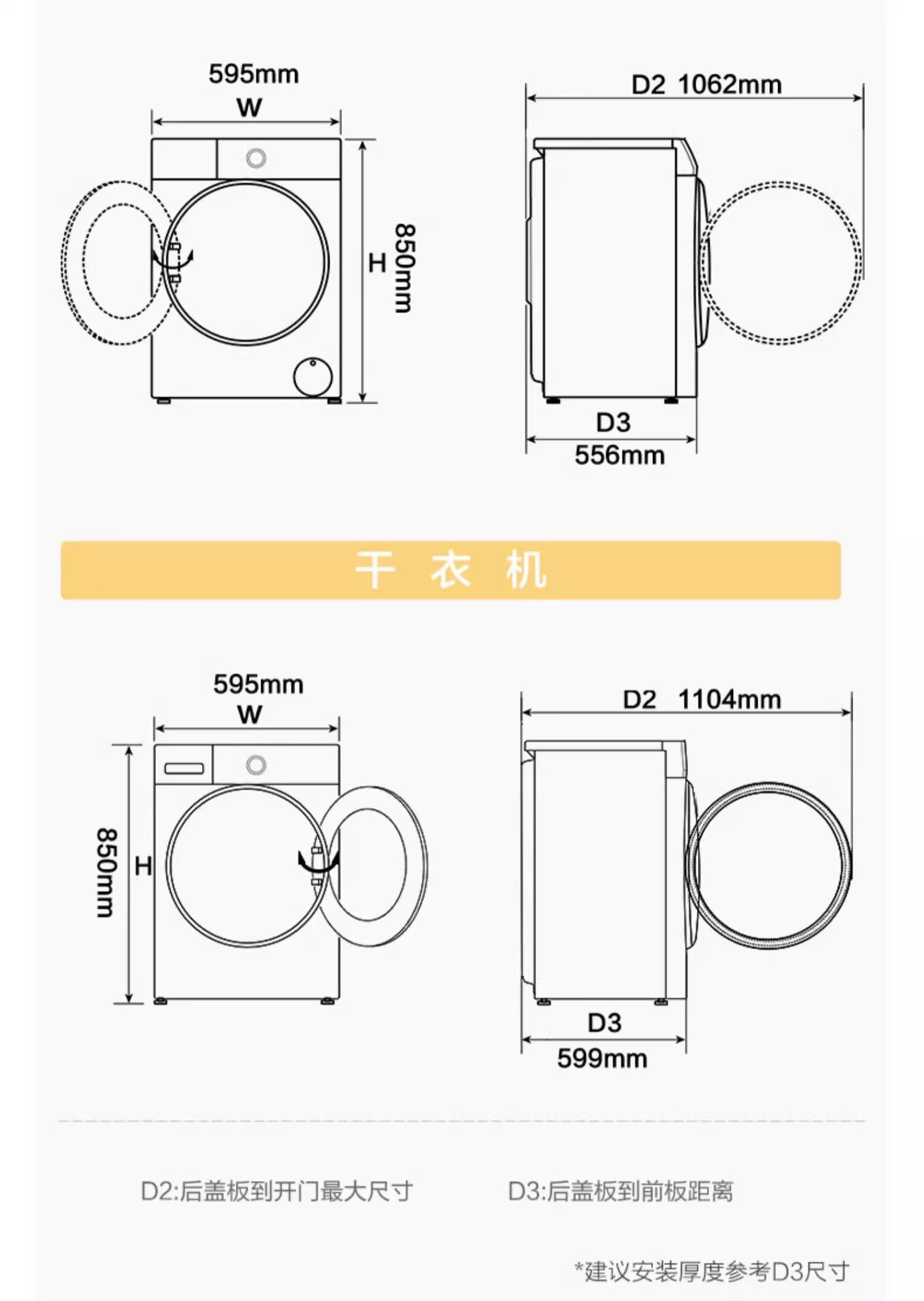 Dryer size 595x593x850mm